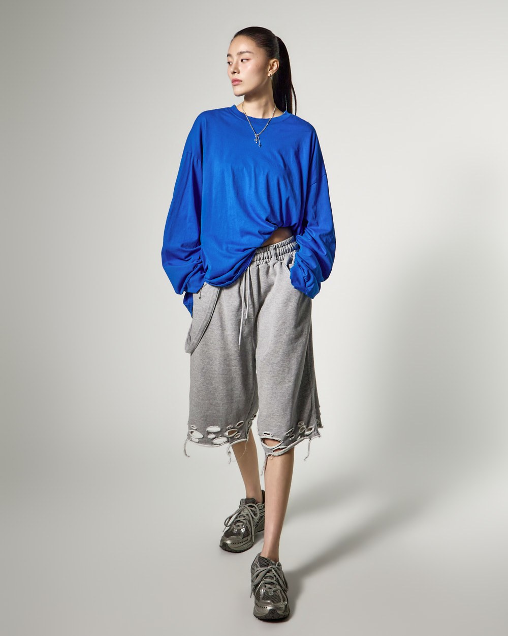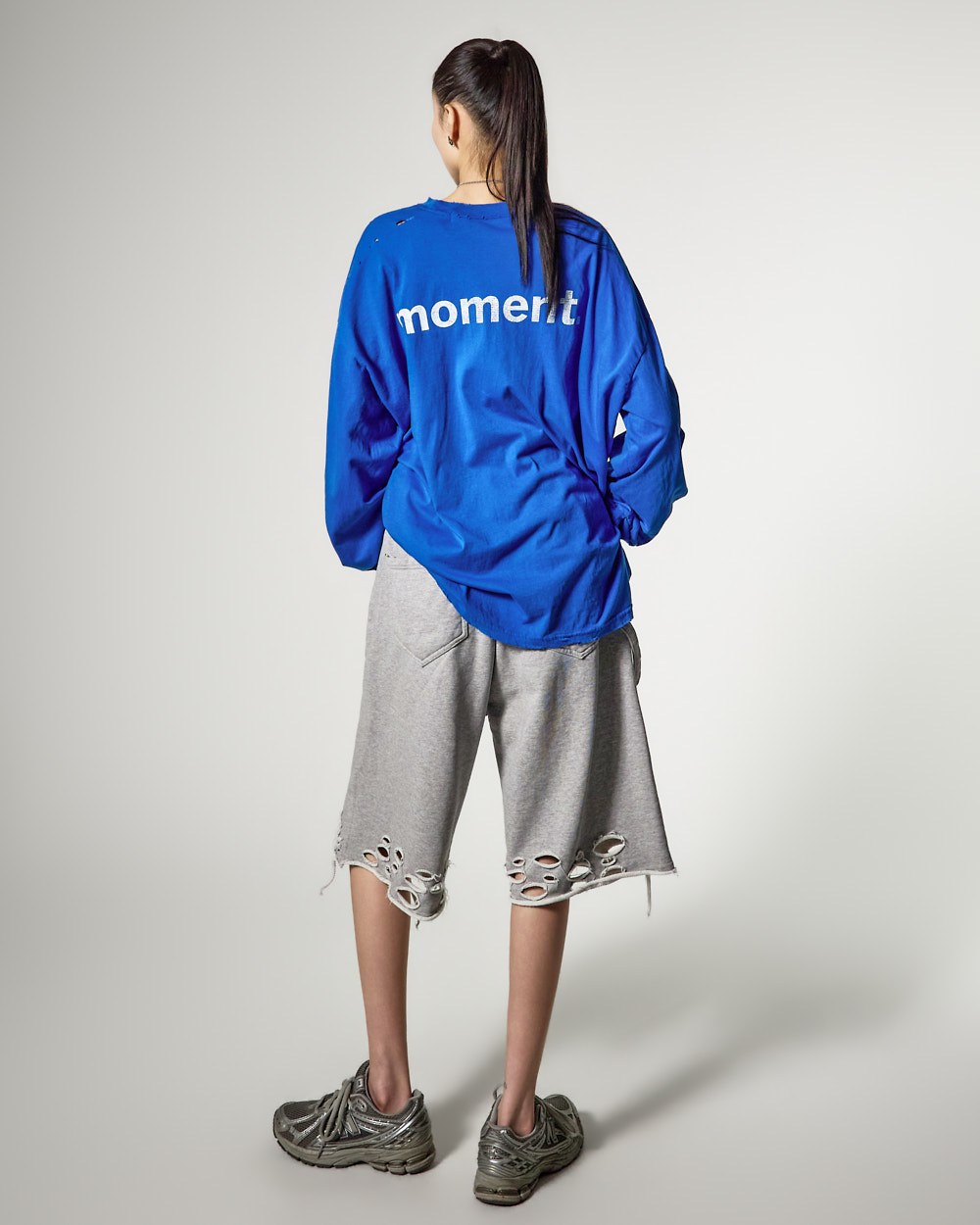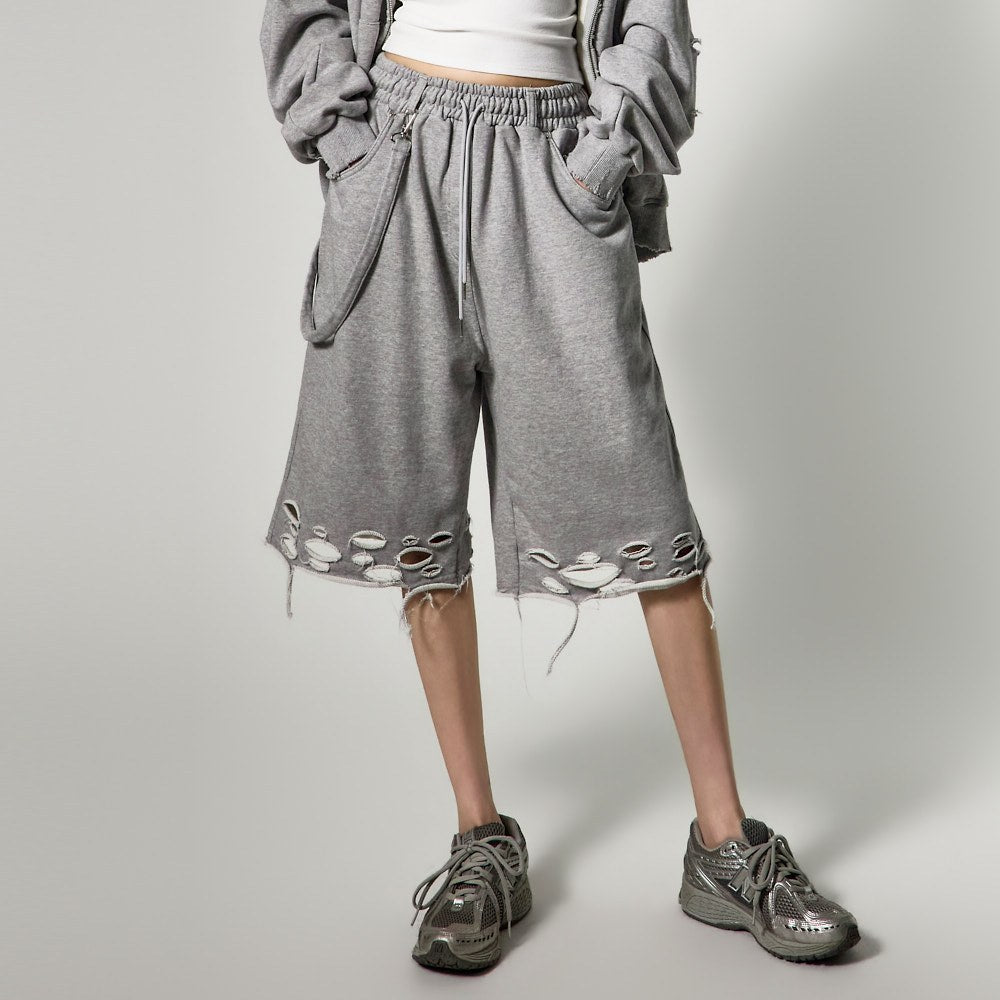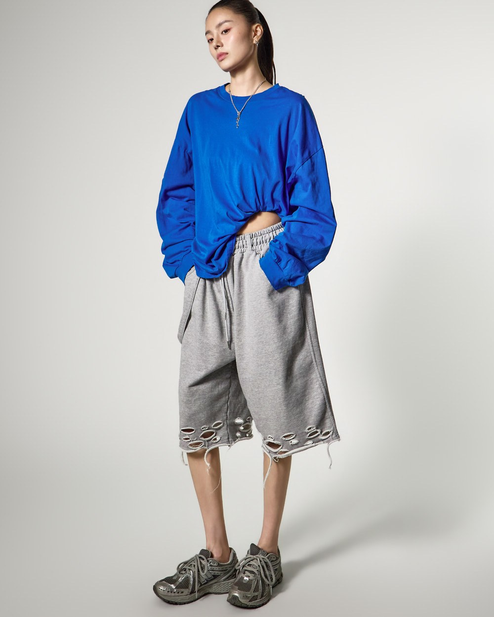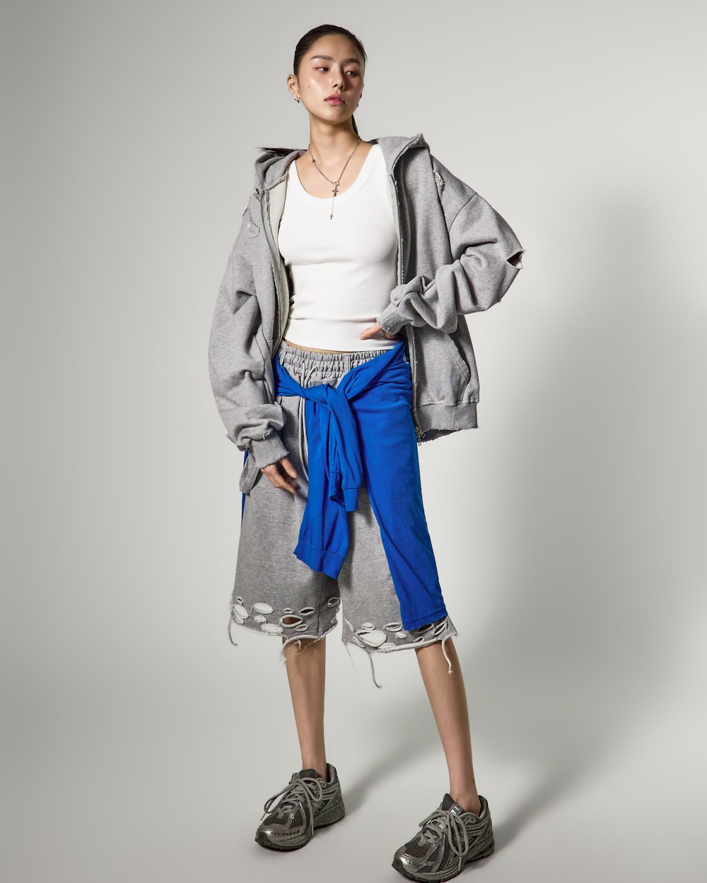 裤脚的自然剪裁和破损细节