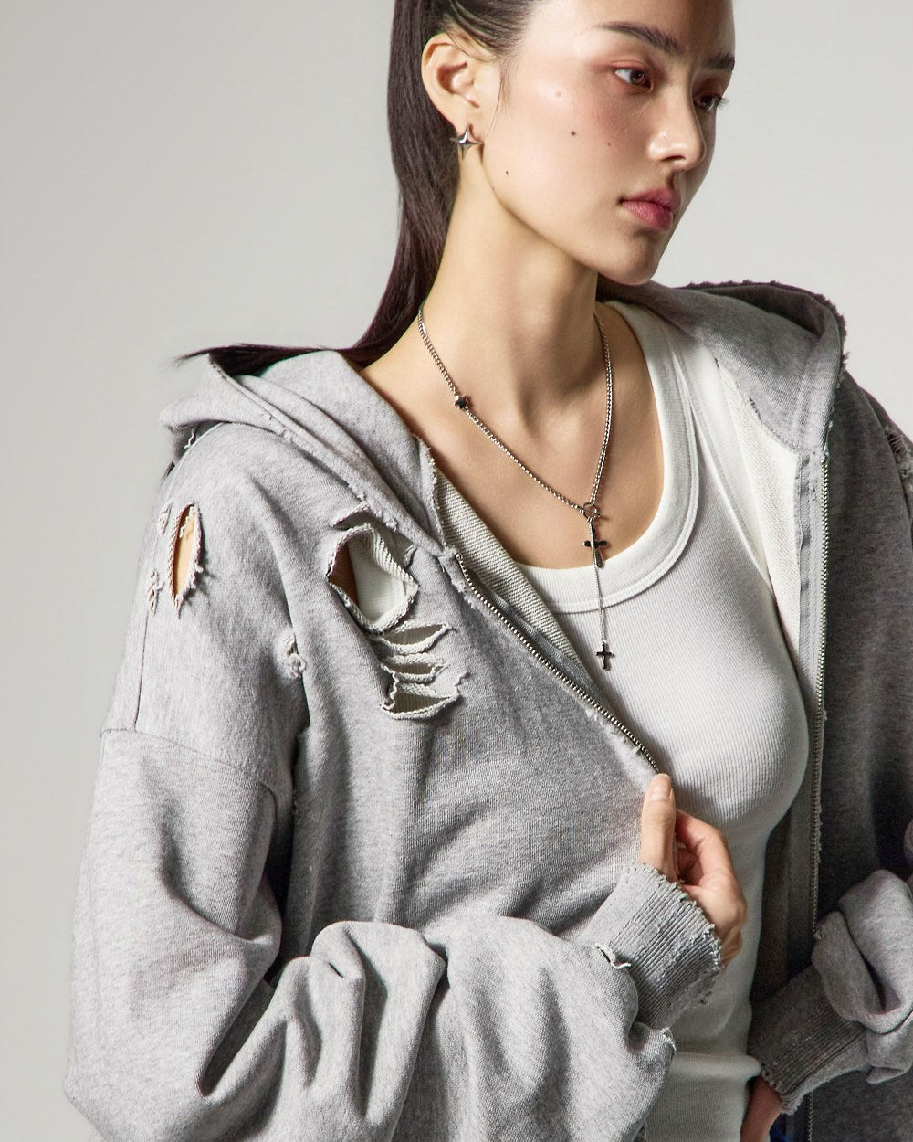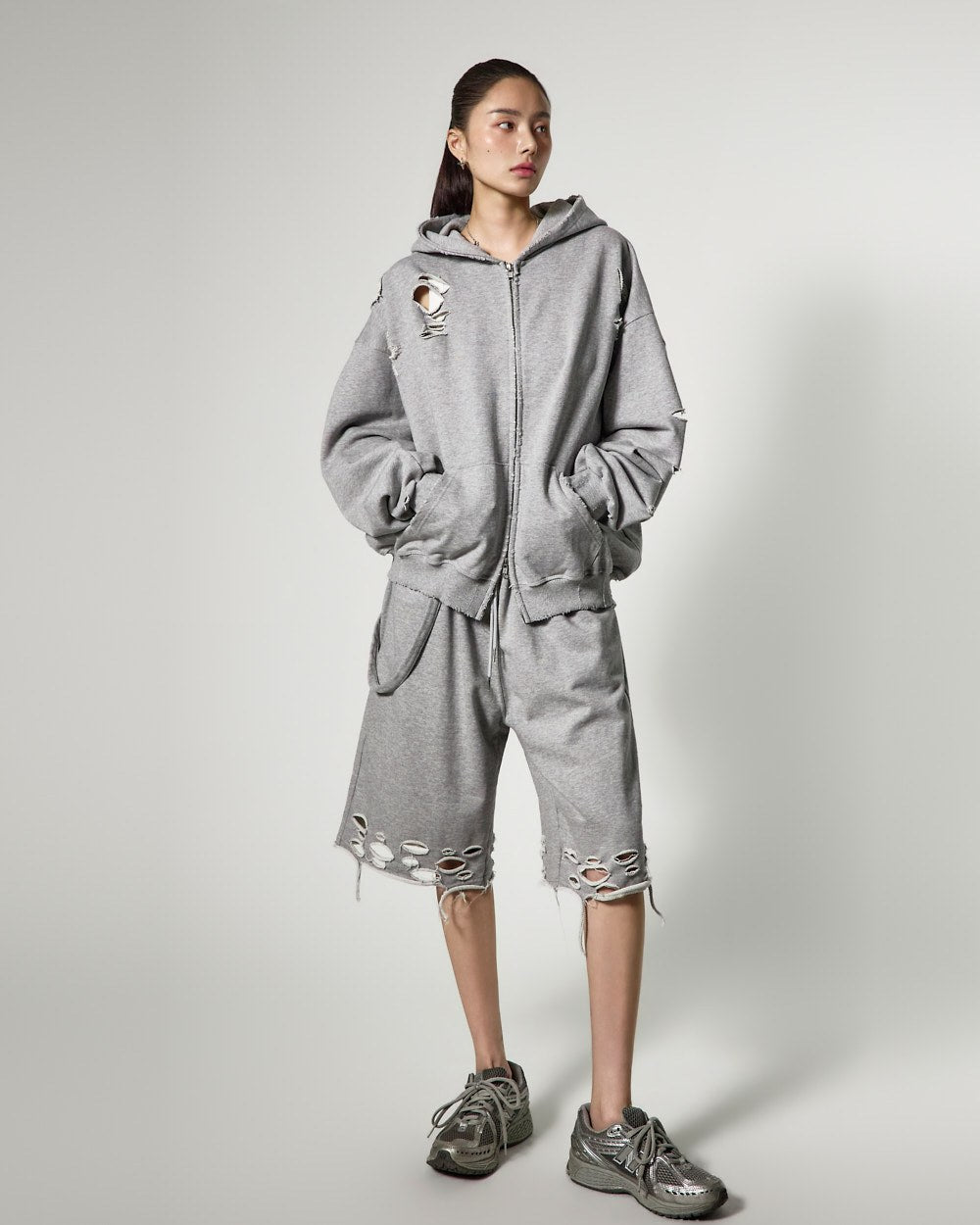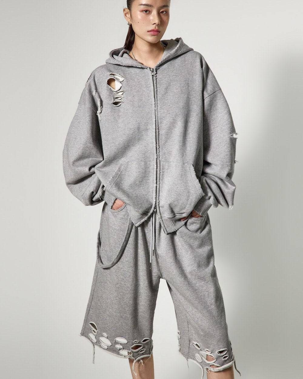 模特身高171厘米,身穿灰色均码。