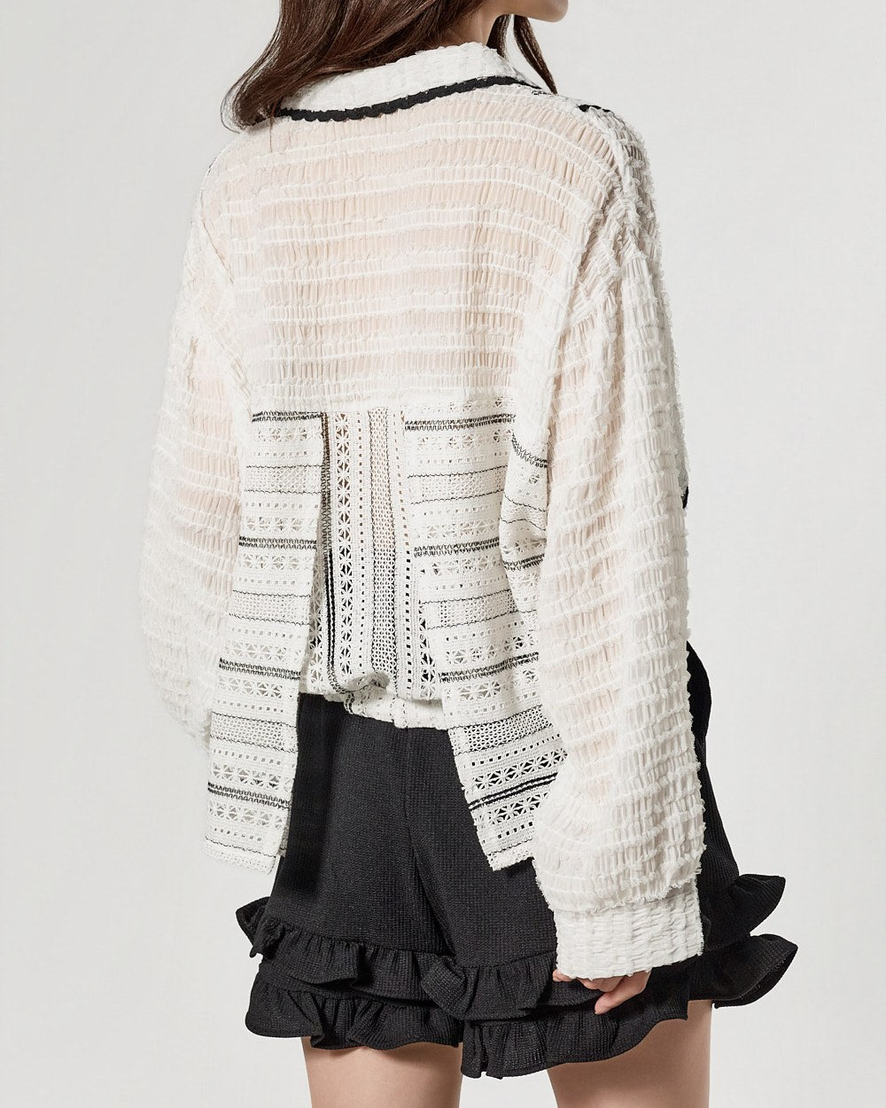 下摆的荷叶边细节是亮点,打造出灵动的廓形。