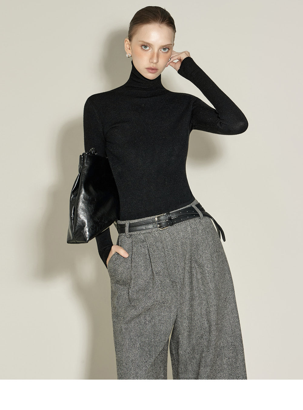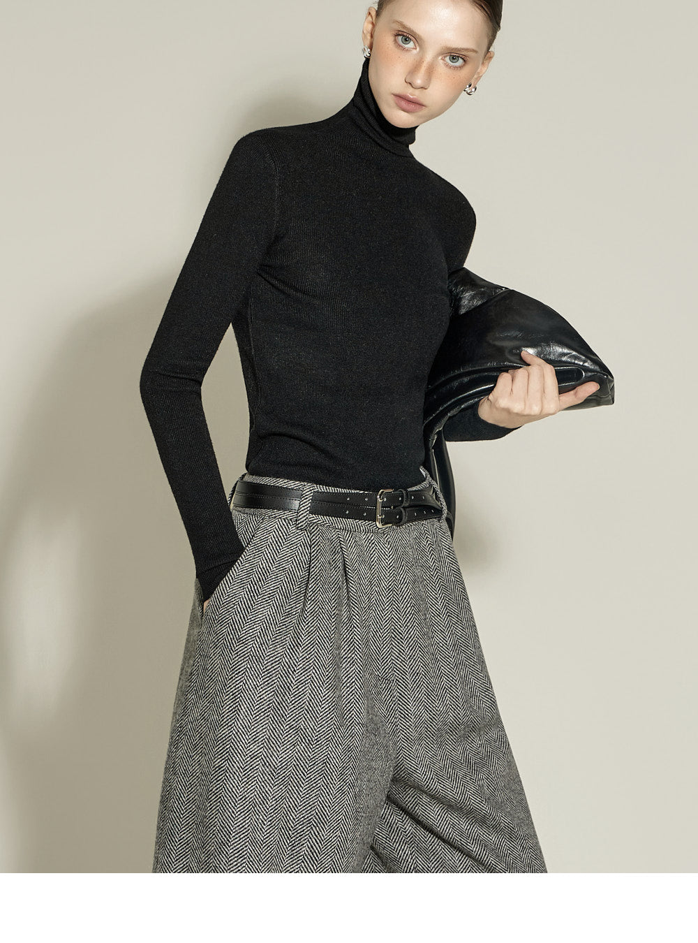 Model is 174cm tall and wearing size S in BLACK.