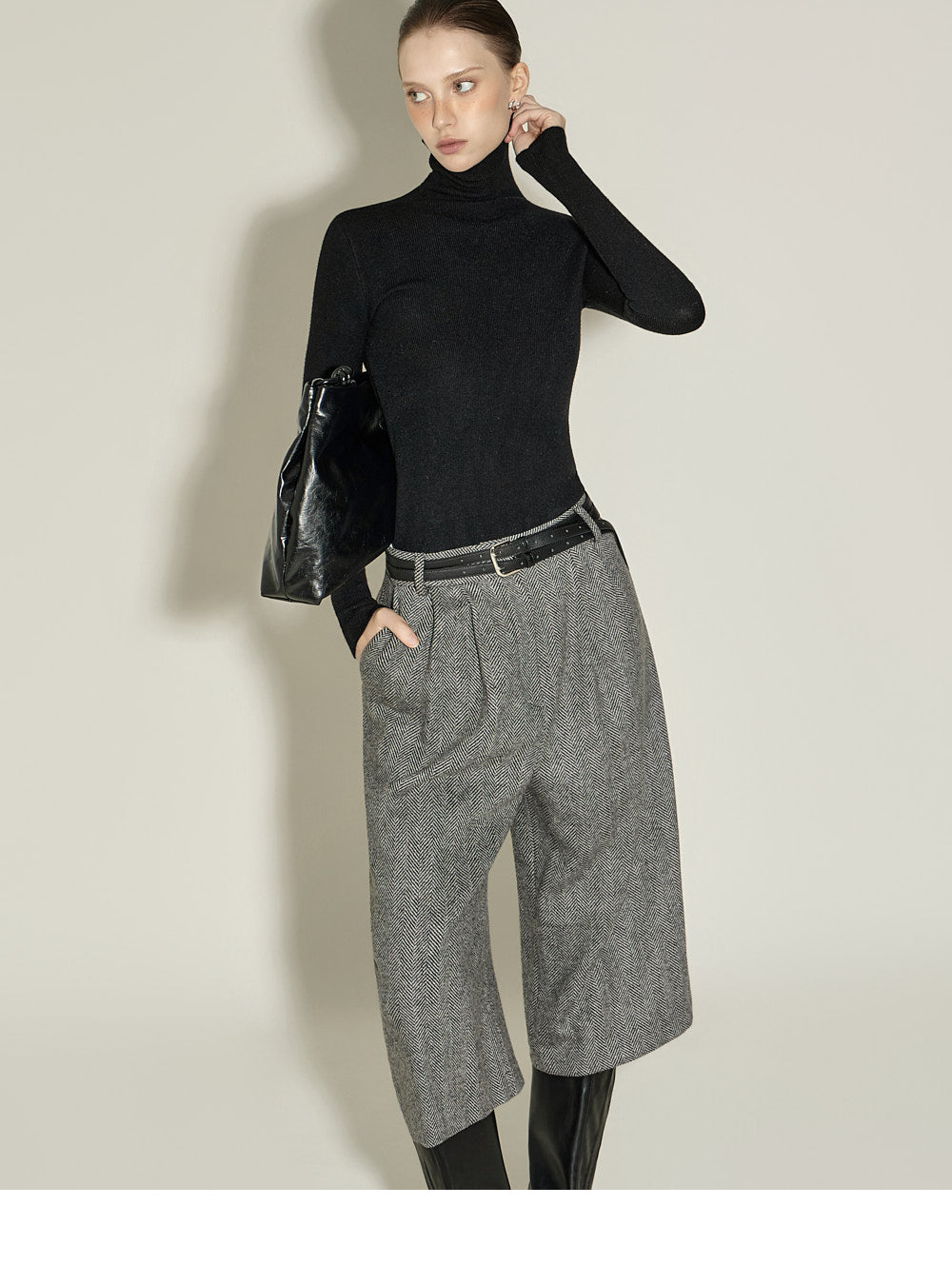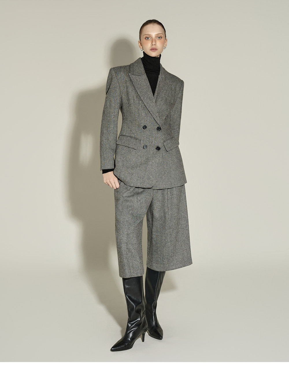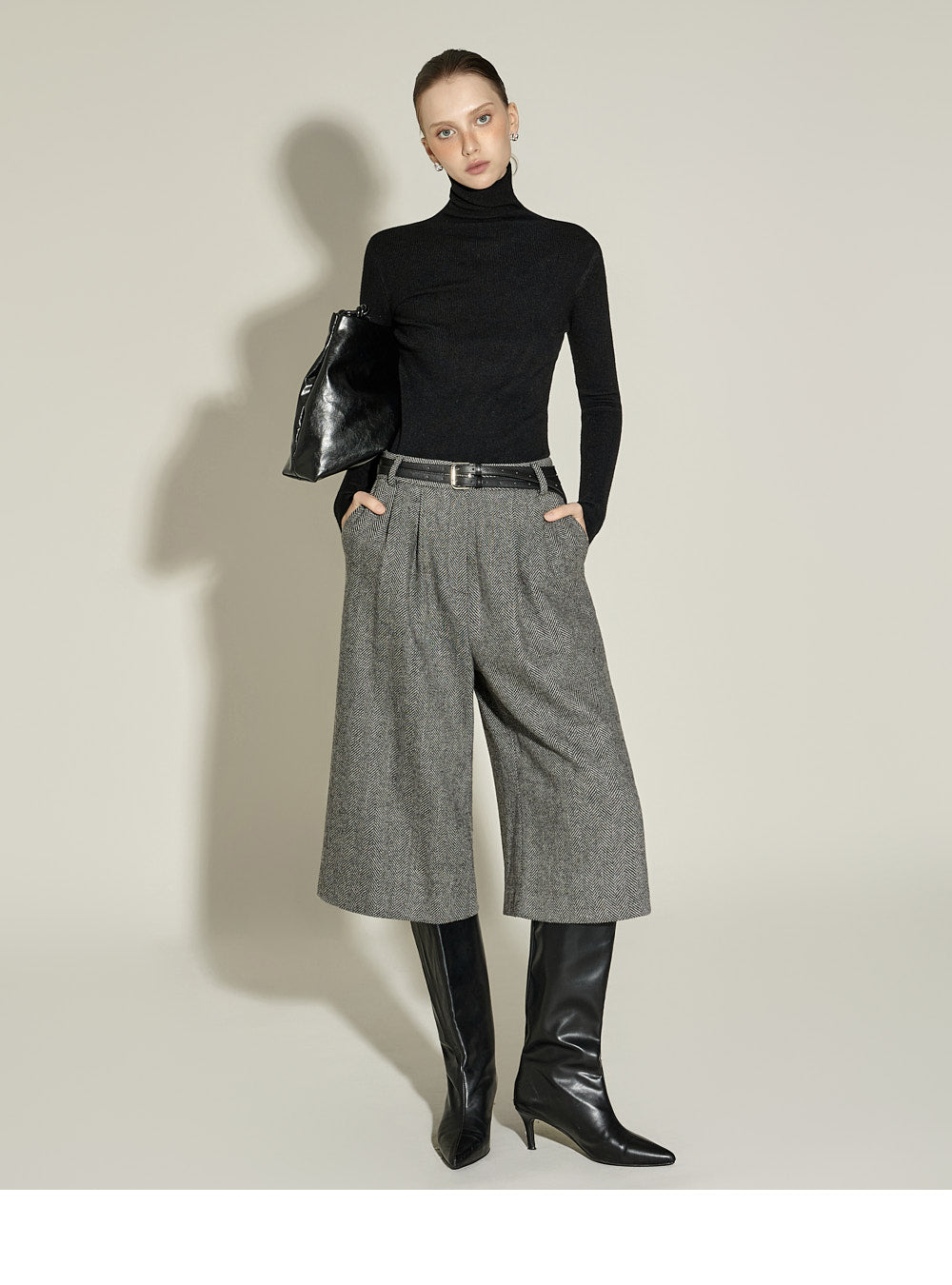 These Bermuda wool pants have a neutral vibe.