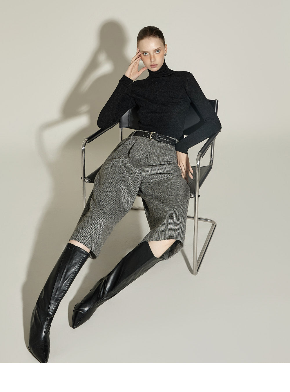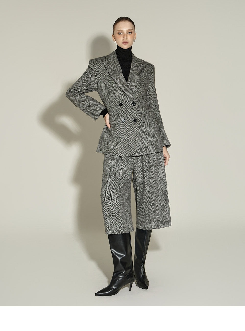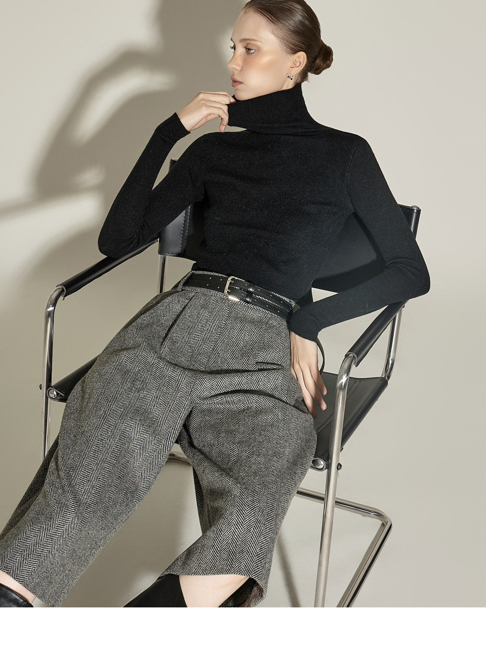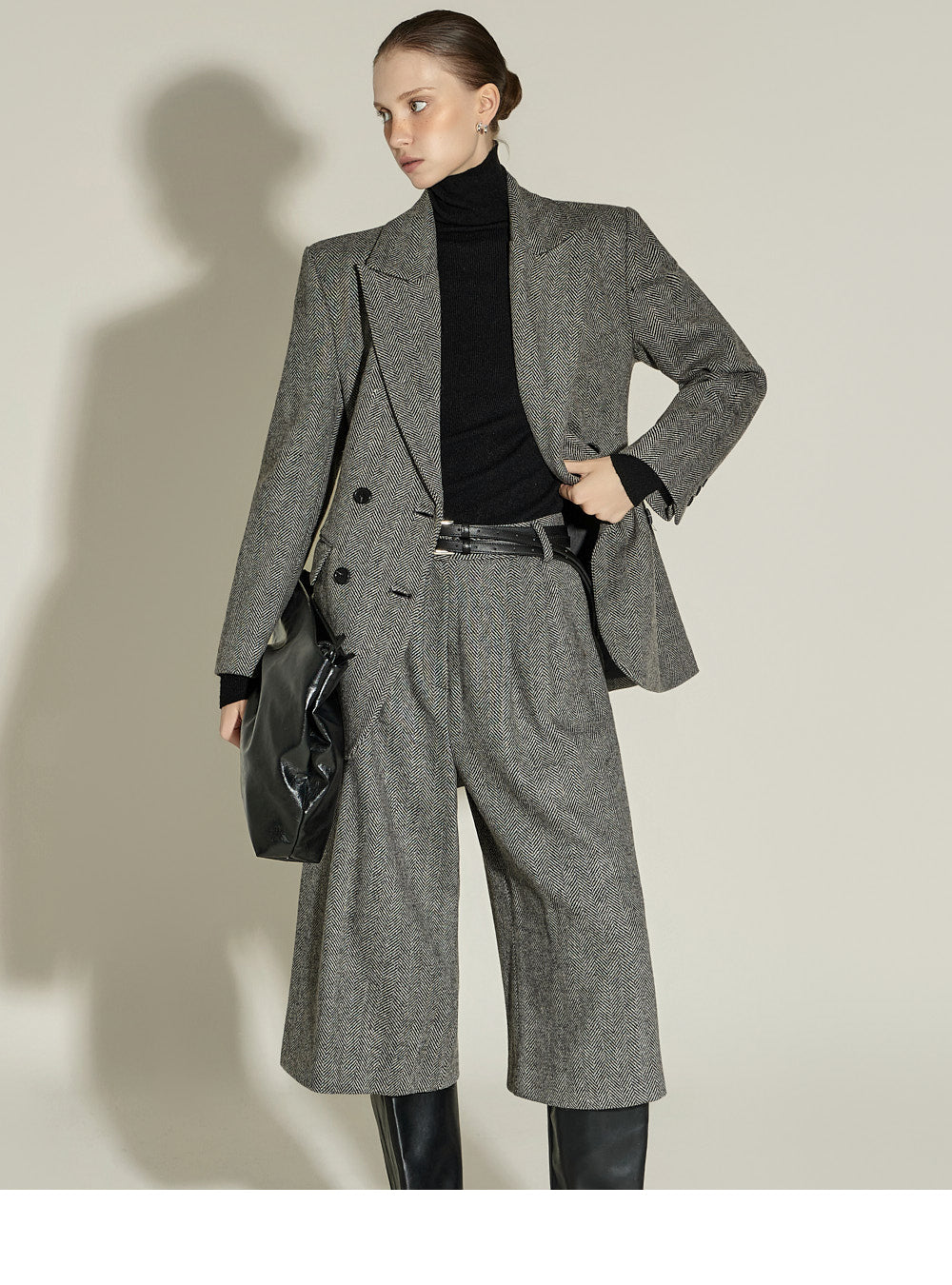 These Bermuda wool pants have a neutral vibe.