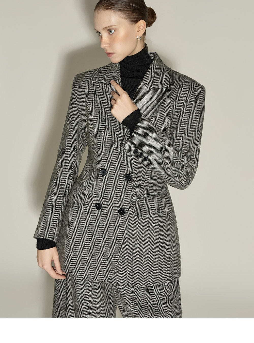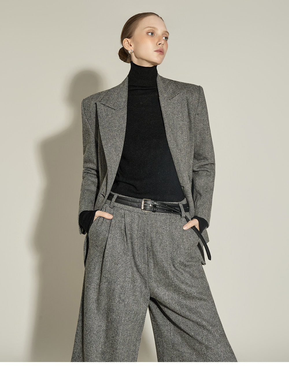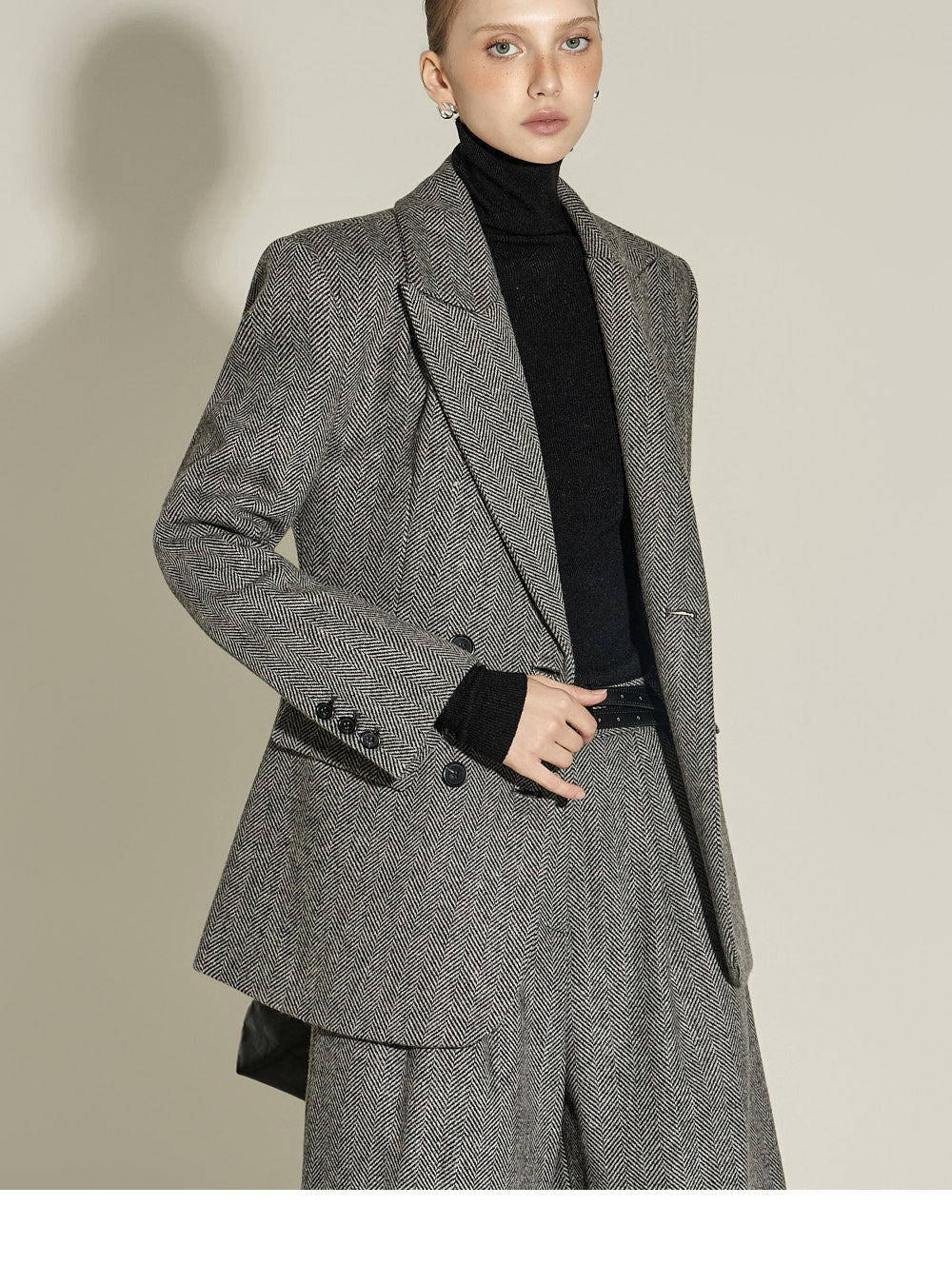 The front pin tuck detail and herringbone