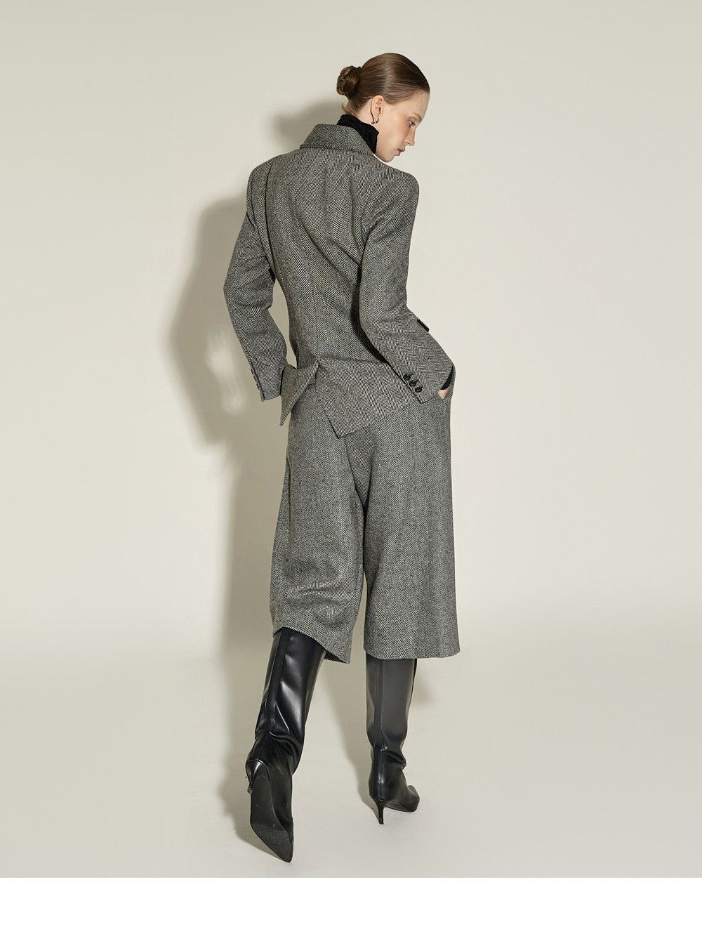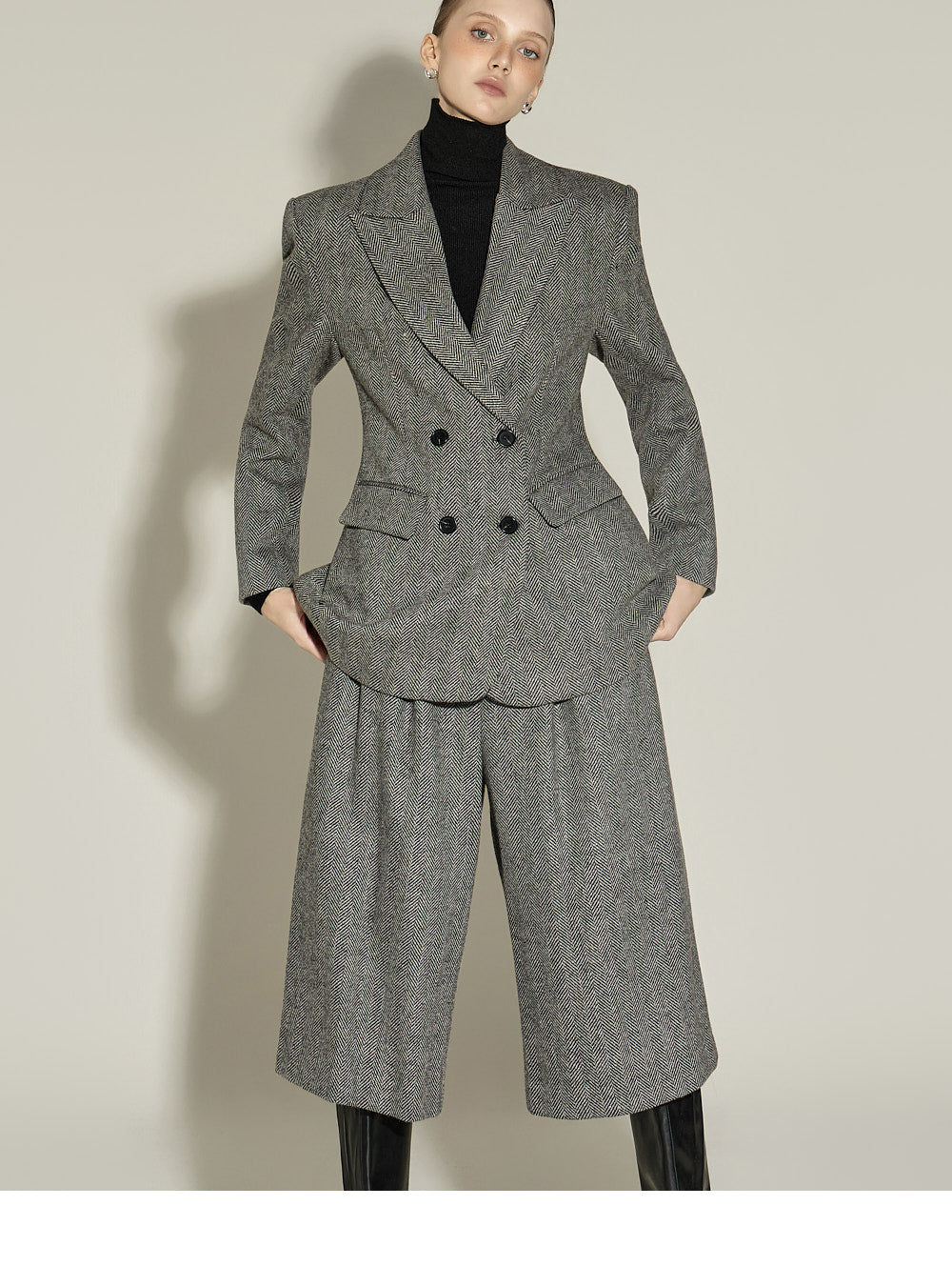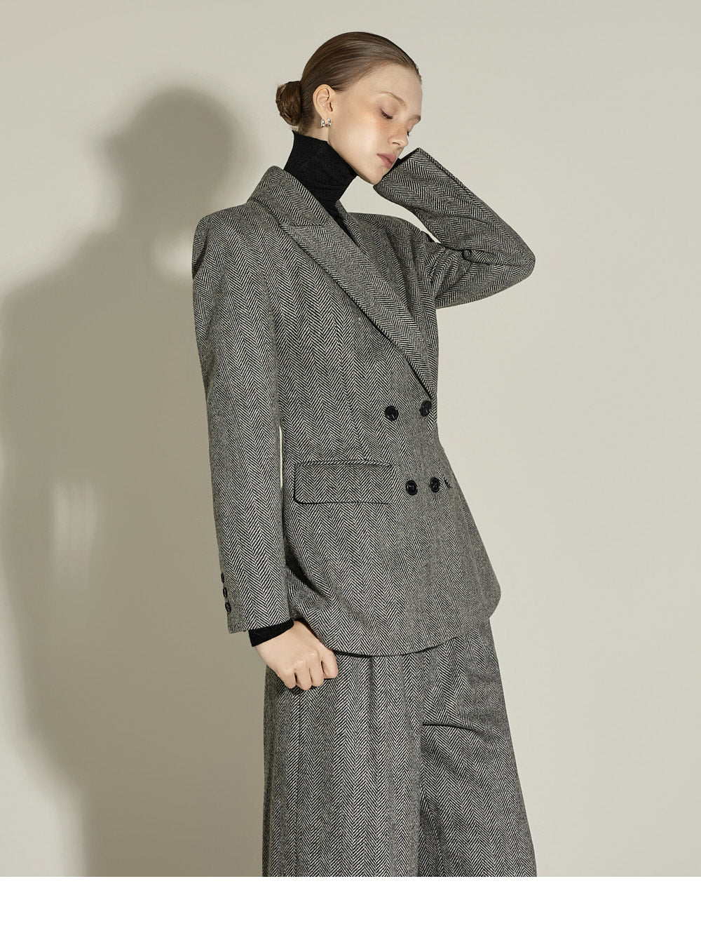 The front pin tuck detail and herringbone