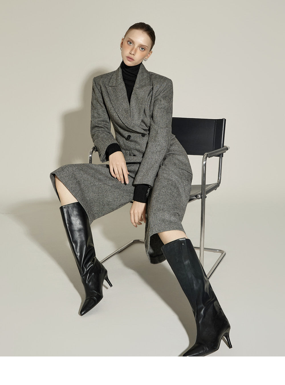 falls just below the knee for a stylish look, creating a neutral yet stylish look.
