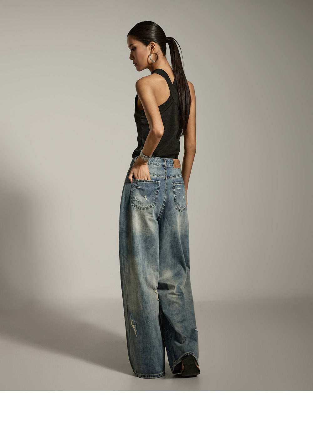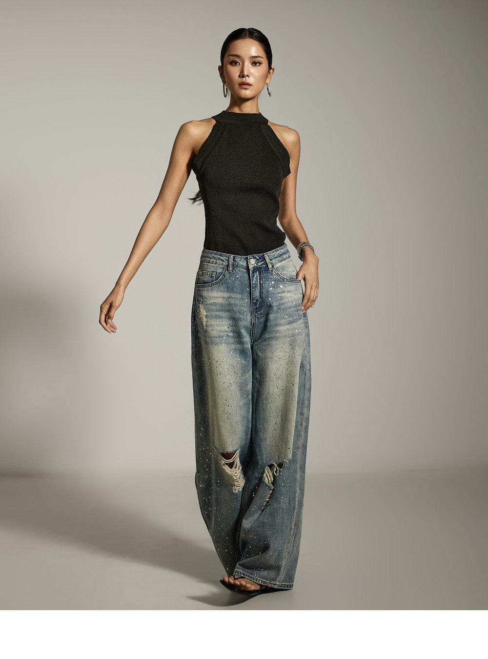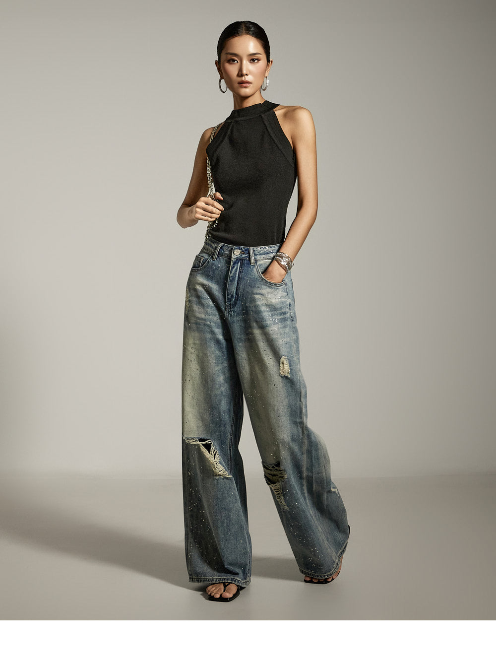 这是流行的闪光宽牛仔裤,具有大胆、时尚的气息。