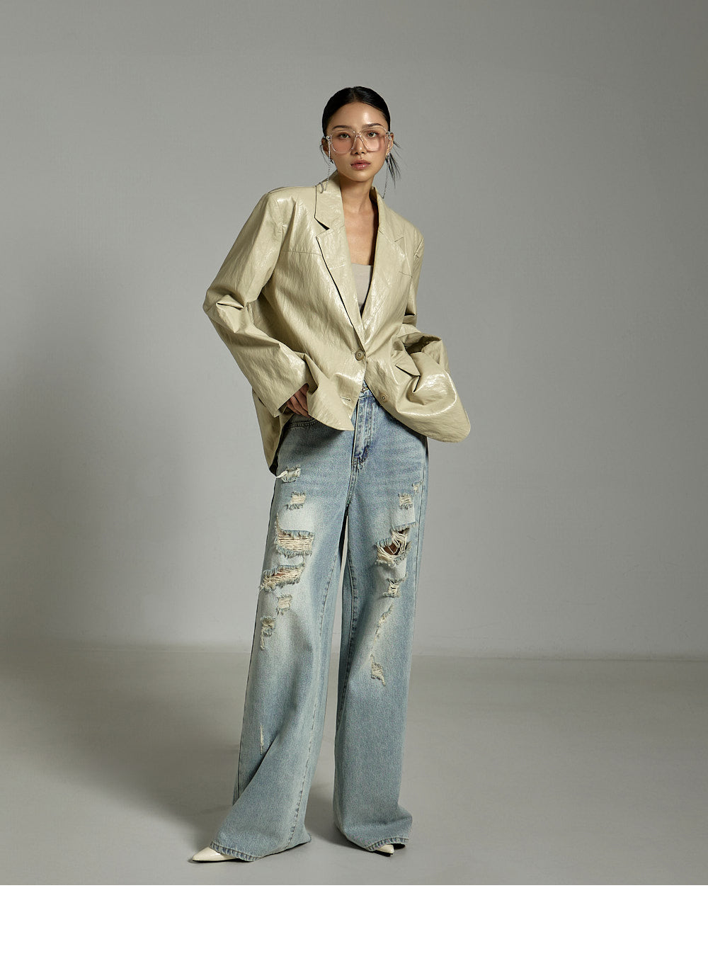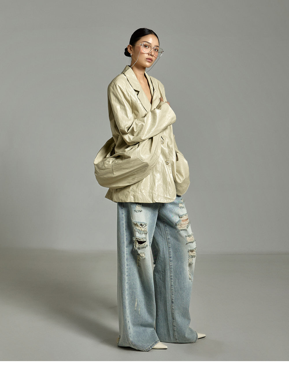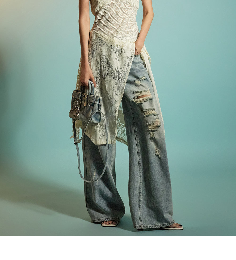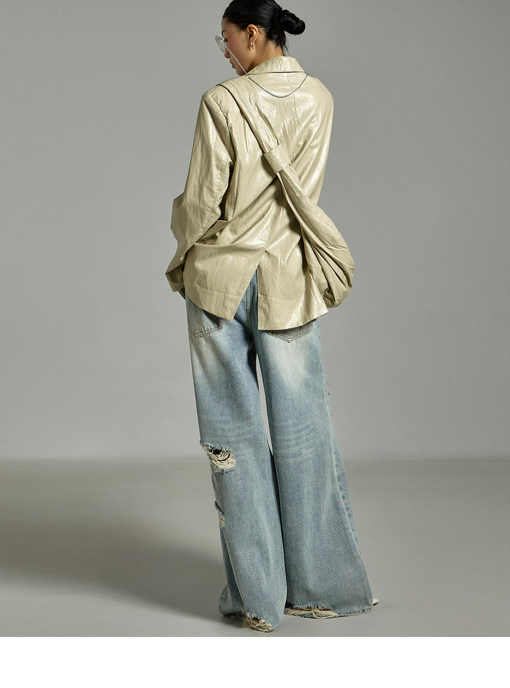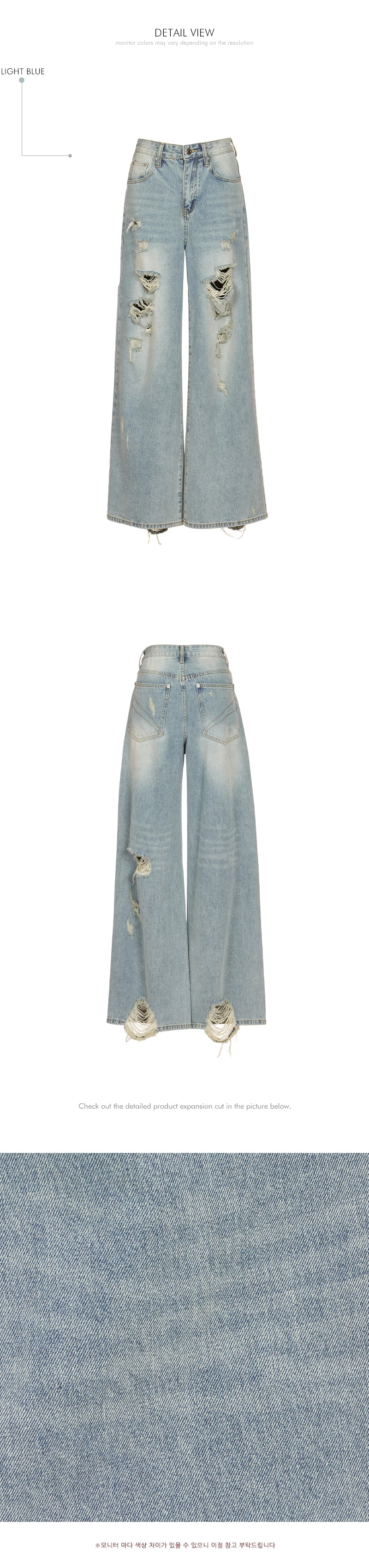 while the distressed details on the front