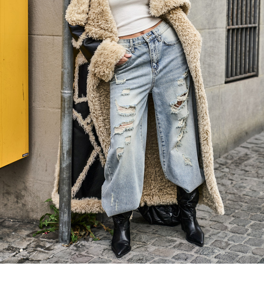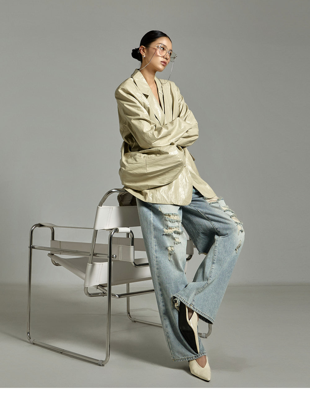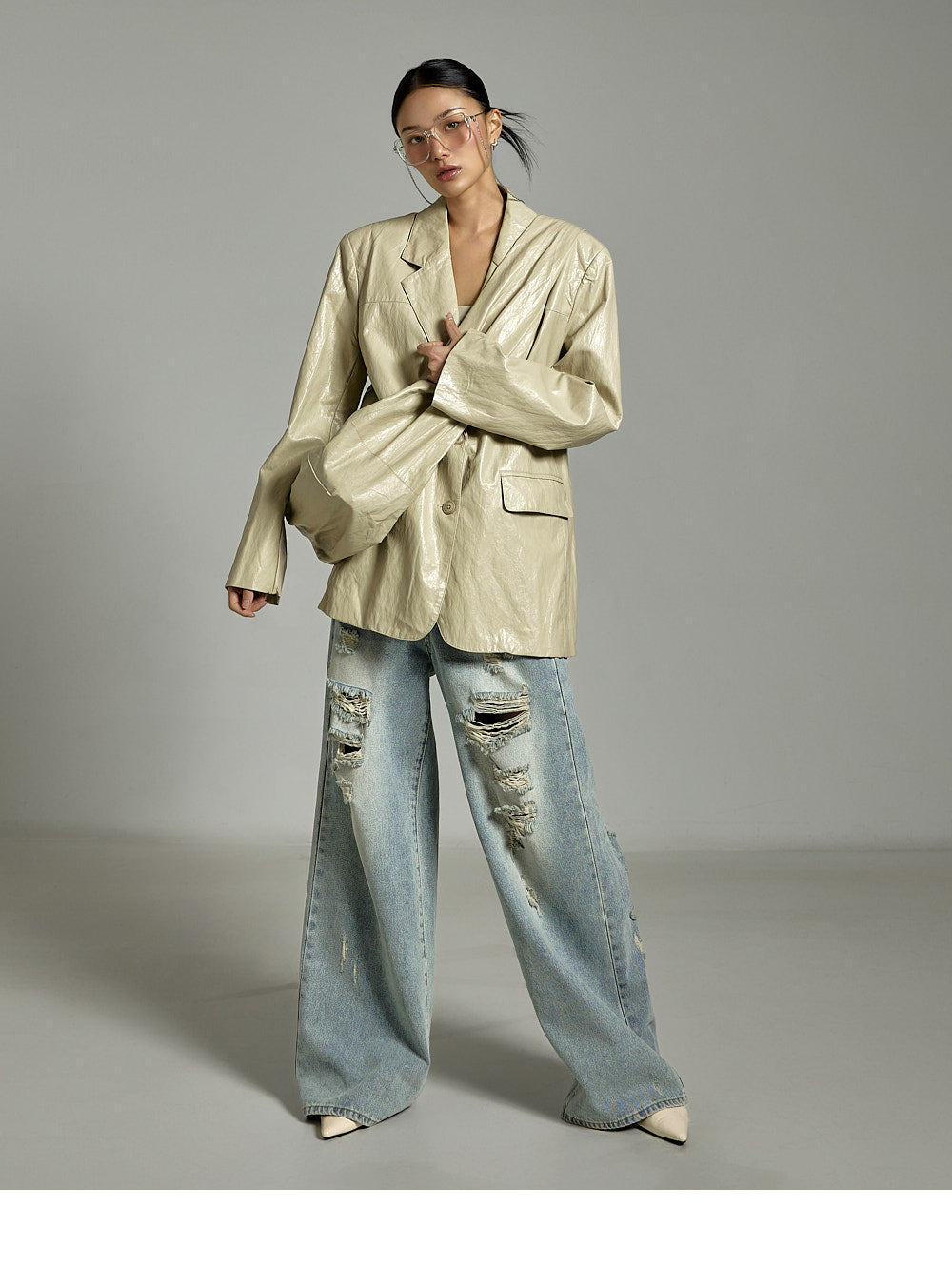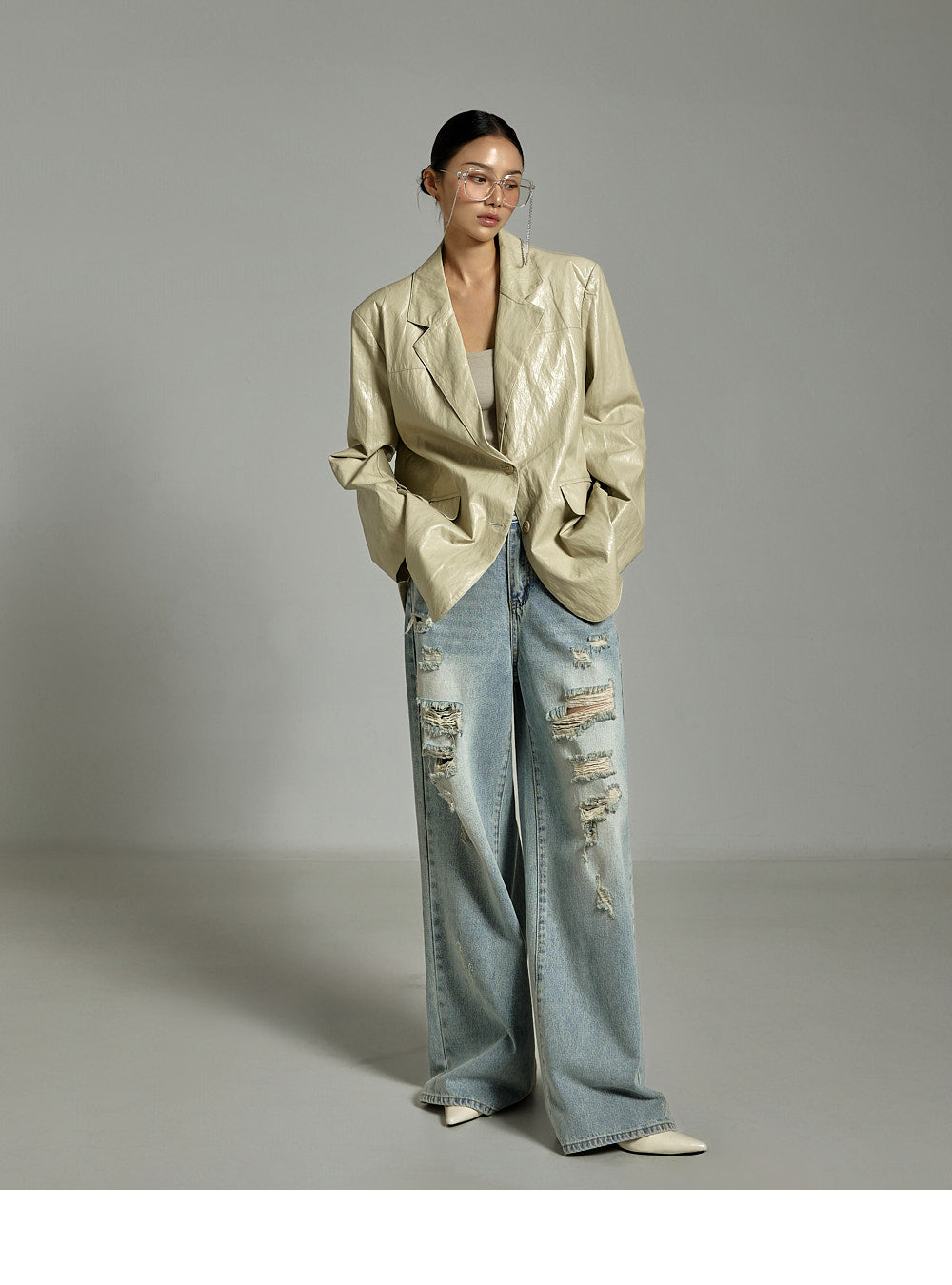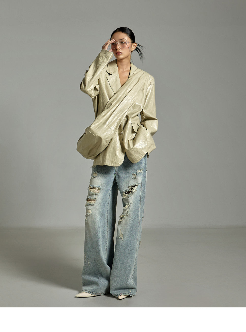 while the distressed details on the front