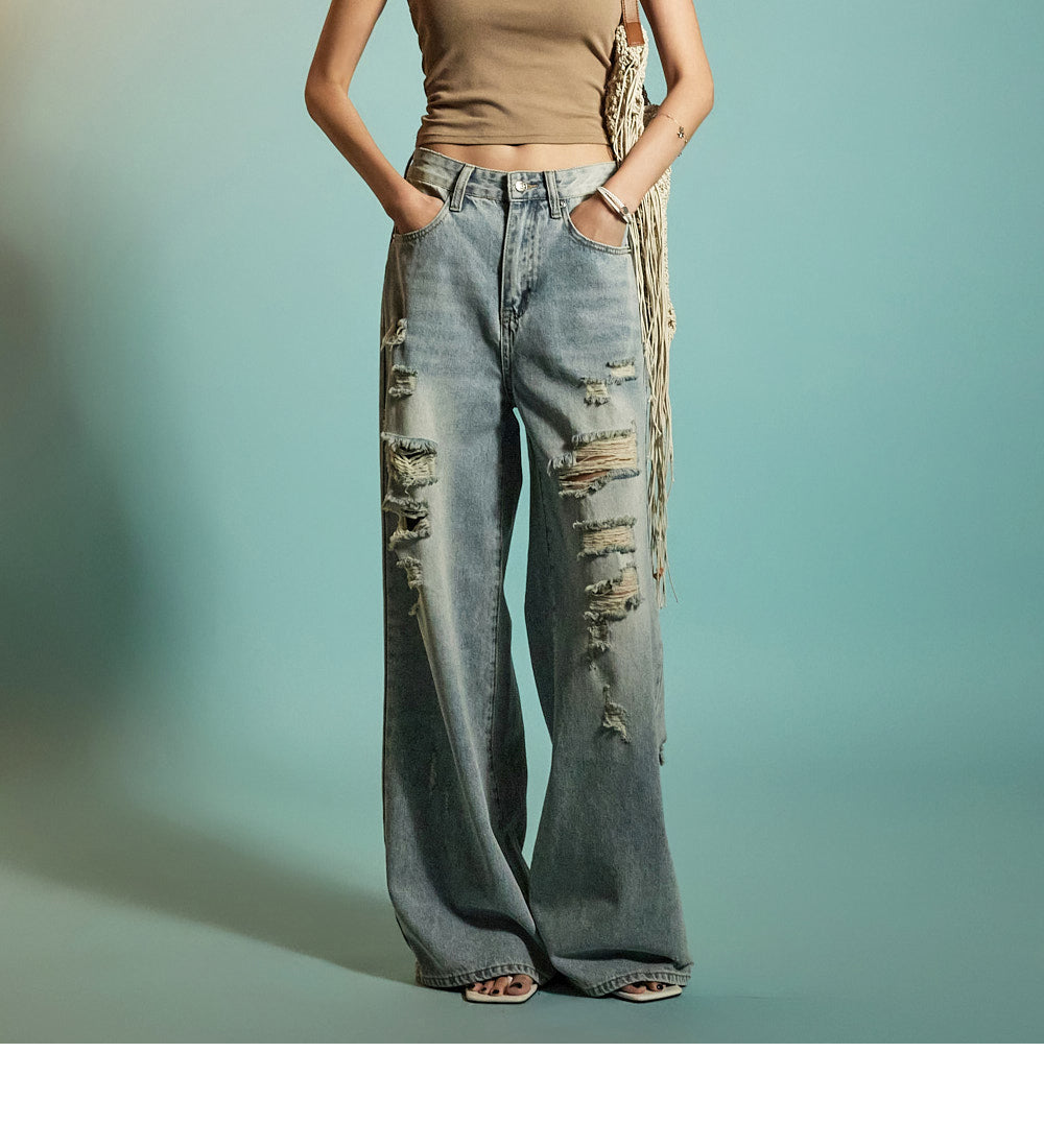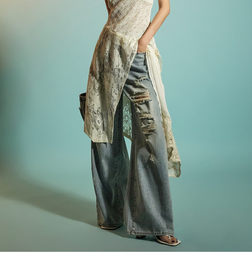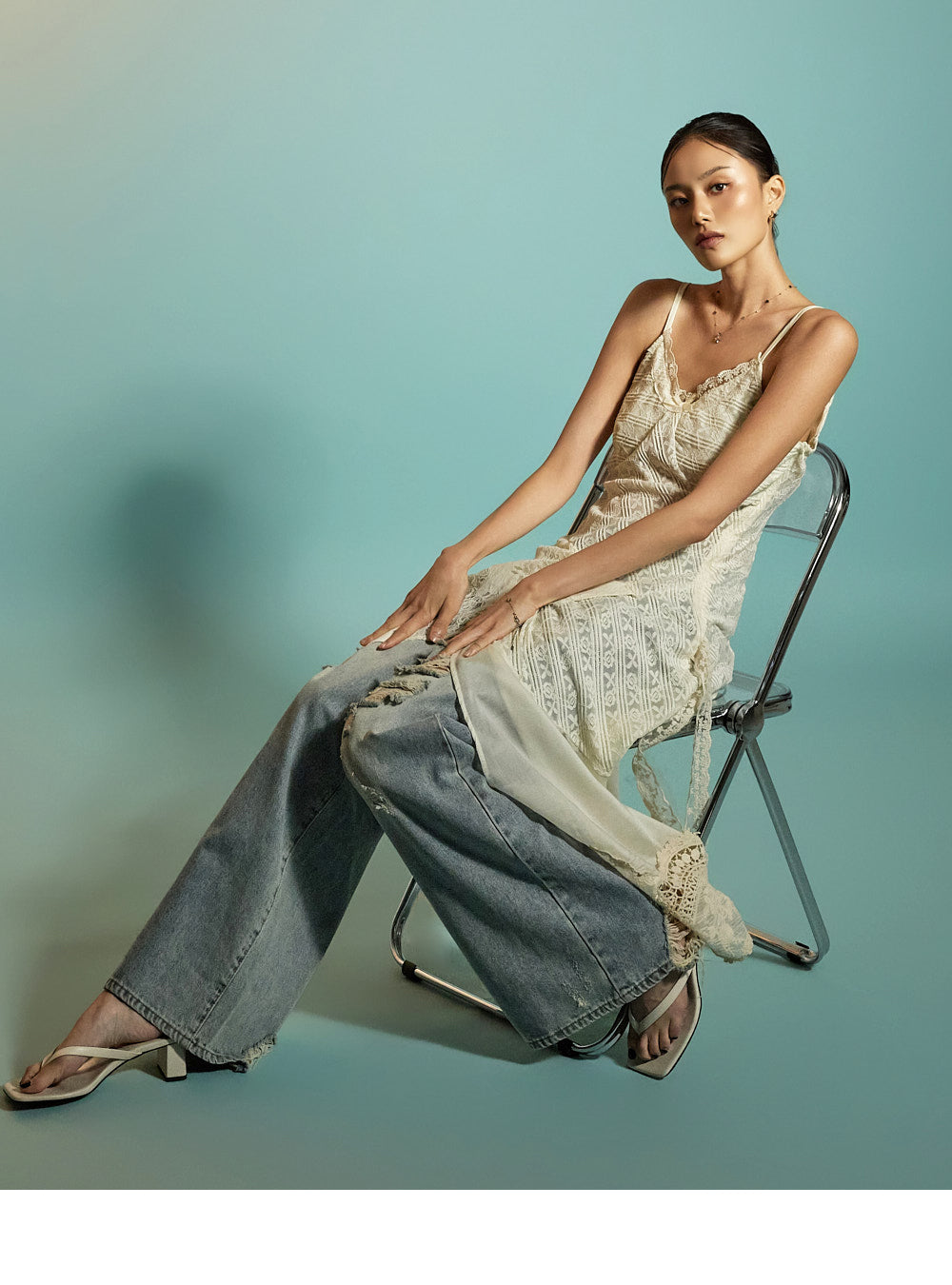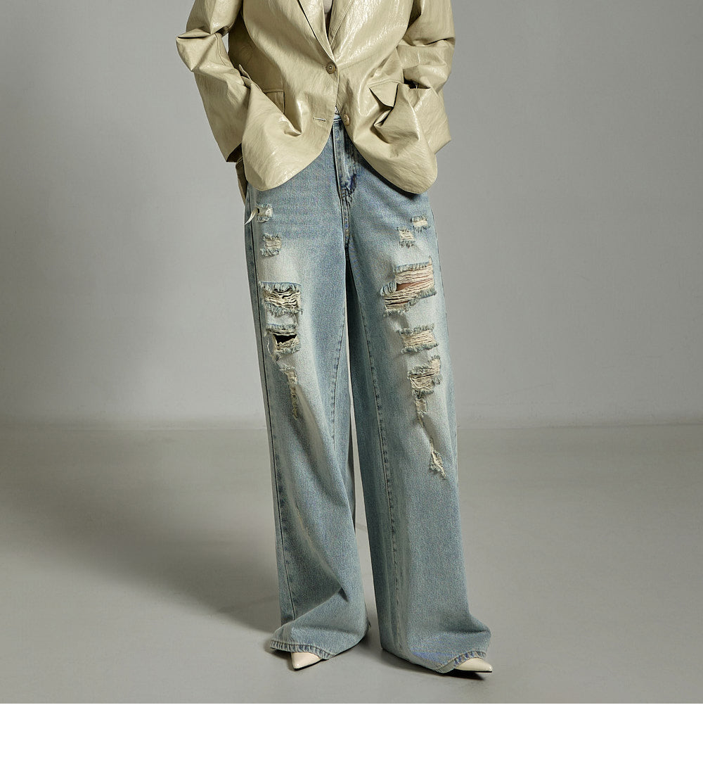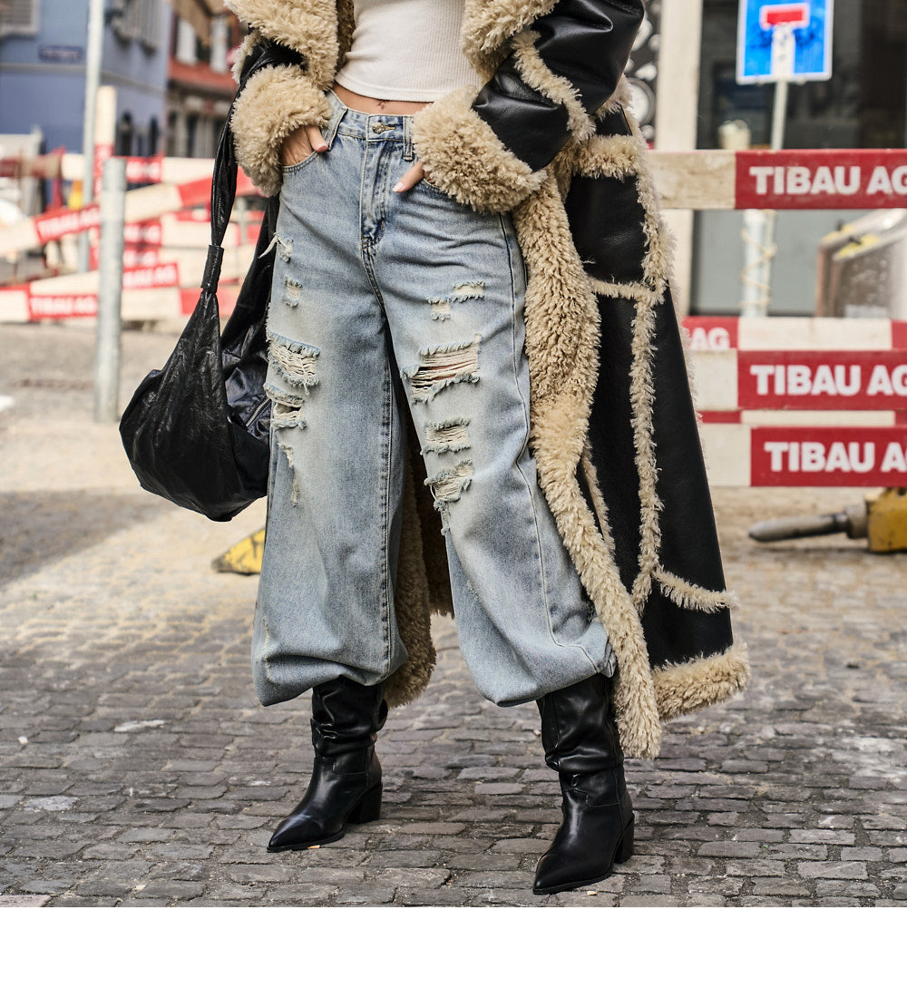 while the distressed details on the front