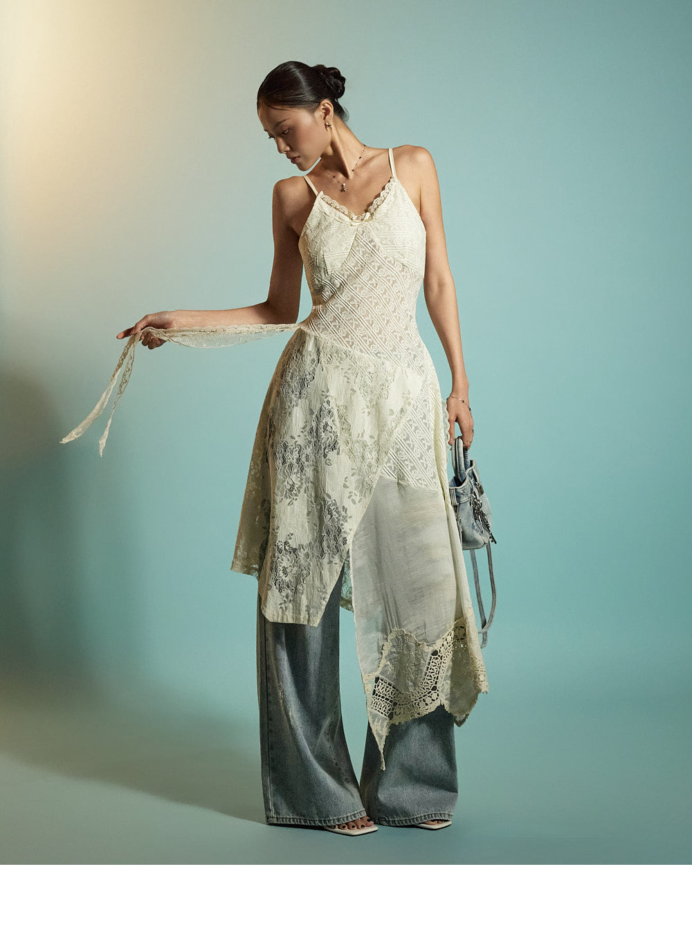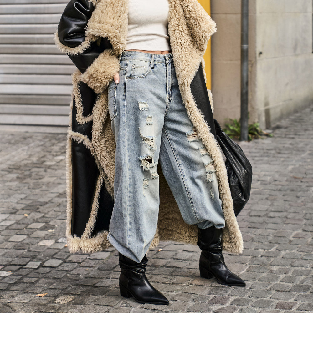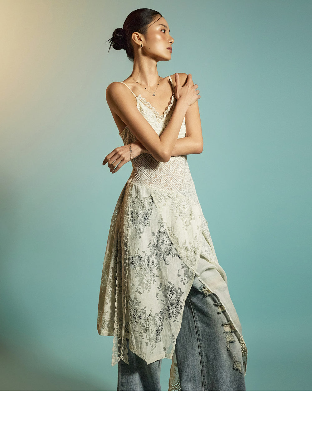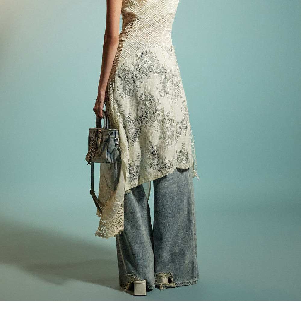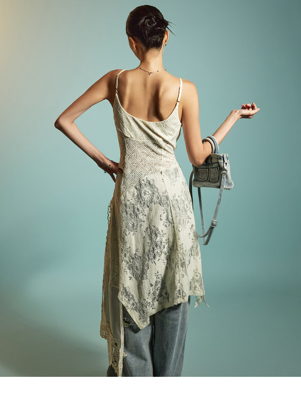 while the distressed details on the front