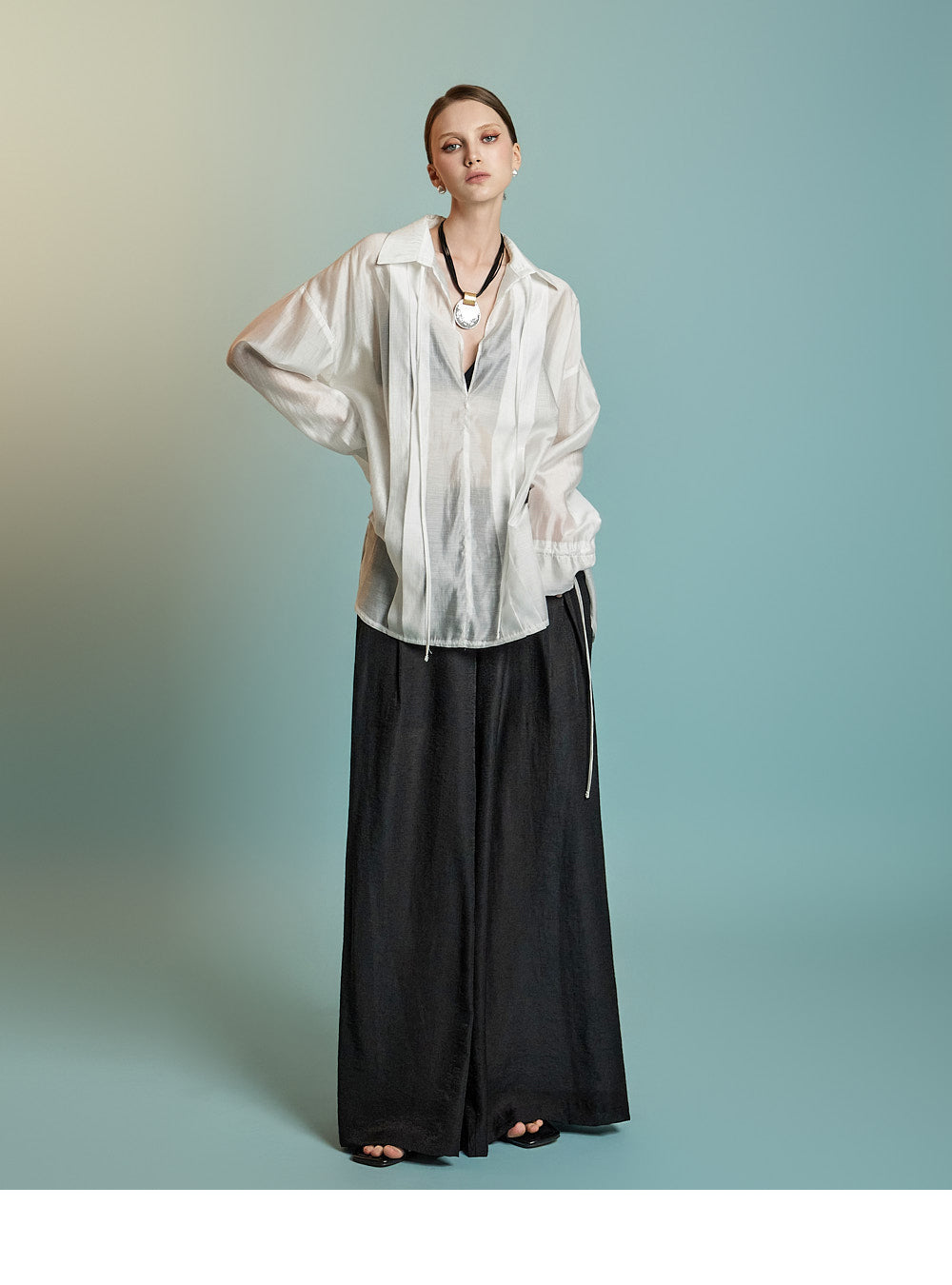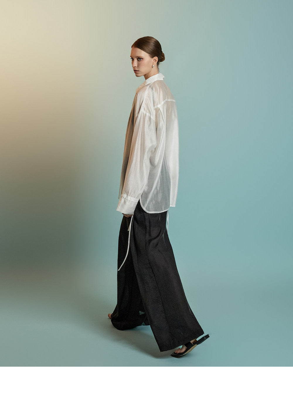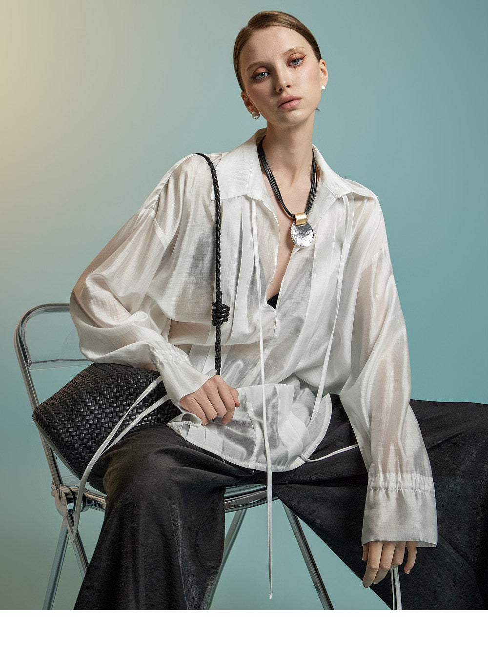 这是一件透明的、超大号的衬衫,充满女性气息。
