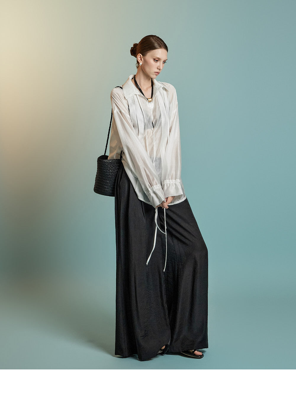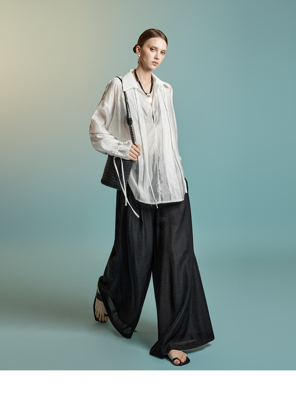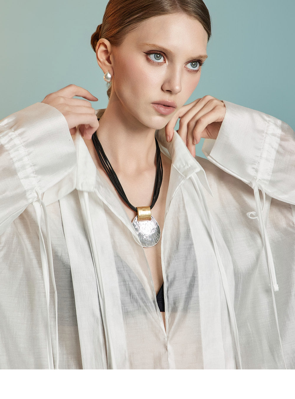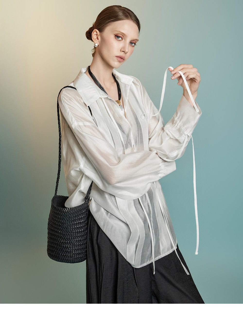 这是一件透明的、超大号的衬衫,充满女性气息。