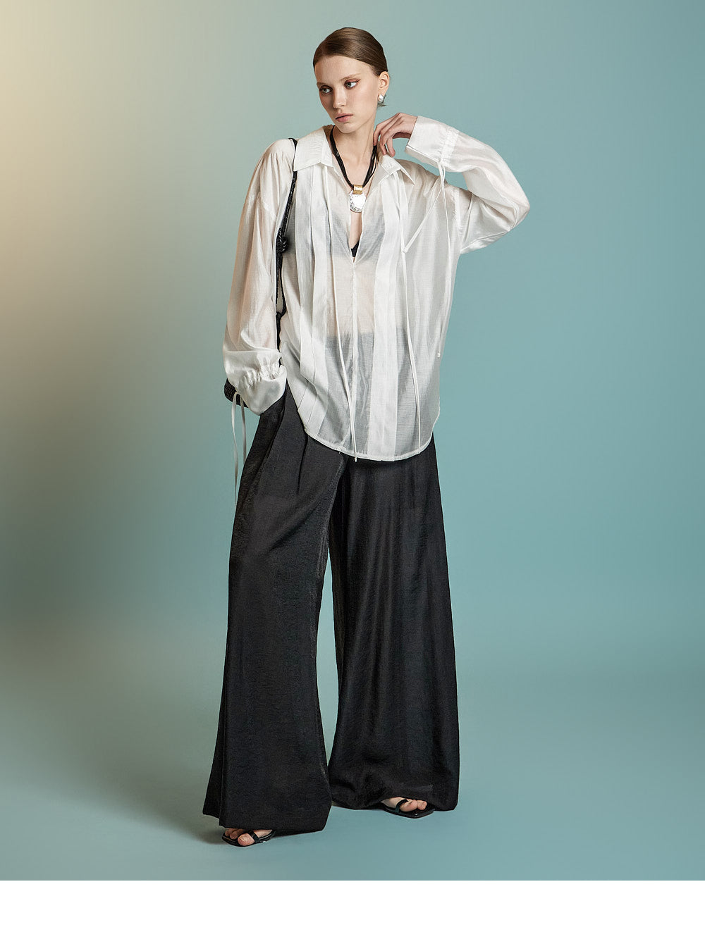 宽松的廓形和深 V 领营造出微妙性感和精致的外观。