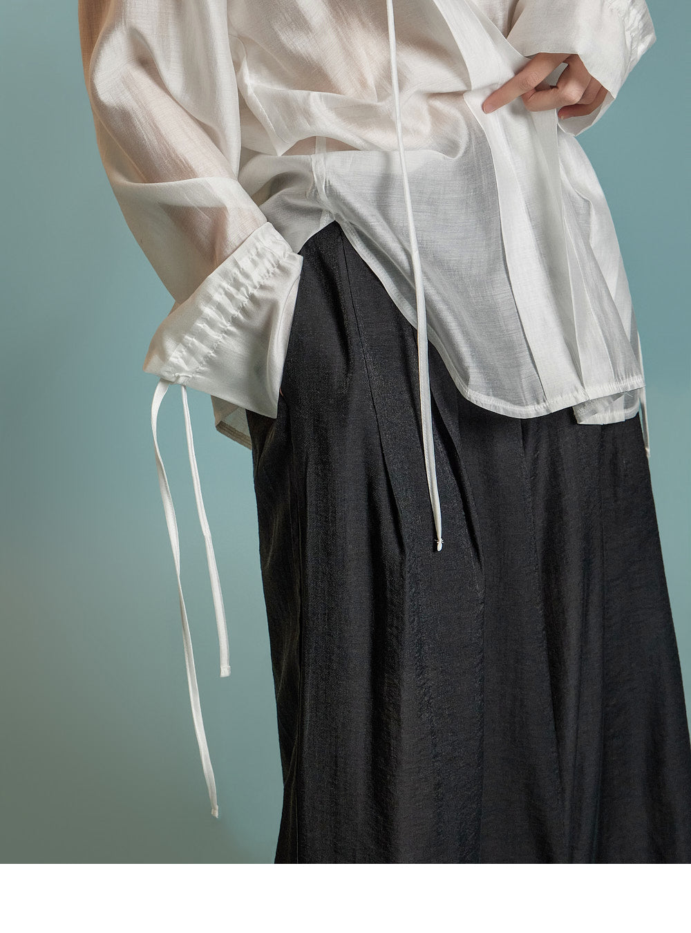 例如系一条丝带,侧开衩可增强活动的便利性。