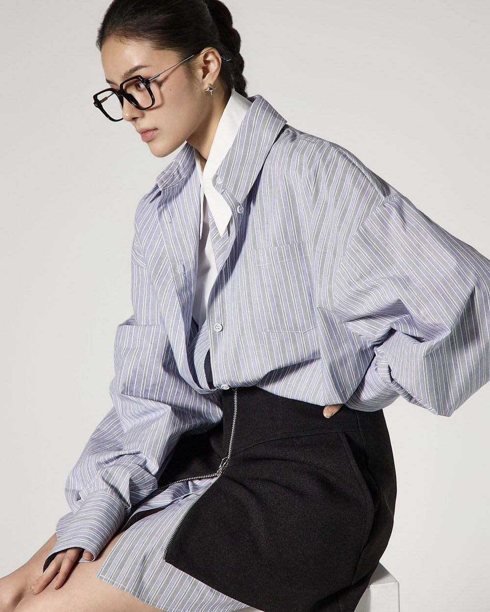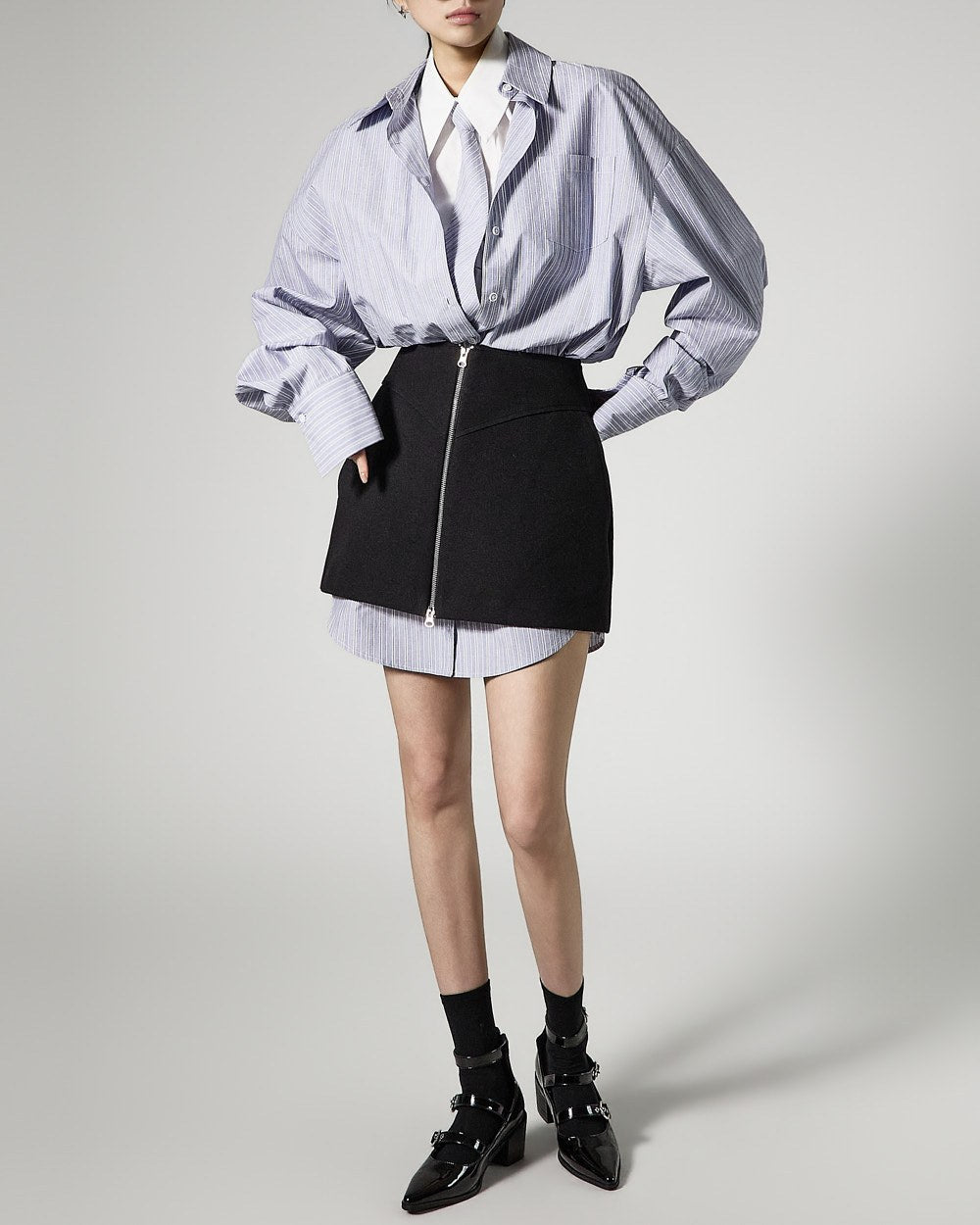 and the overall relaxed oversized fit completes a fashionable silhouette.