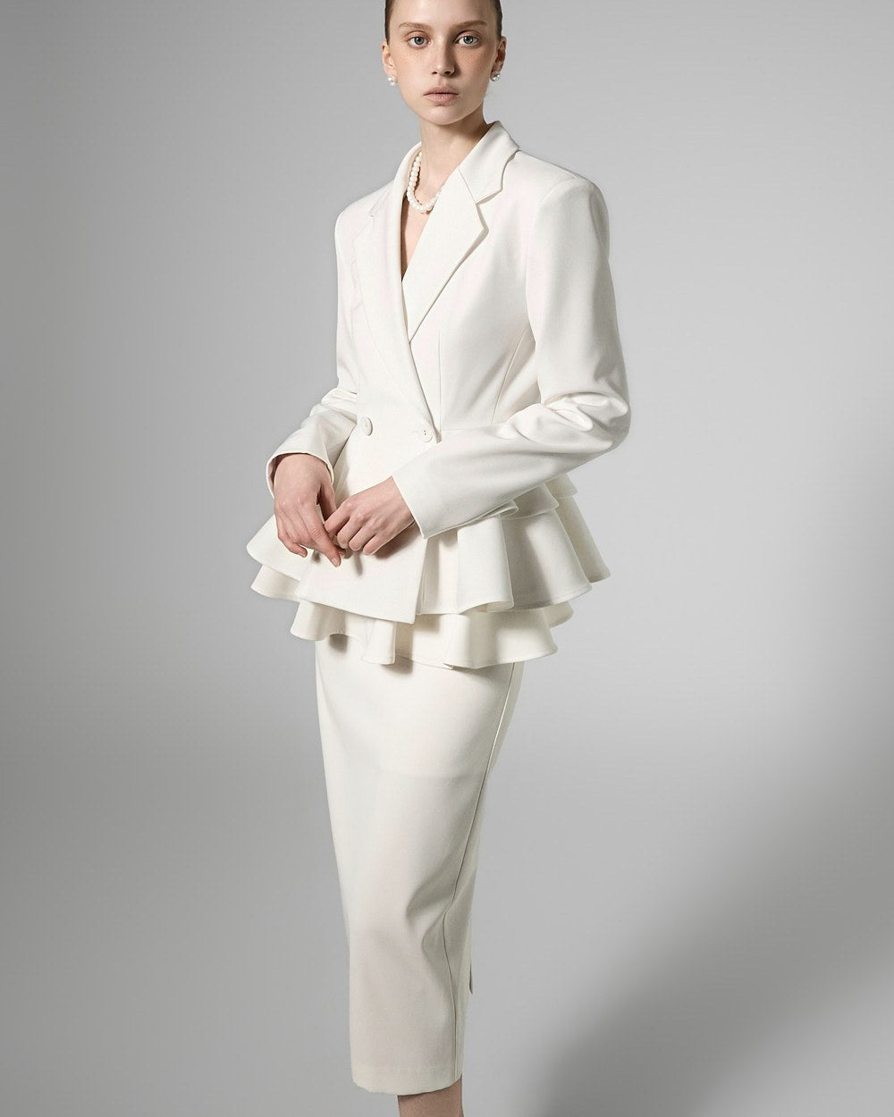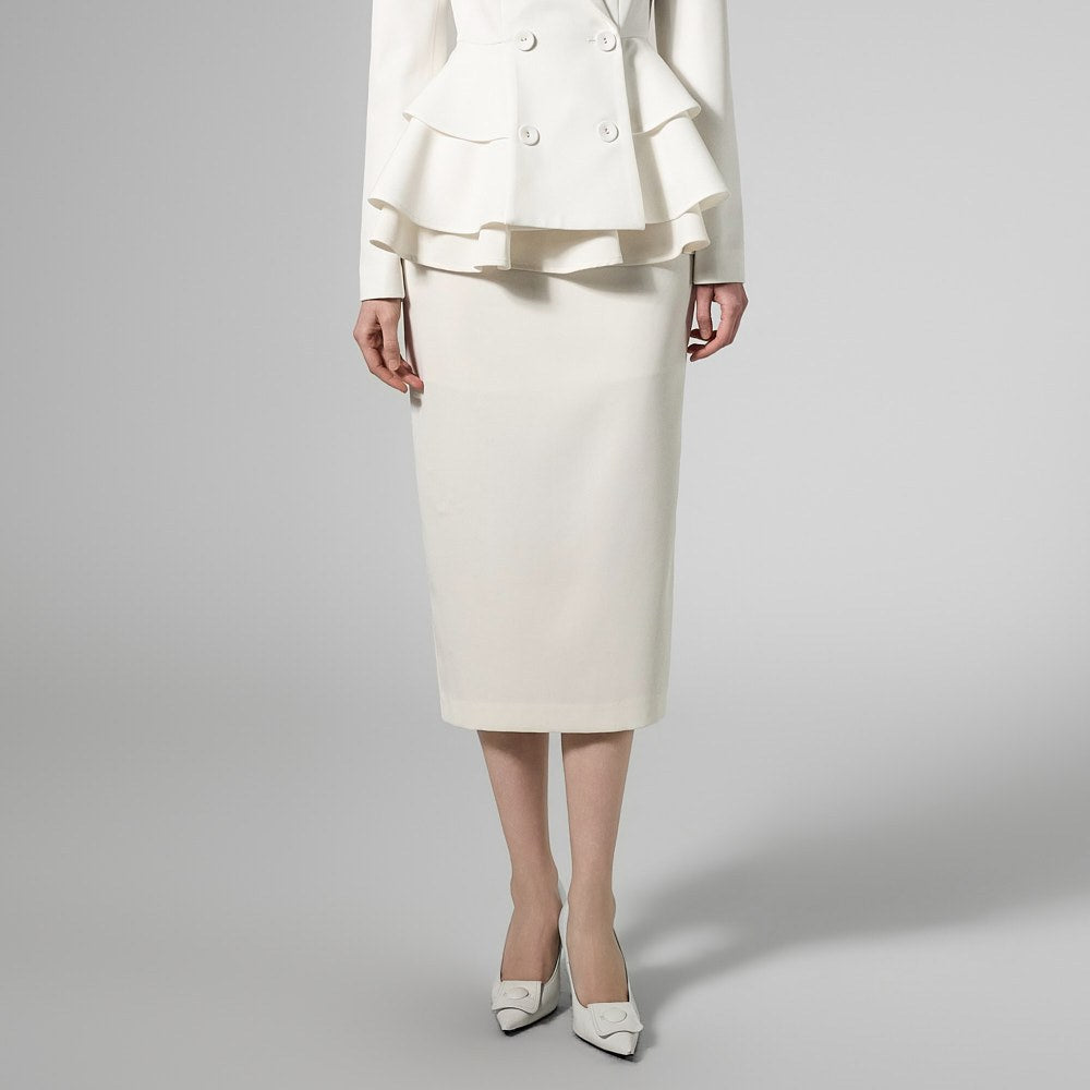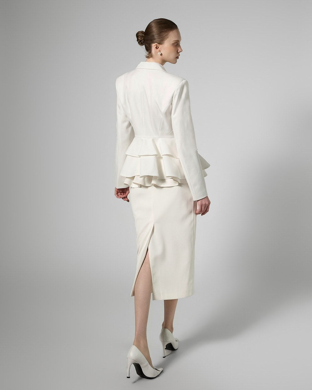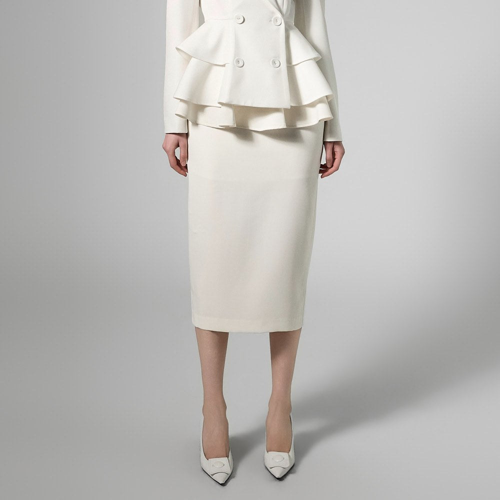 This modern-style frill skirt is perfect for wedding guests or formal occasions,