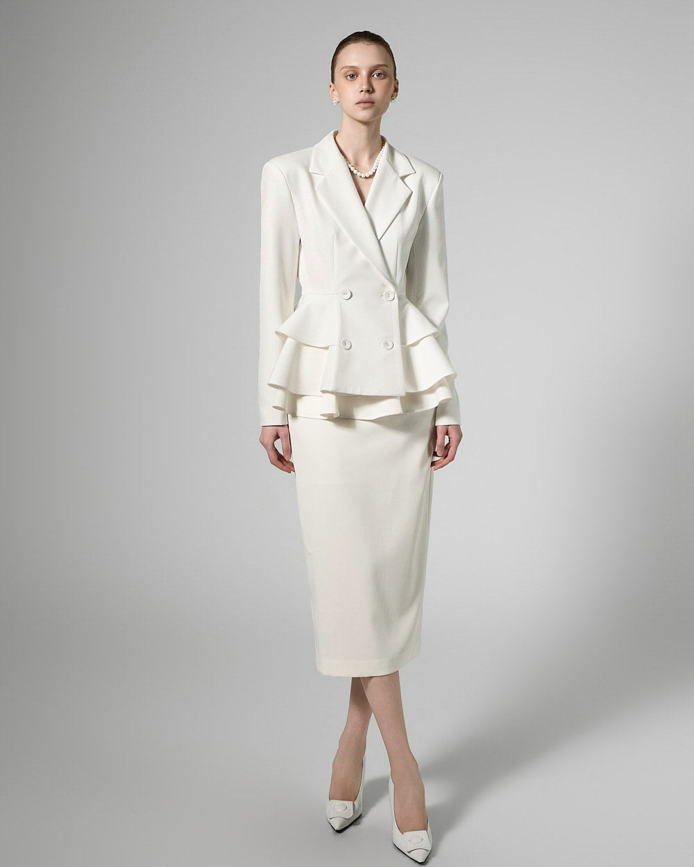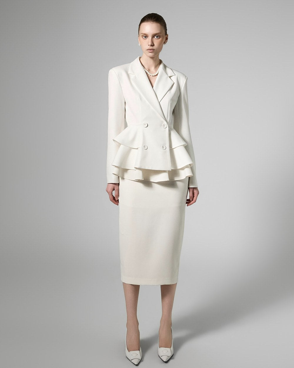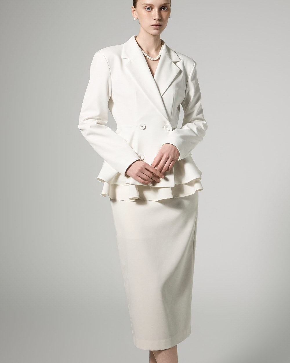 This modern-style frill skirt is perfect for wedding guests or formal occasions,
