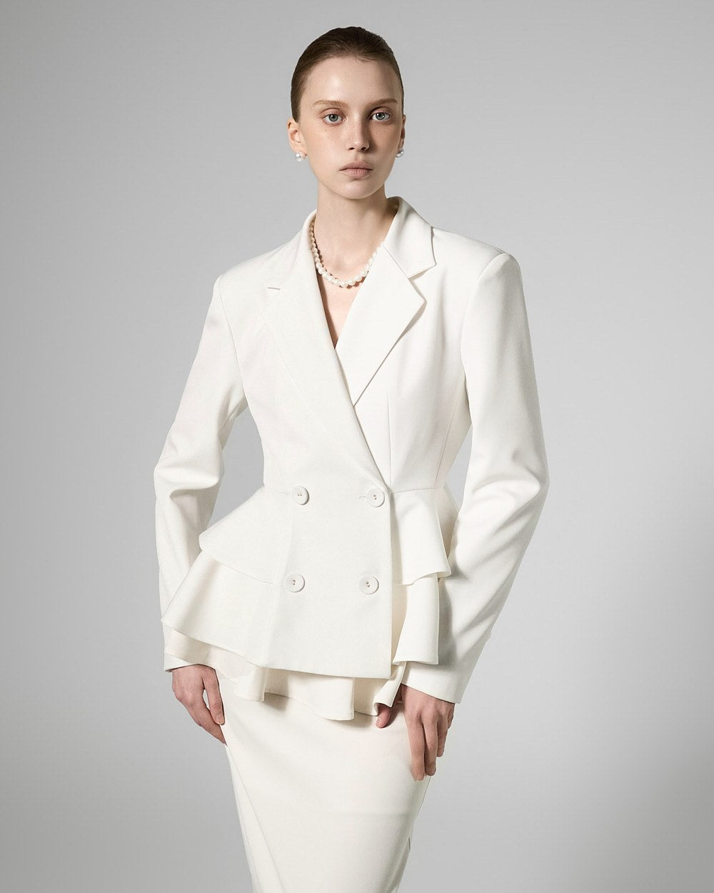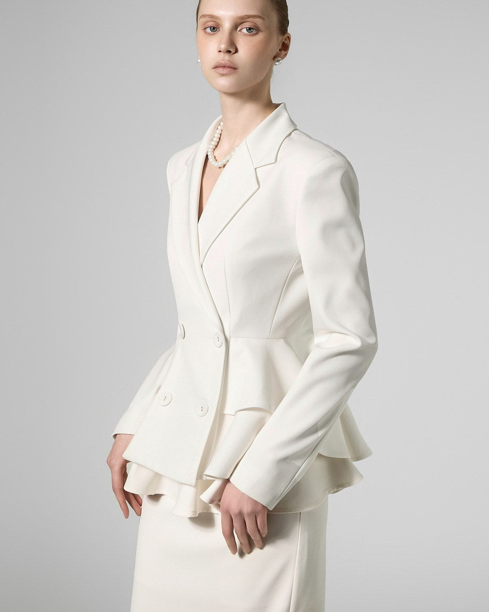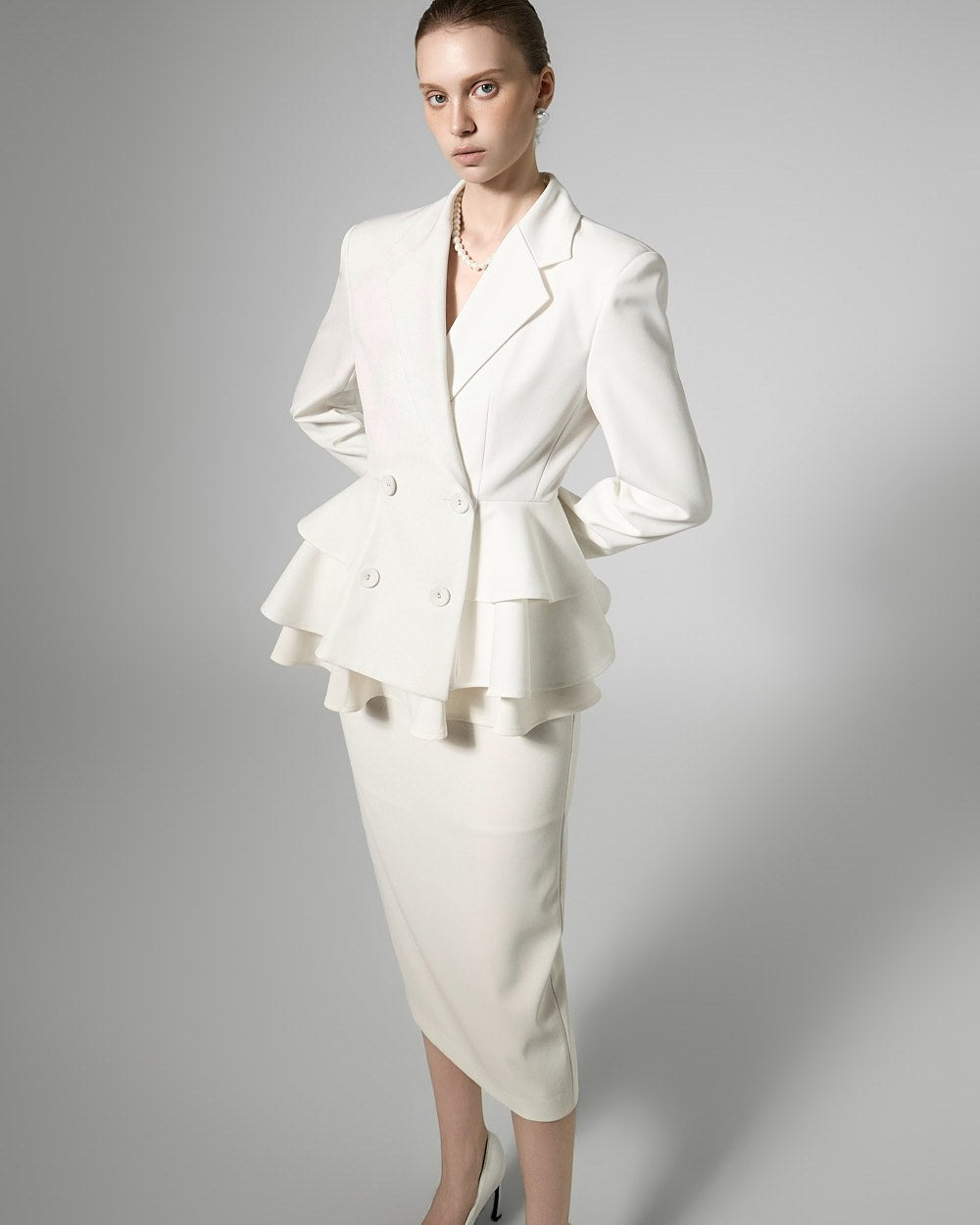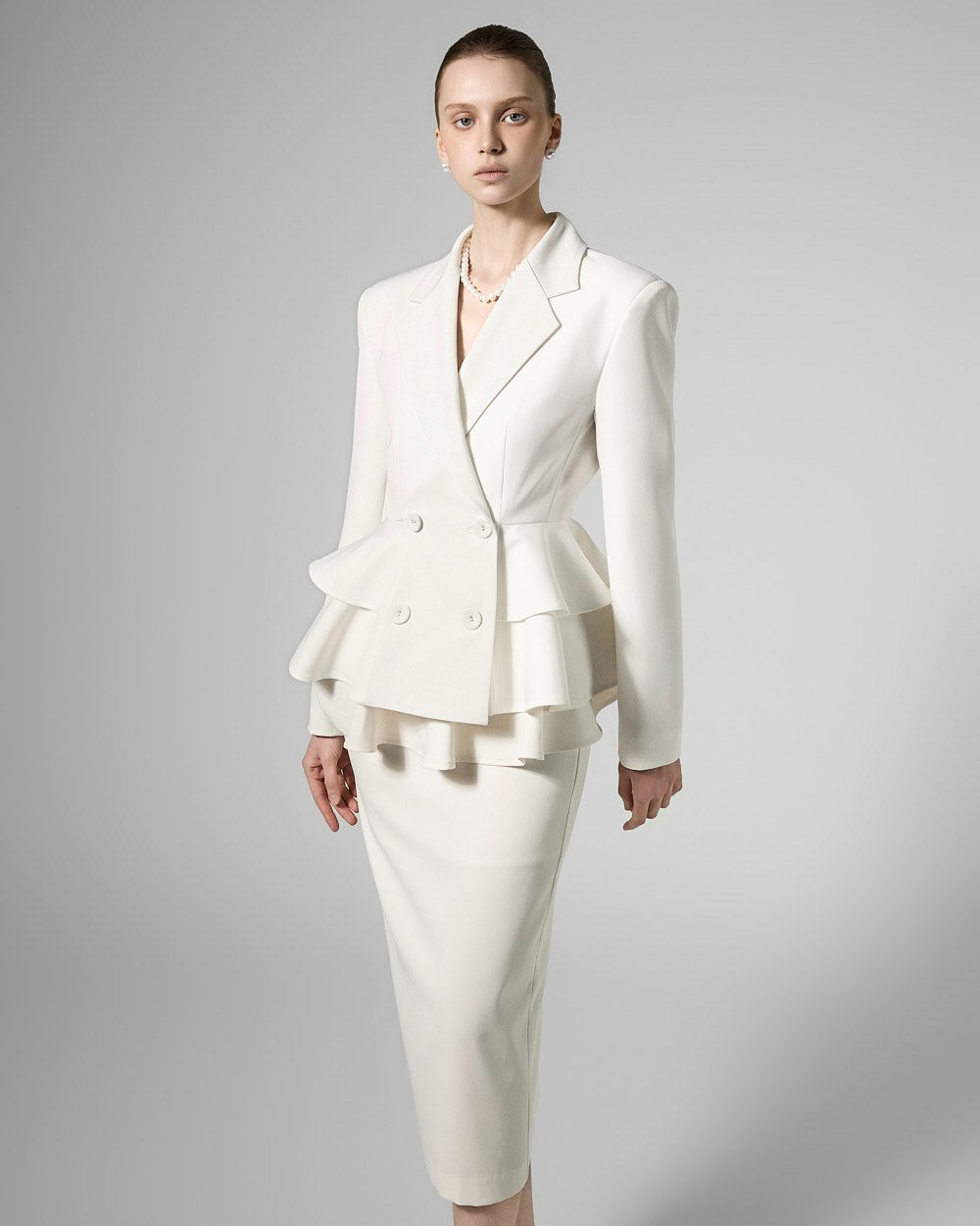 This modern-style frill skirt is perfect for wedding guests or formal occasions,