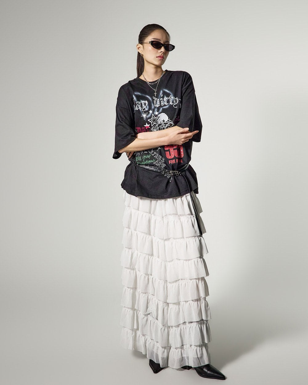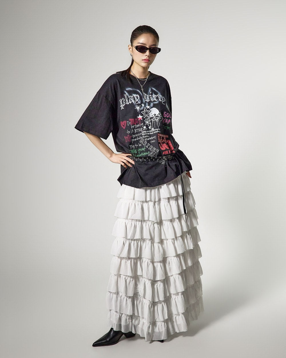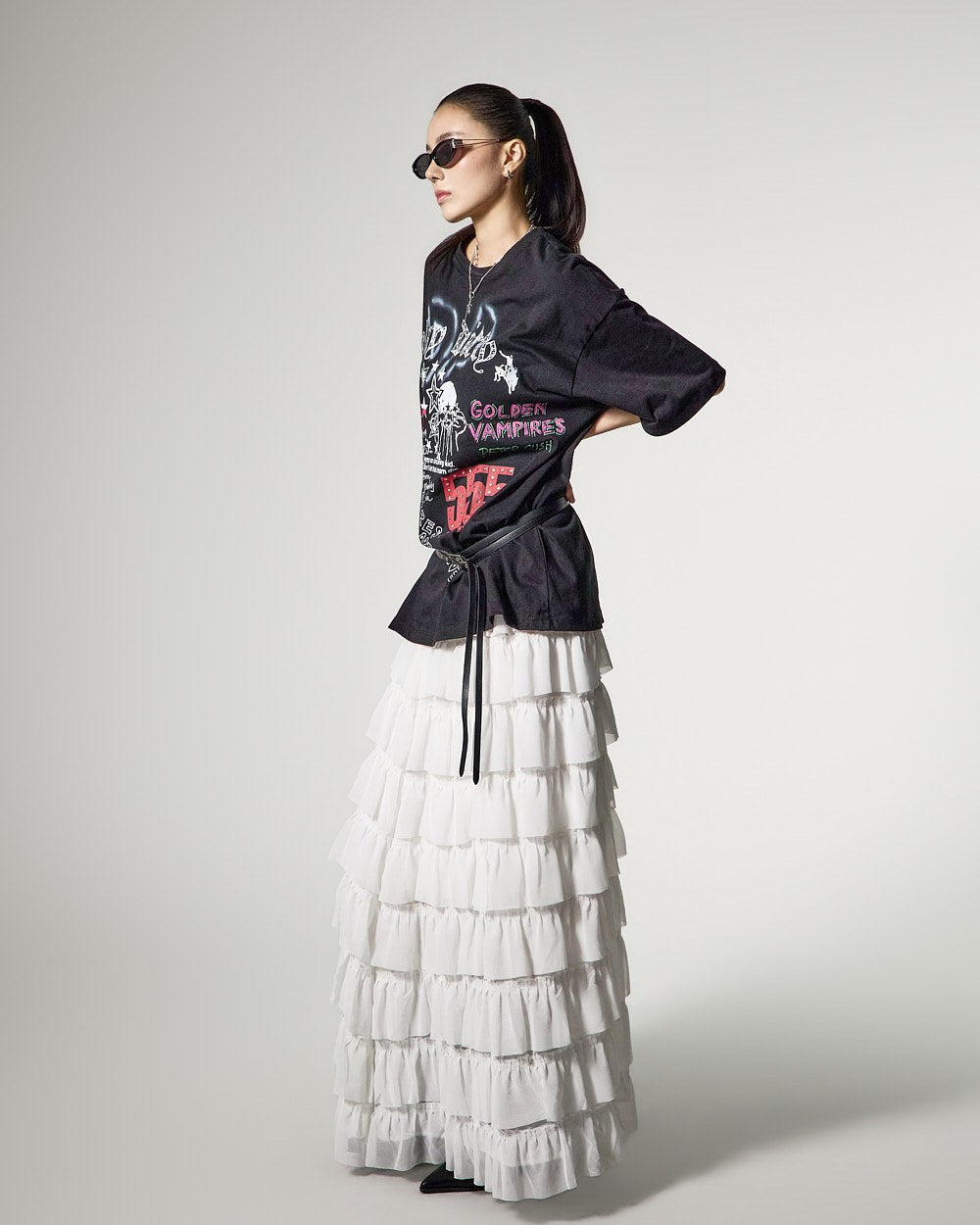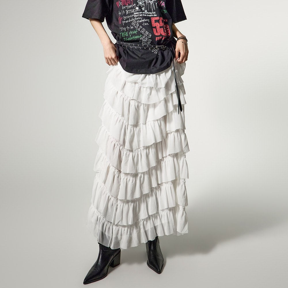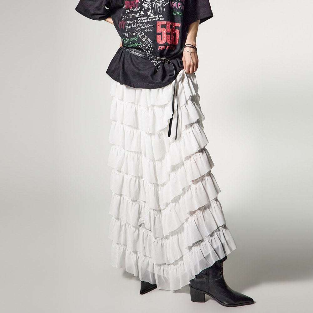 这是一款具有独特气质的层叠半身裙。