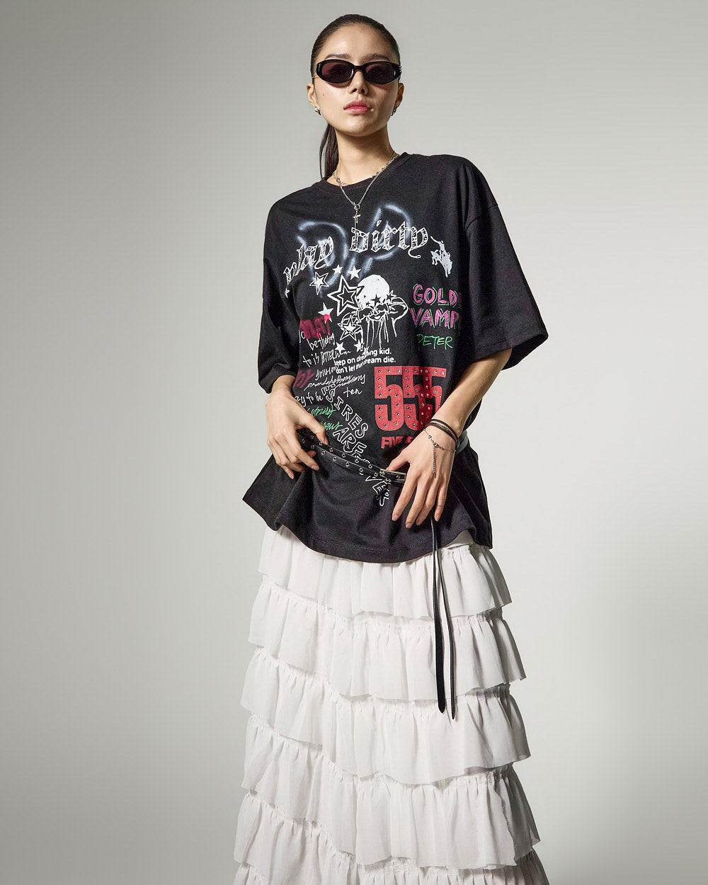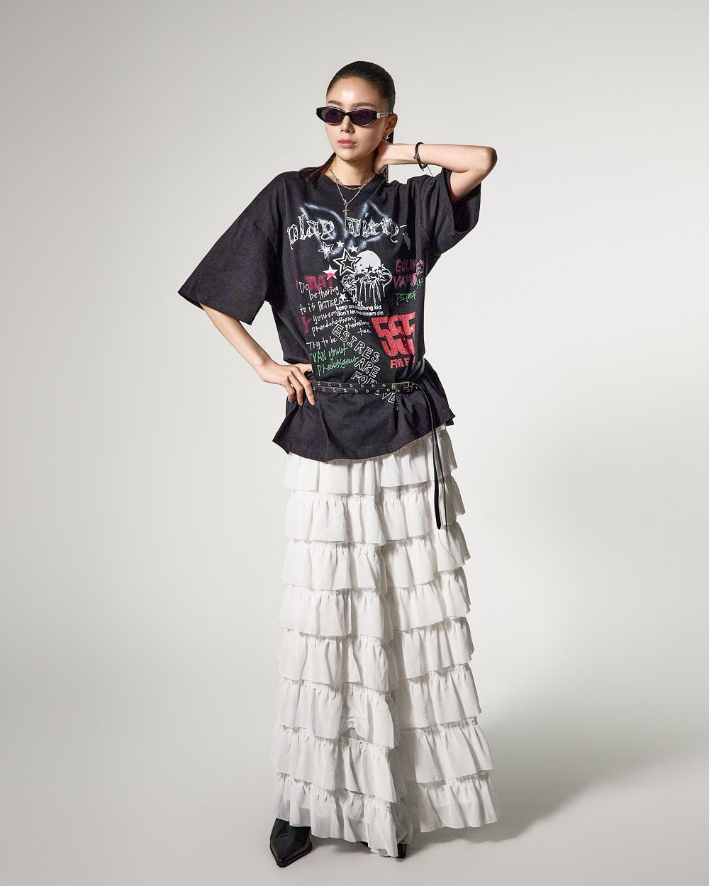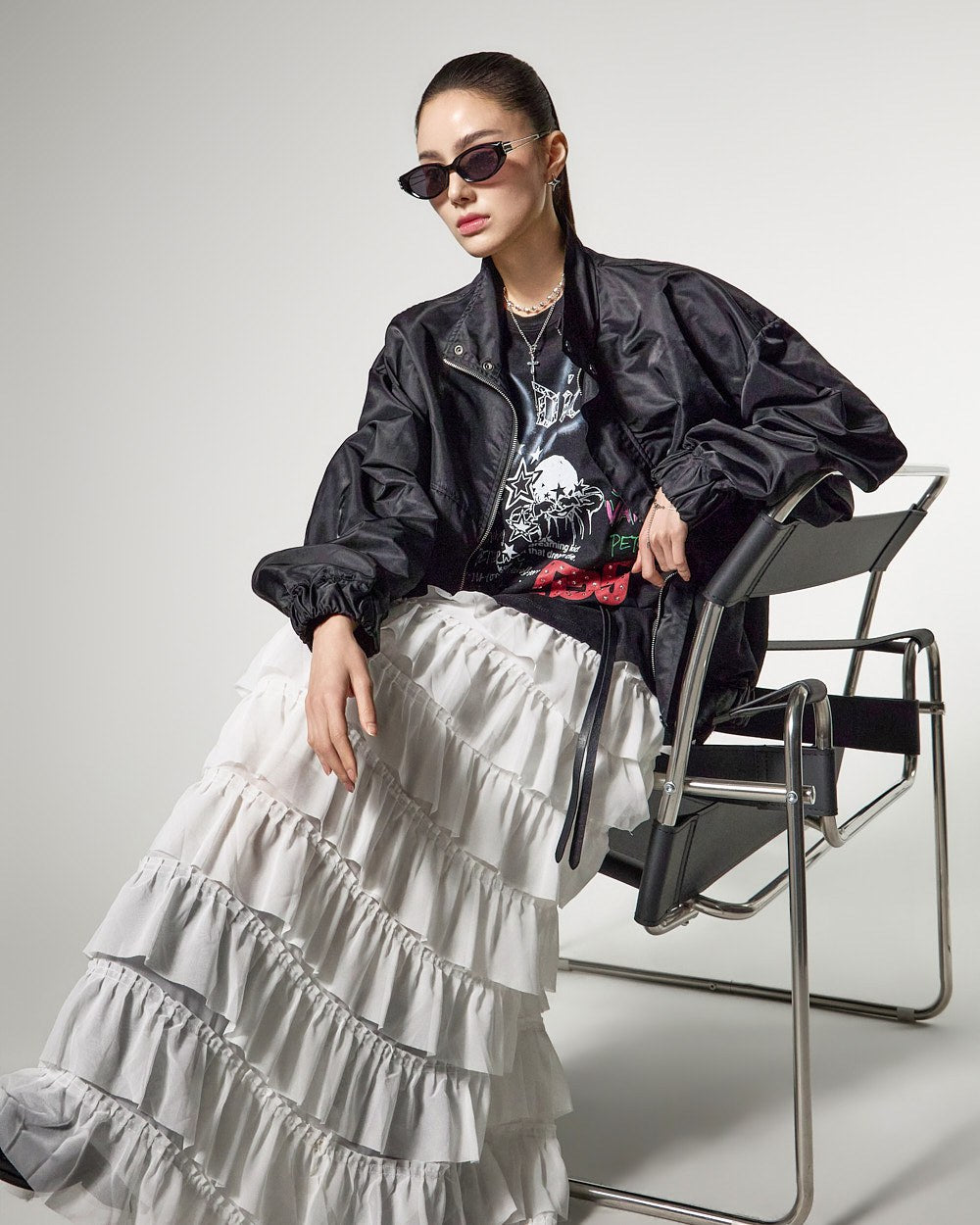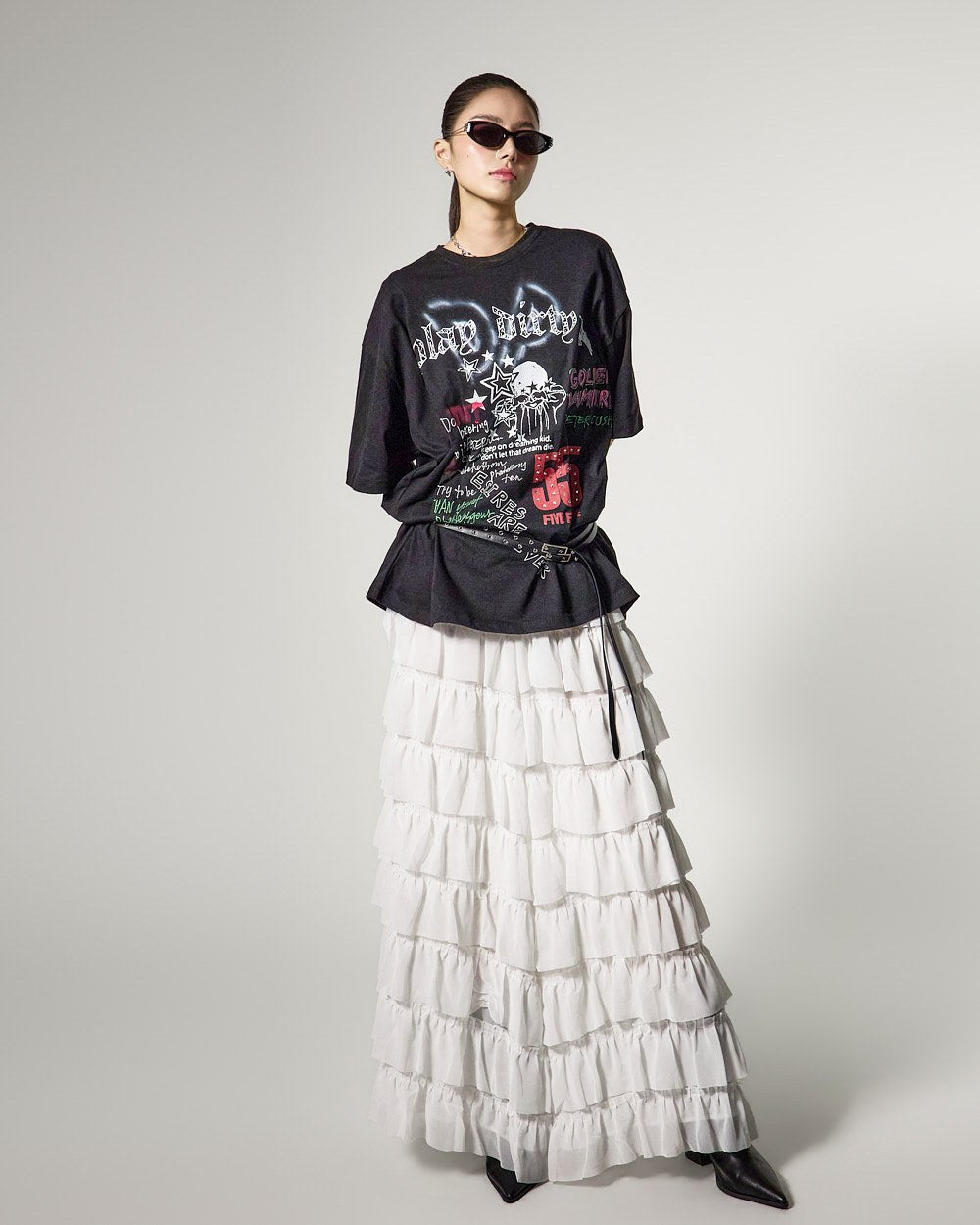 这是一款具有独特气质的层叠半身裙。