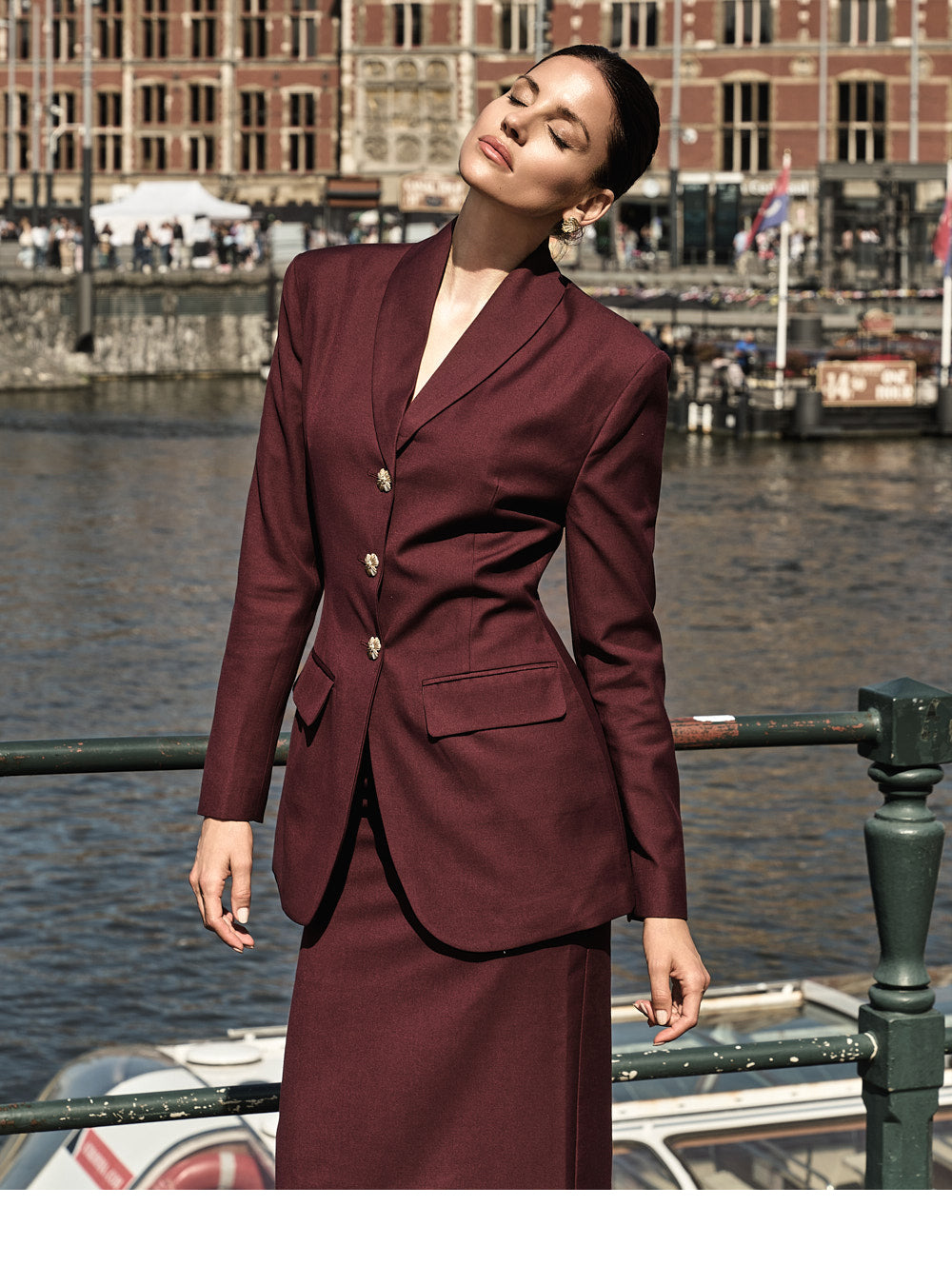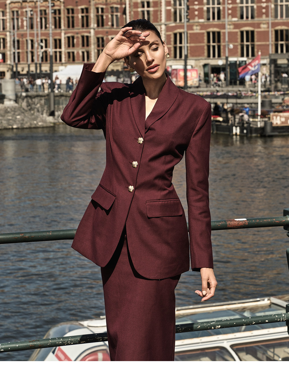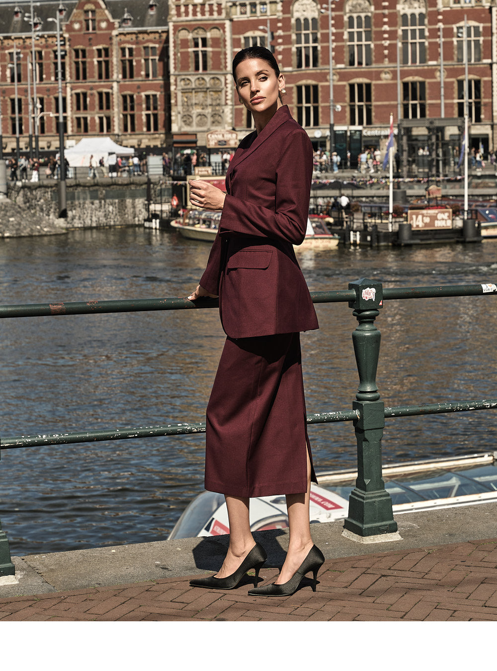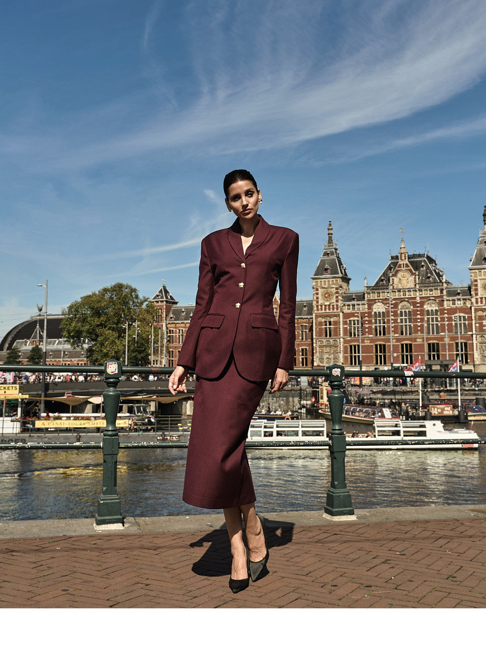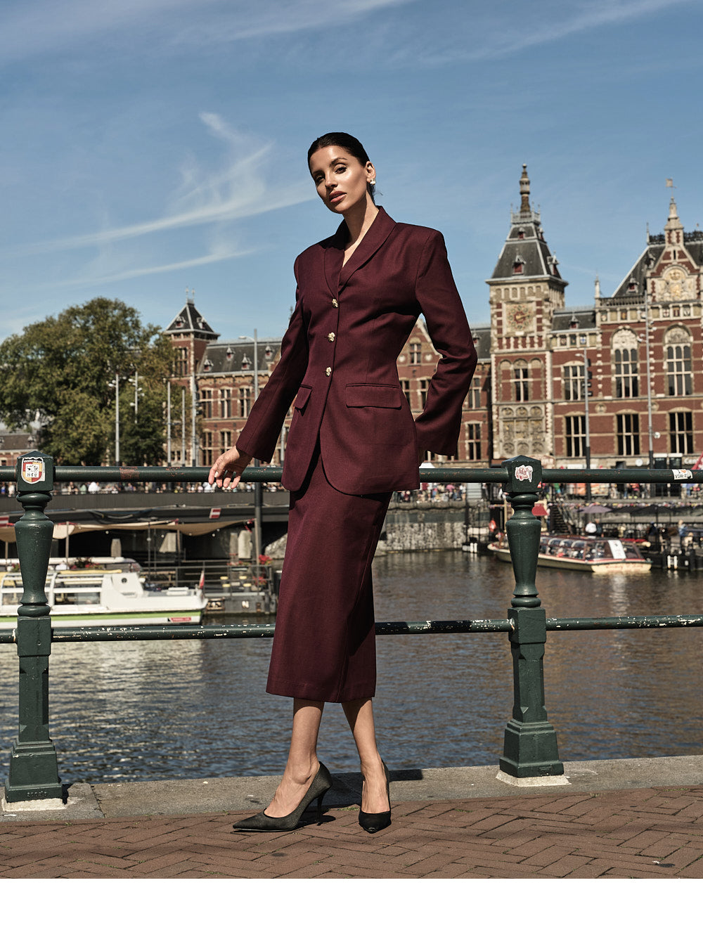 This versatile skirt can be paired with a matching jacket for a classic look,