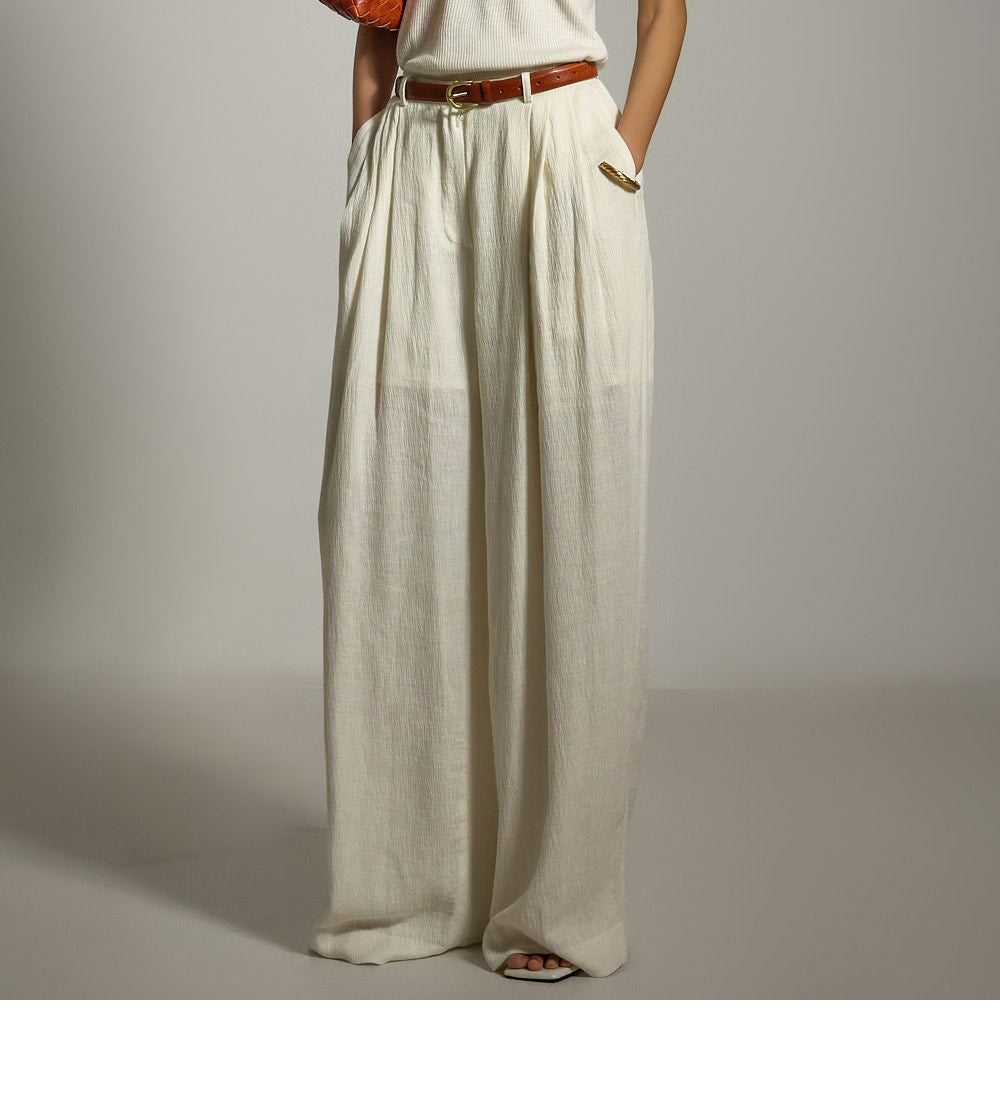 这款休闲裤采用宽松的廓形,带有褶裥细节,