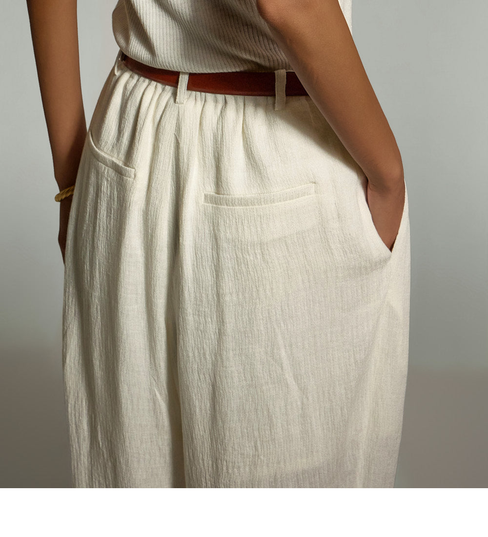 模特身高 173 厘米,上衣和下装均穿均码象牙色。