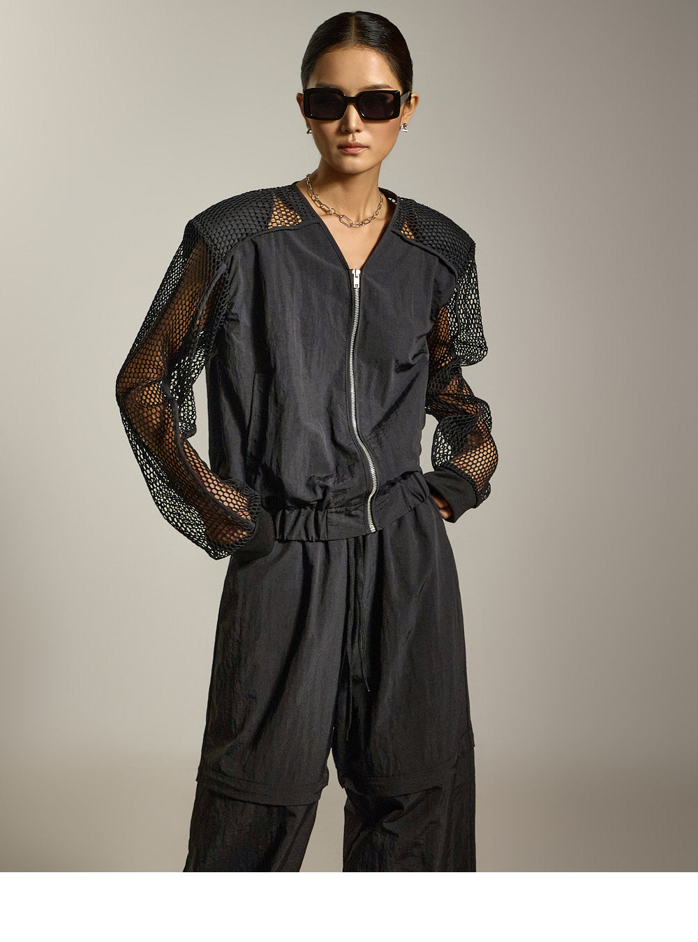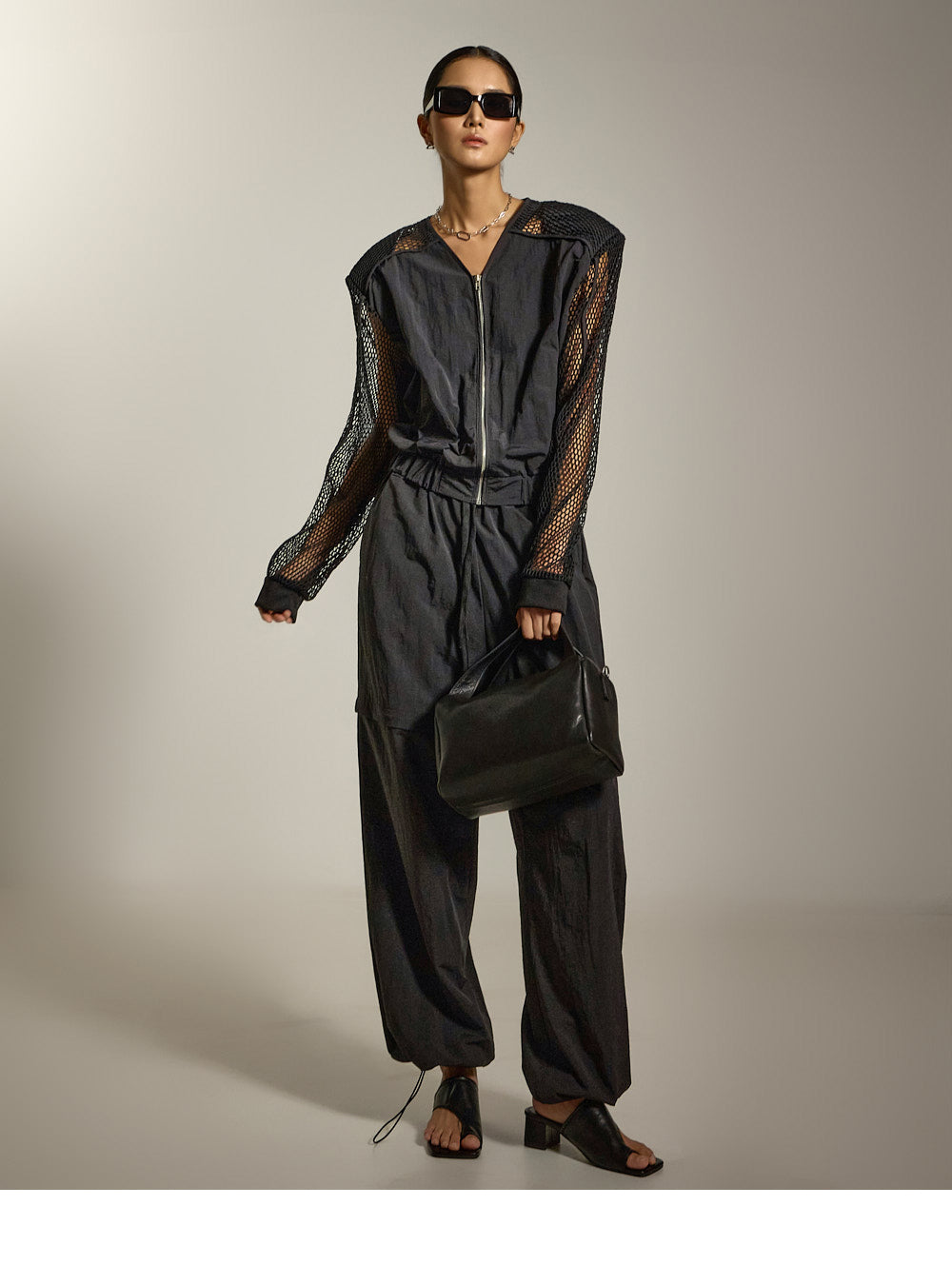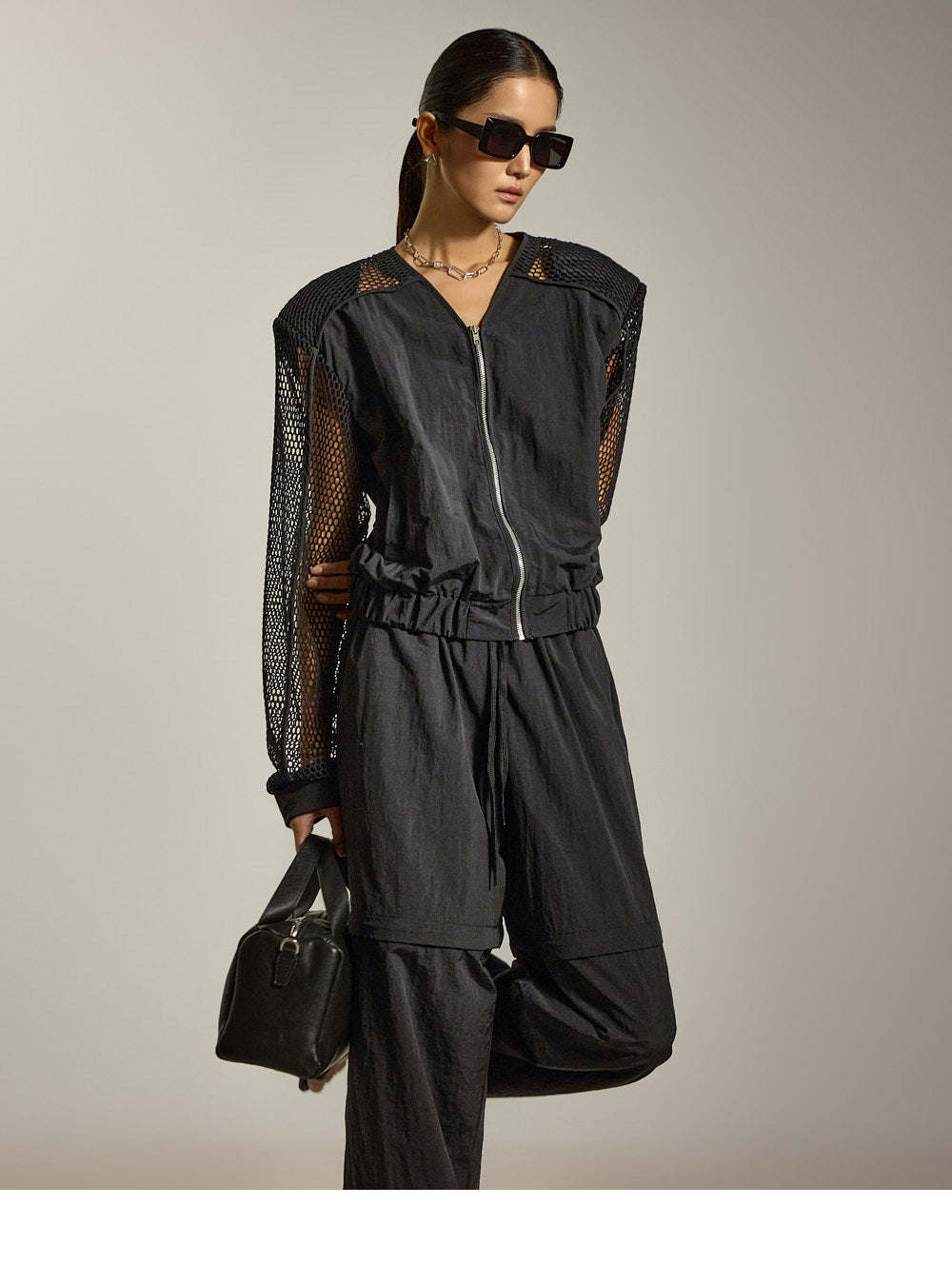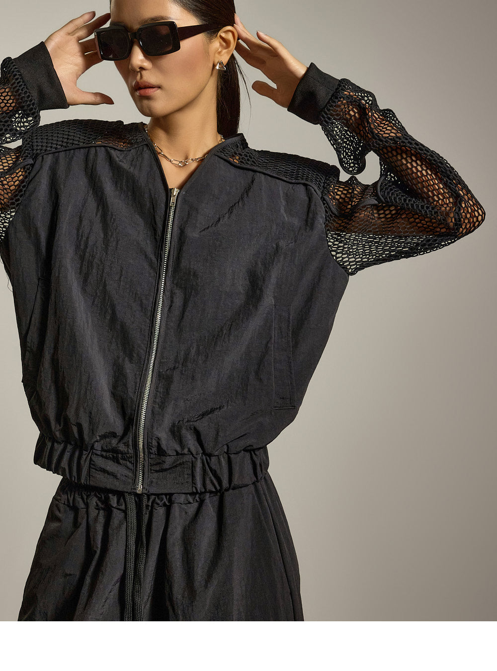 正面采用拉链闭合,下摆有弹性,穿着方便,