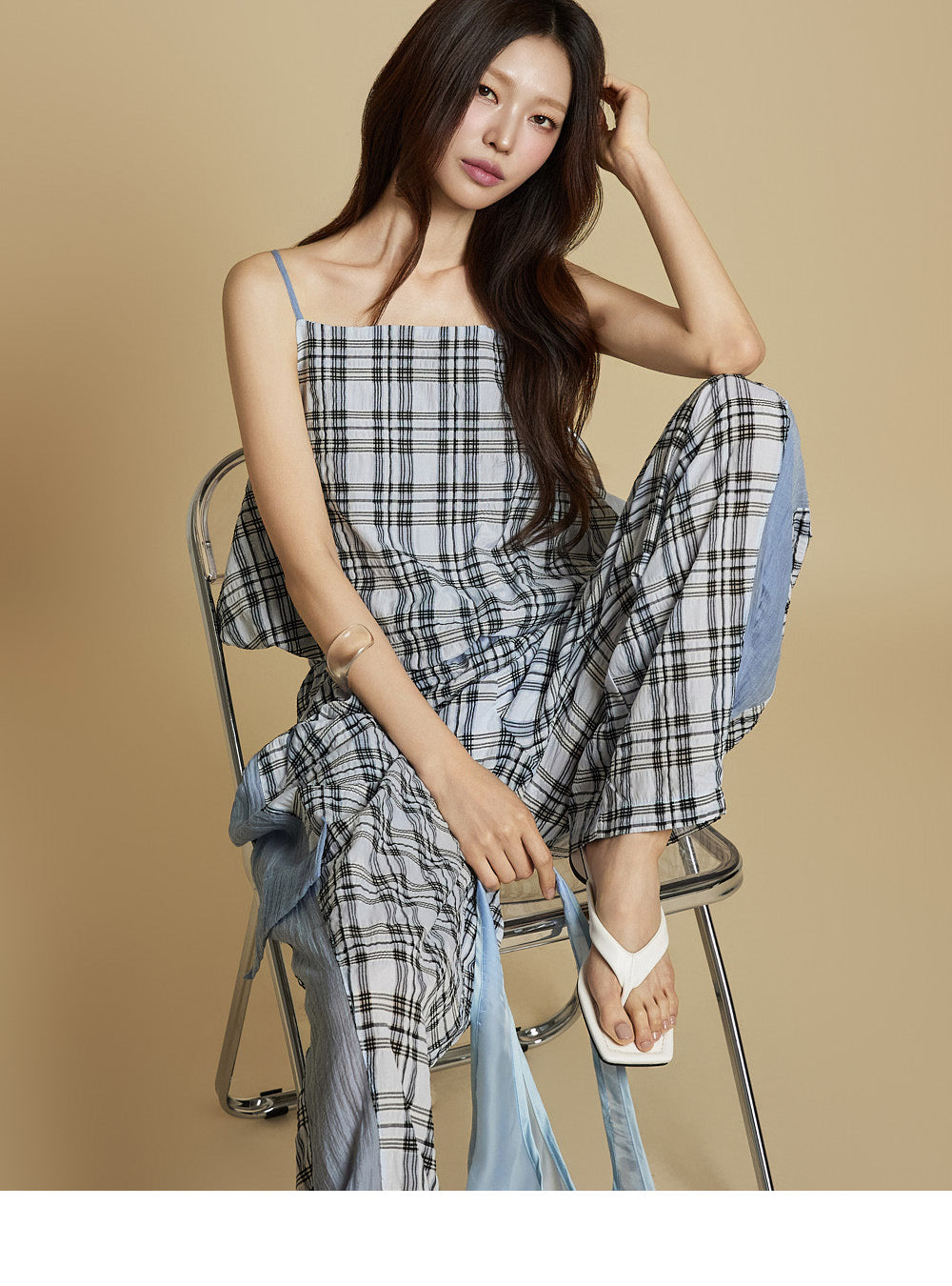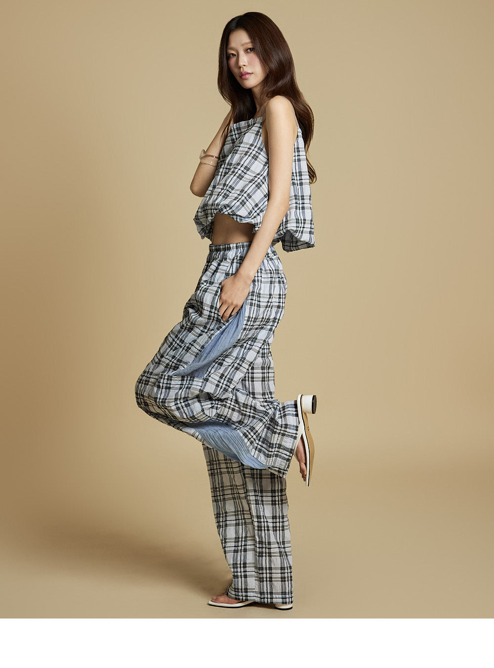 这款无袖上衣和裤子套装看起来休闲又时尚。