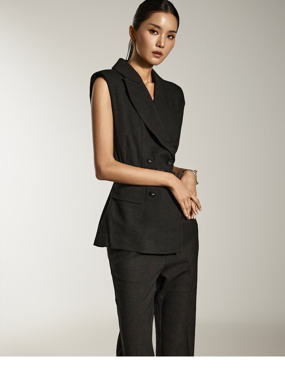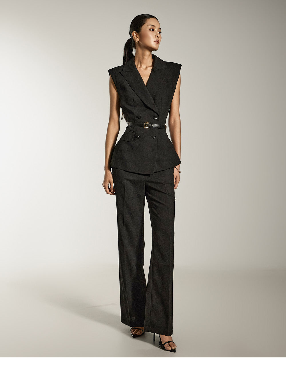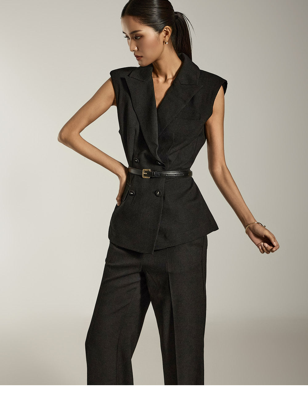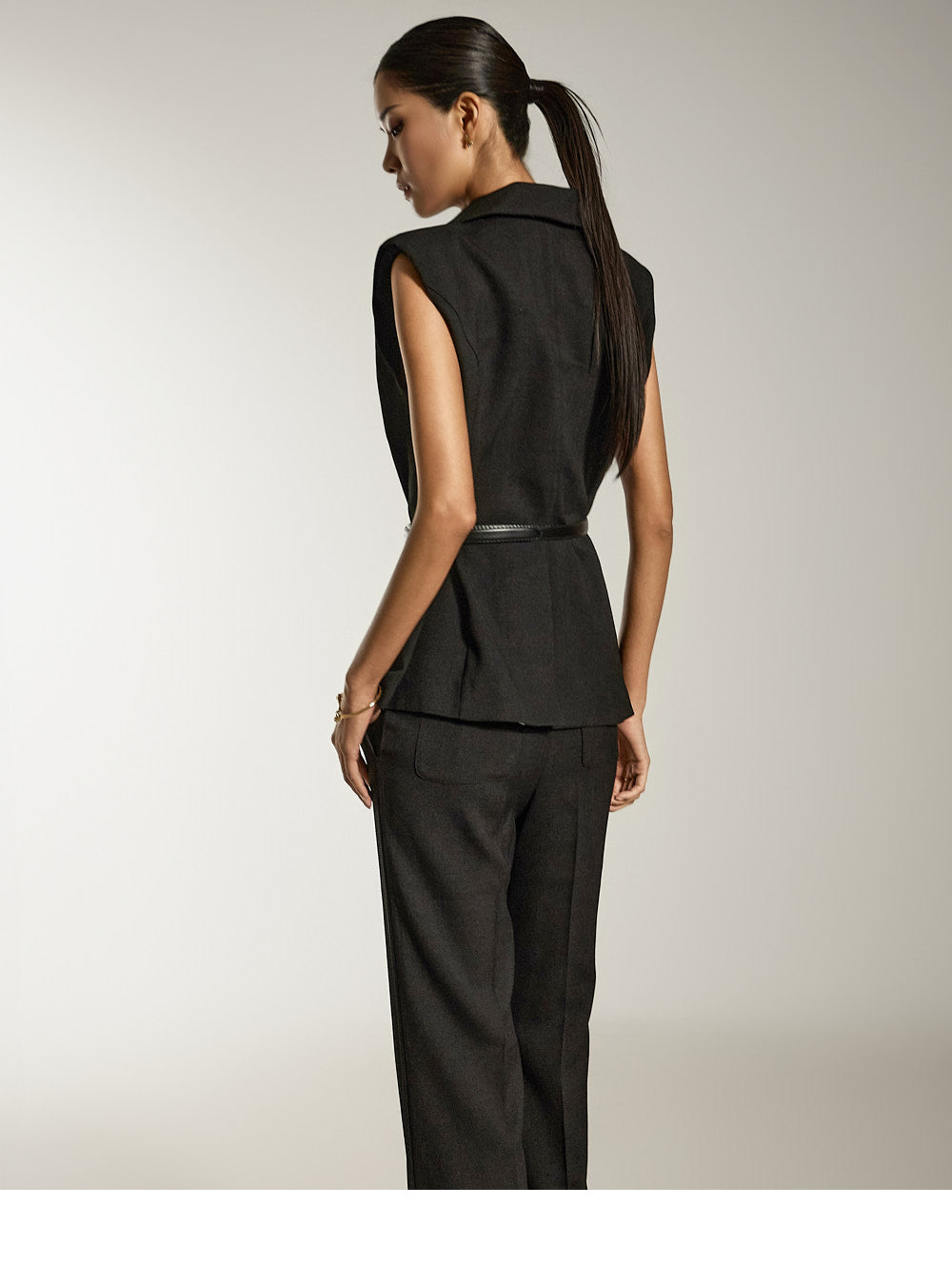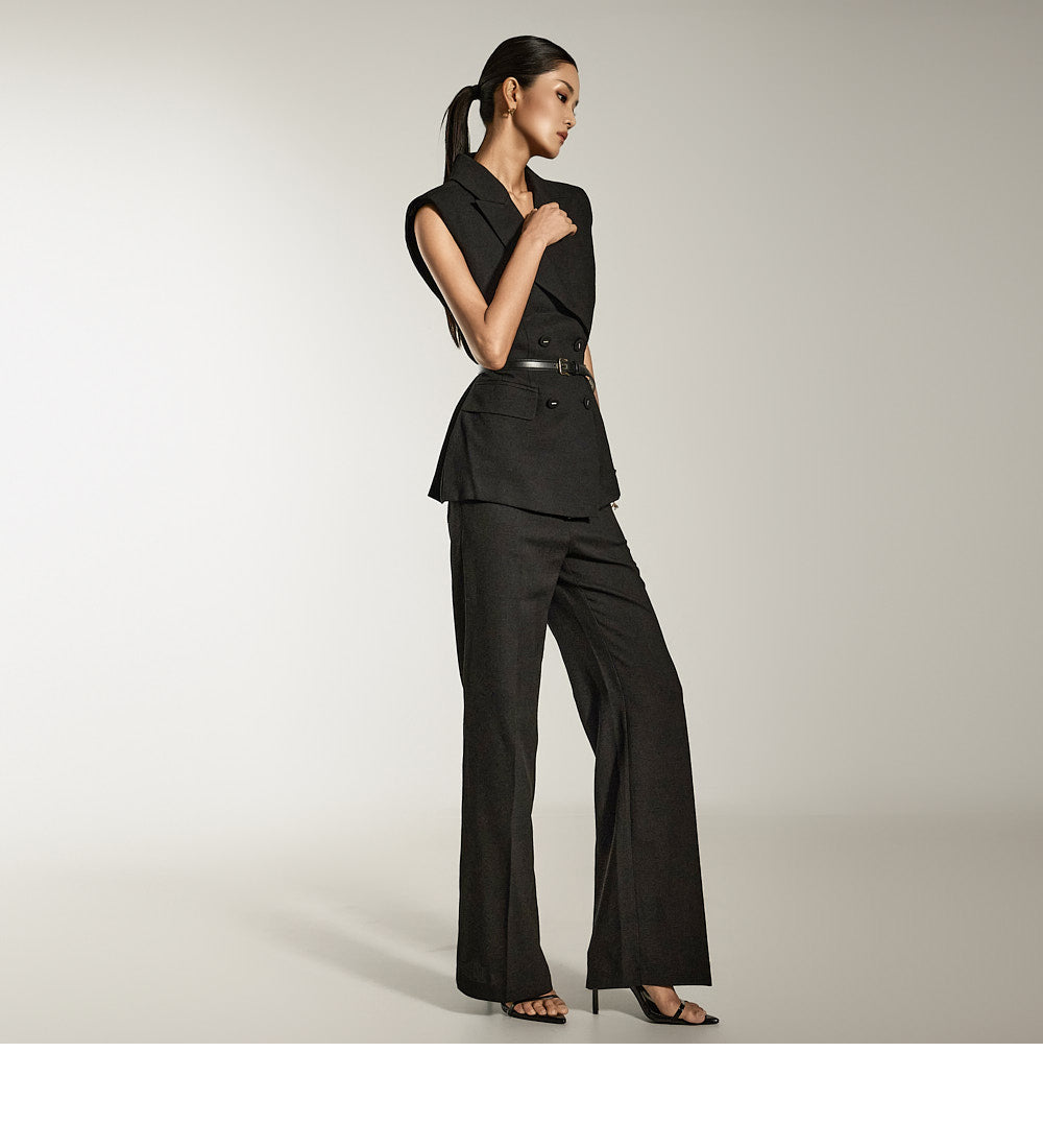这款背心和休闲裤套装呈现精致而又随和的日常造型。