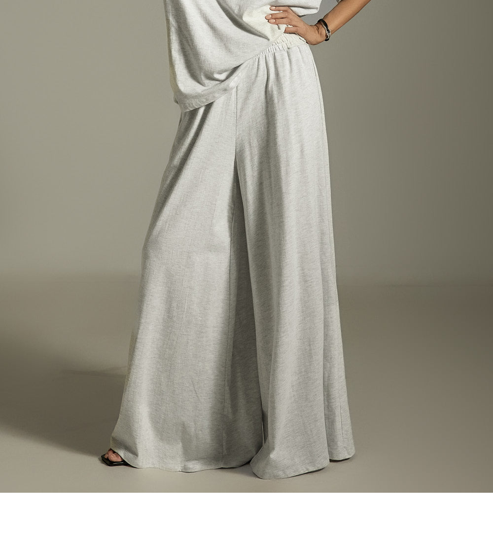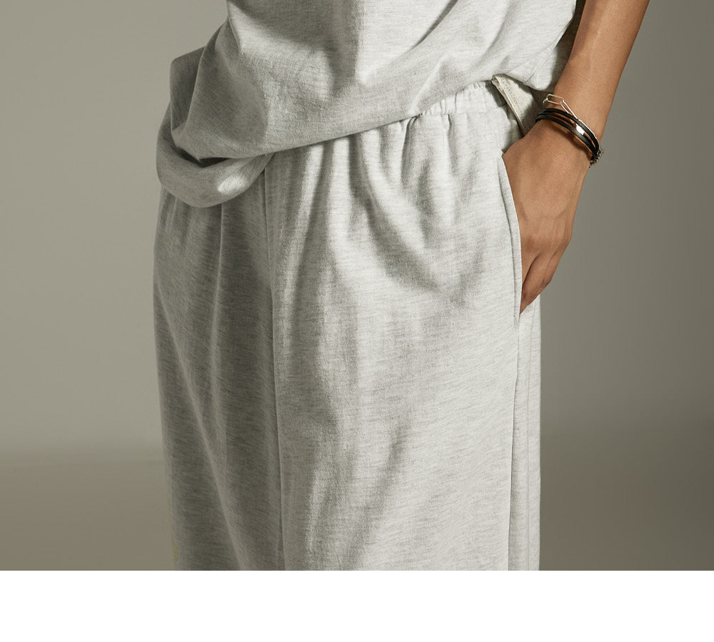 这是一套休闲套装,由不对称上衣和运动裤组成。