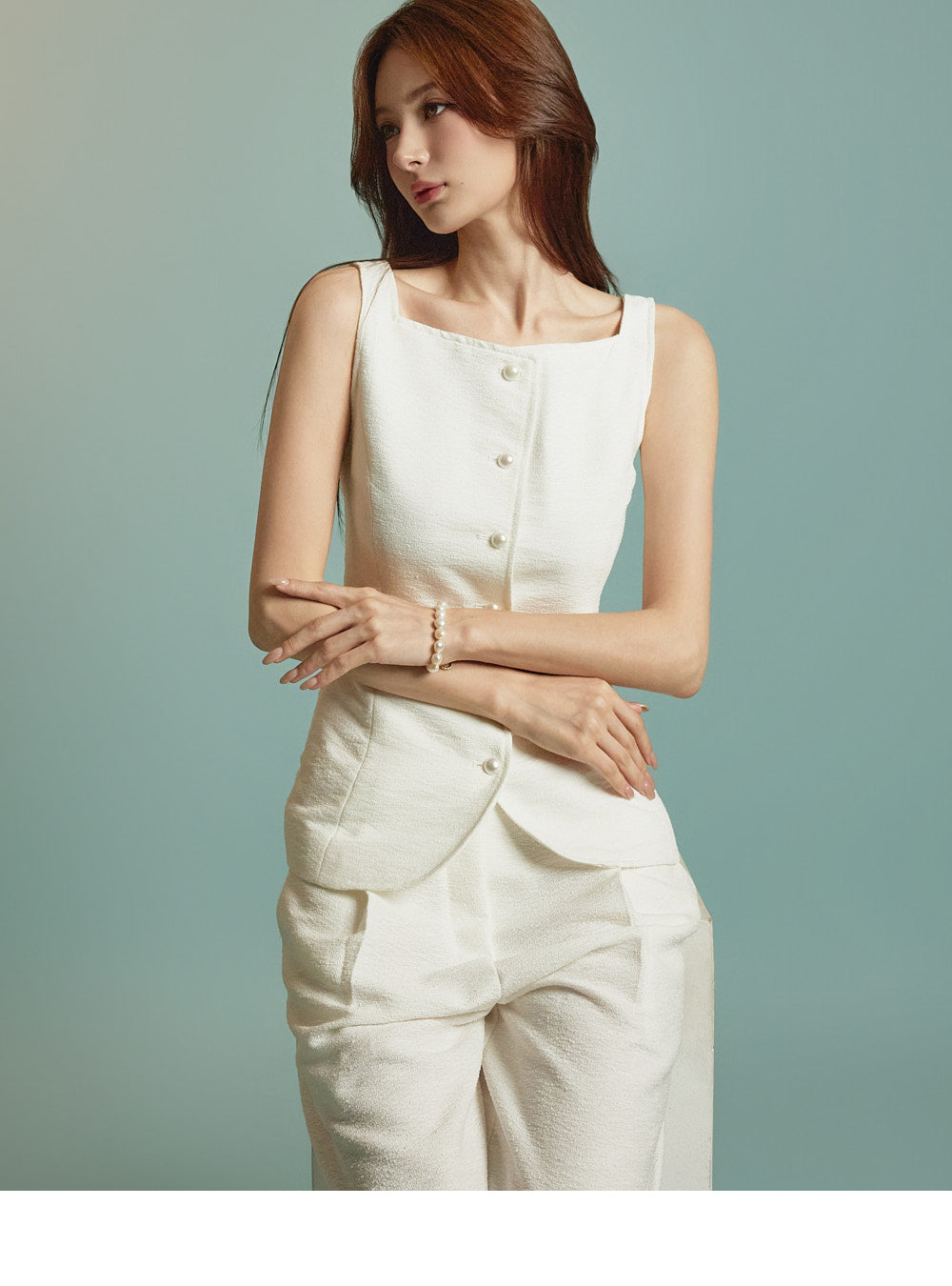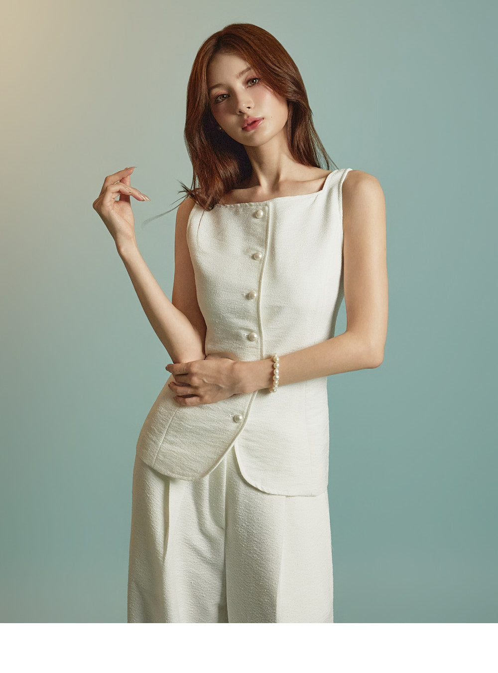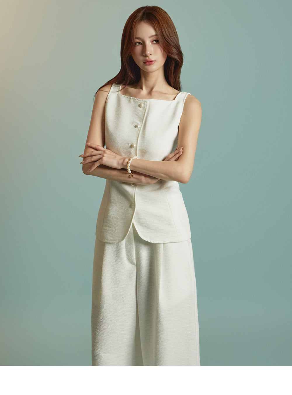 这是一套散发着女性优雅气质的背心和裤子套装。