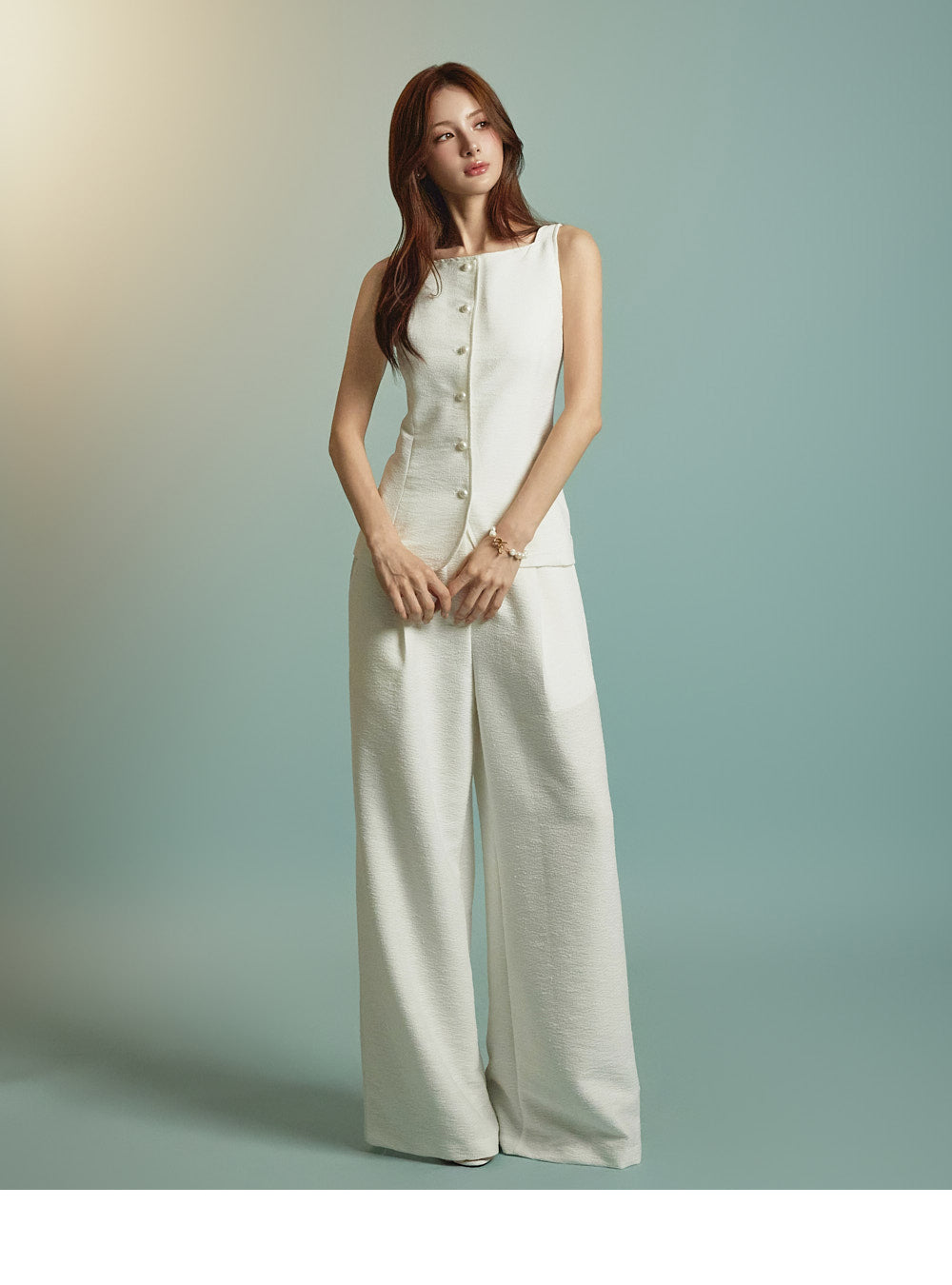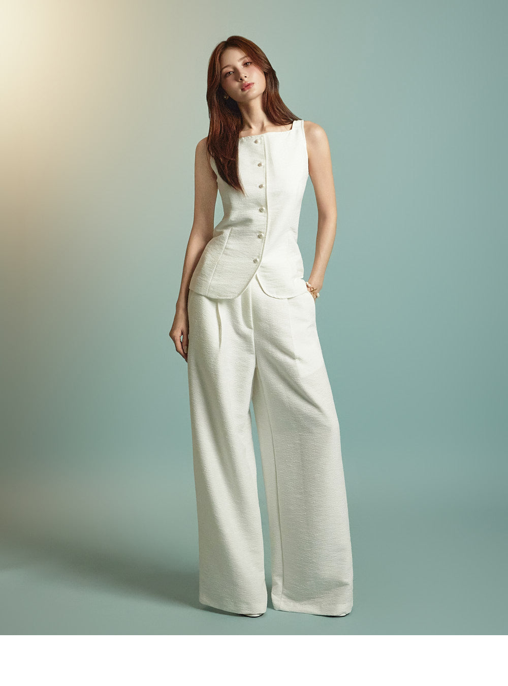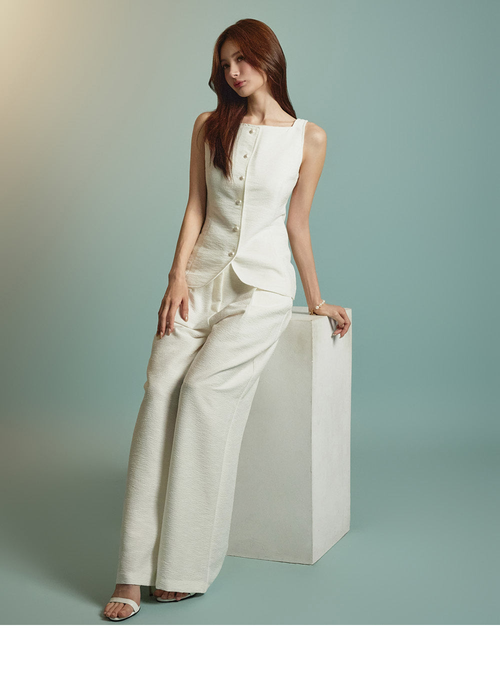 这是一套散发着女性优雅气质的背心和裤子套装。