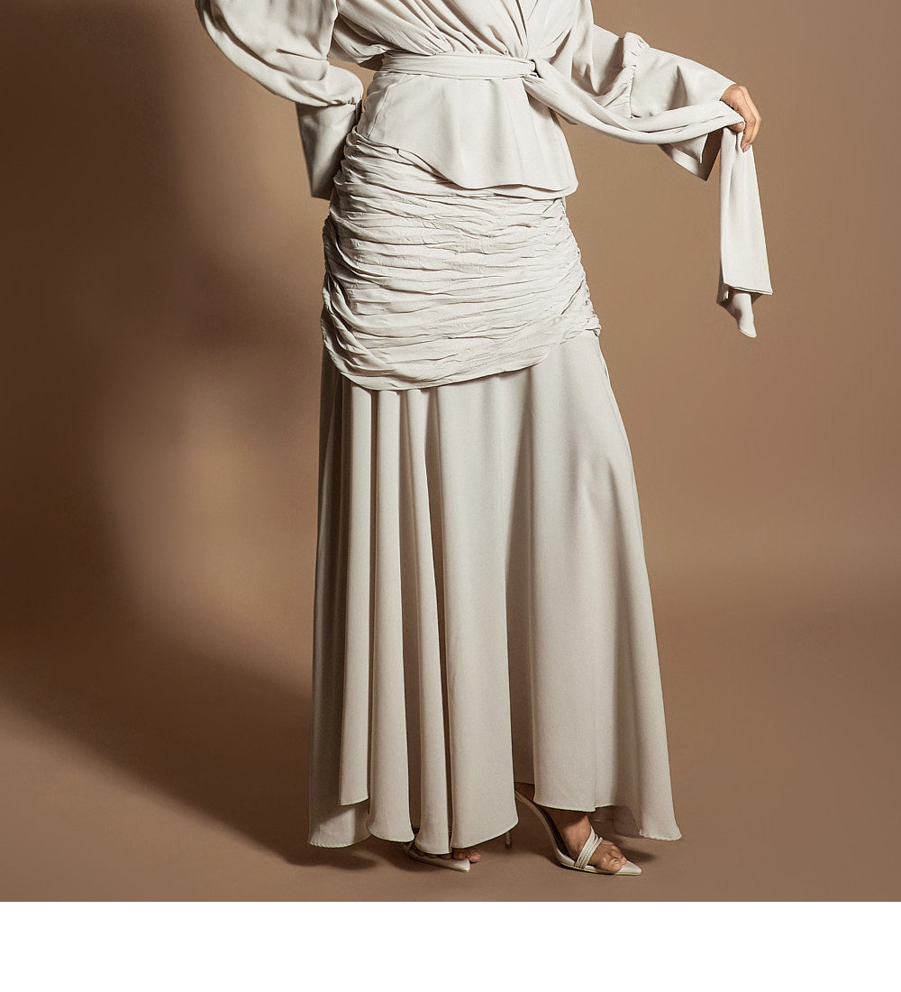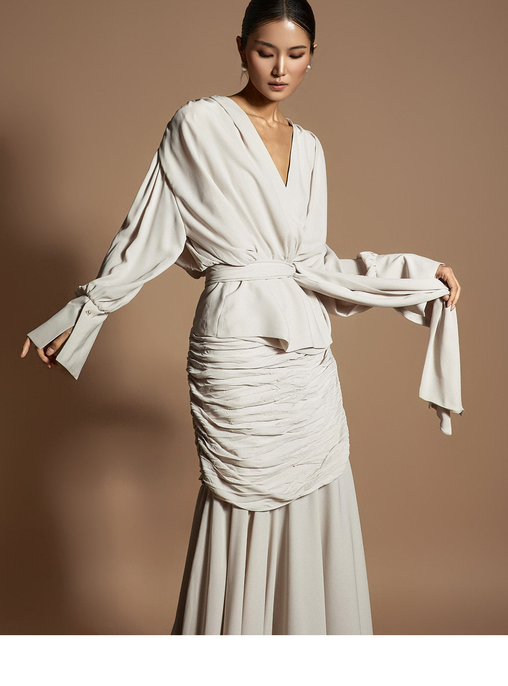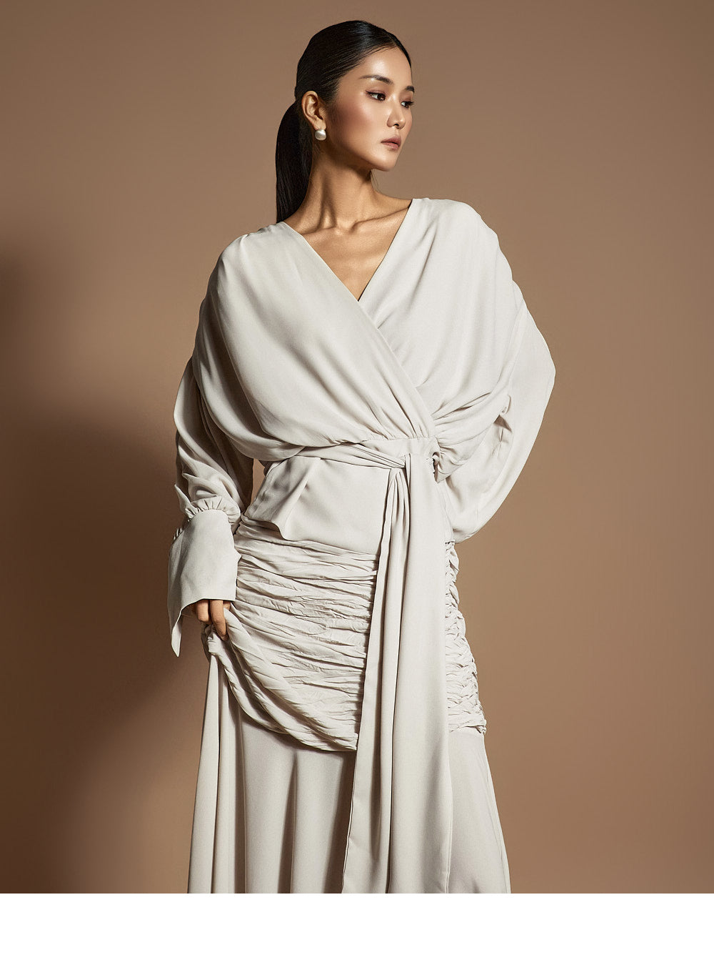 Model is 173CM, wearing ONE SIZE for both top and bottom in Cream.