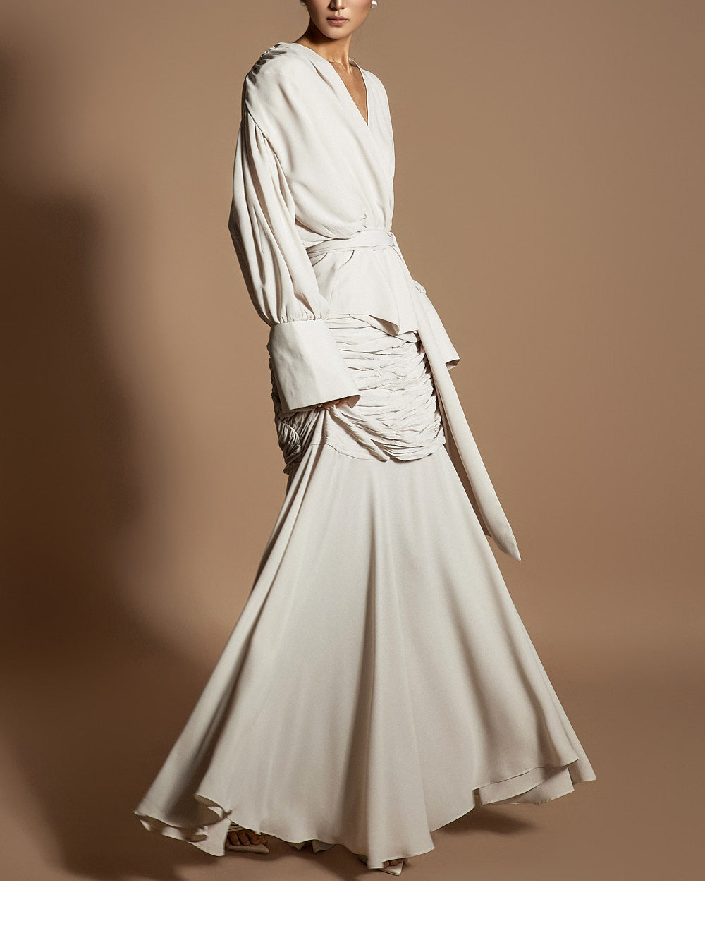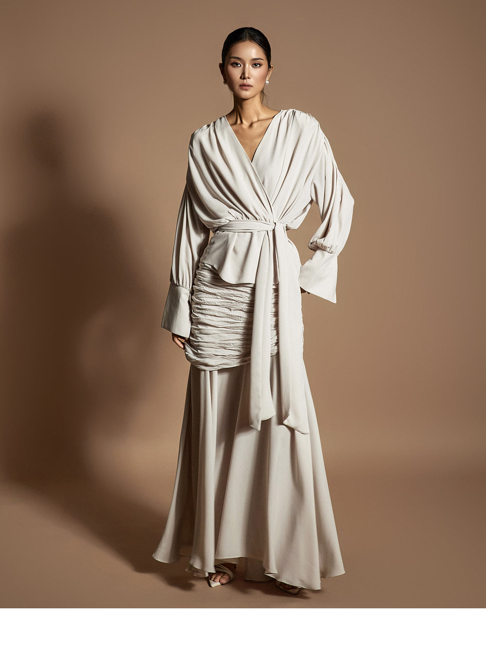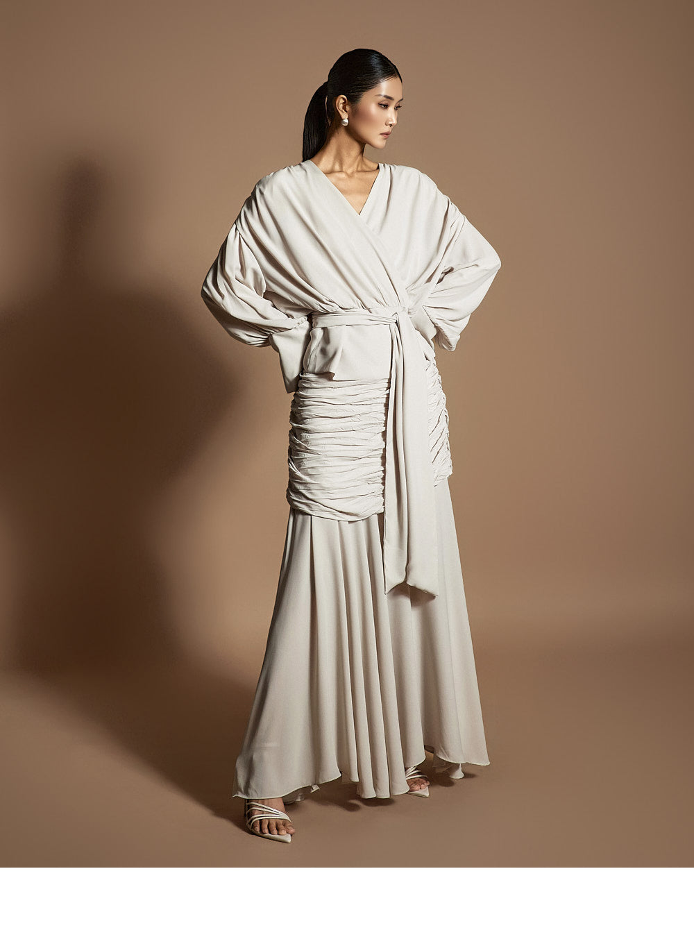 Model is 173CM, wearing ONE SIZE for both top and bottom in Cream.