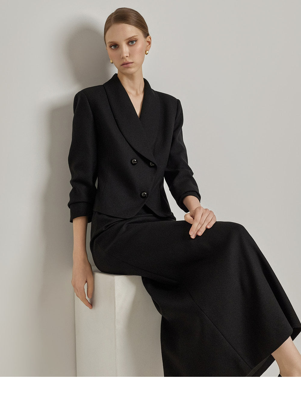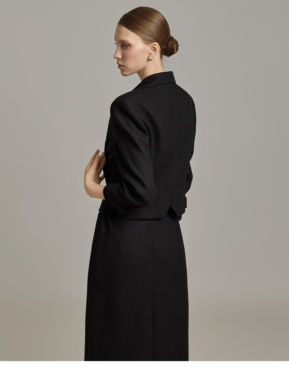 This jacket and skirt set exudes a classic vibe.