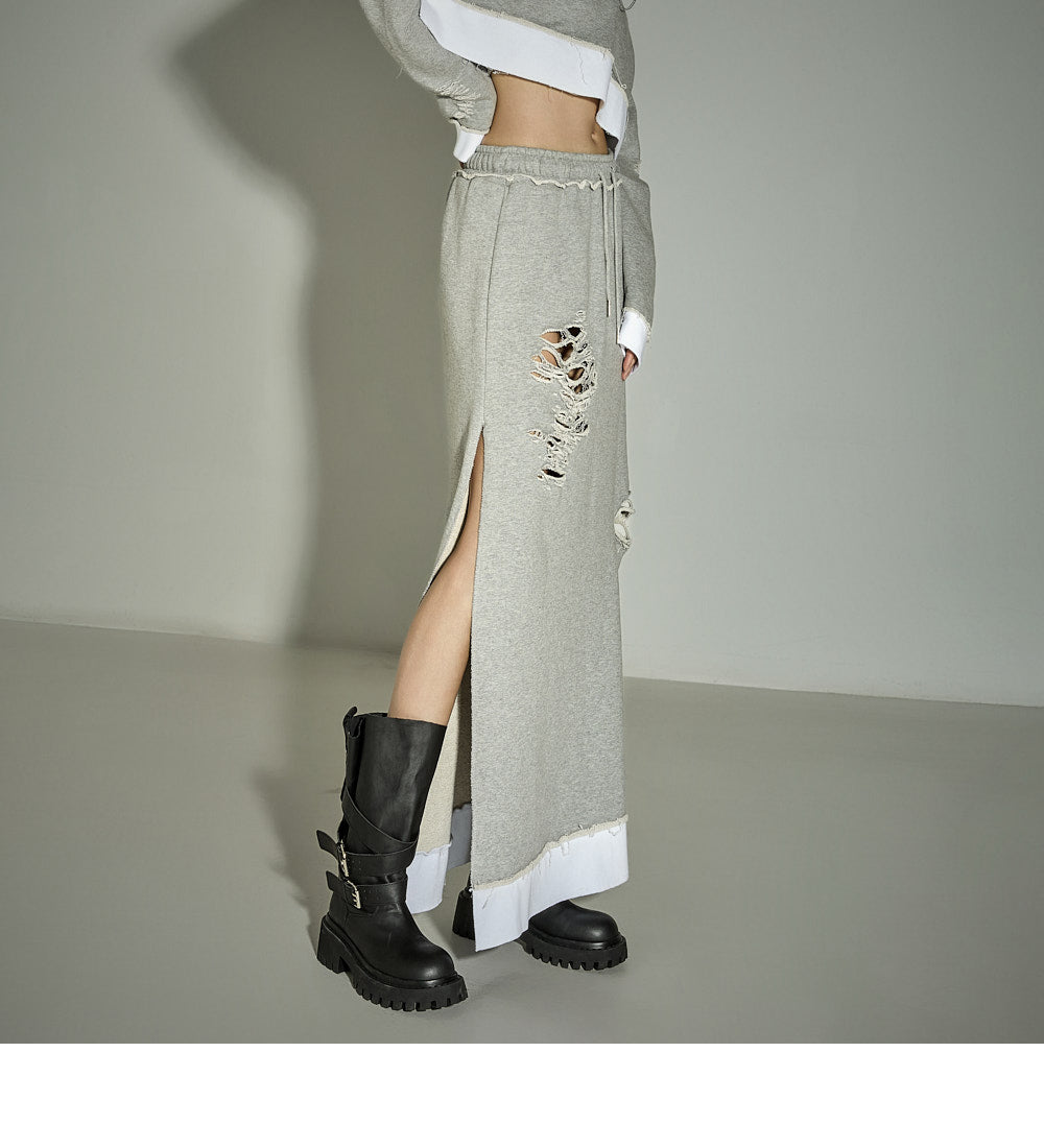 [For set discount items, please return both the top and bottom together for exchanges or returns]This casual sweatshirt and skirt set has a chic vibe.