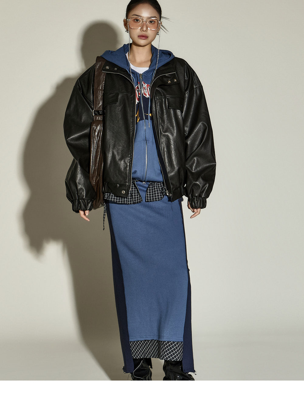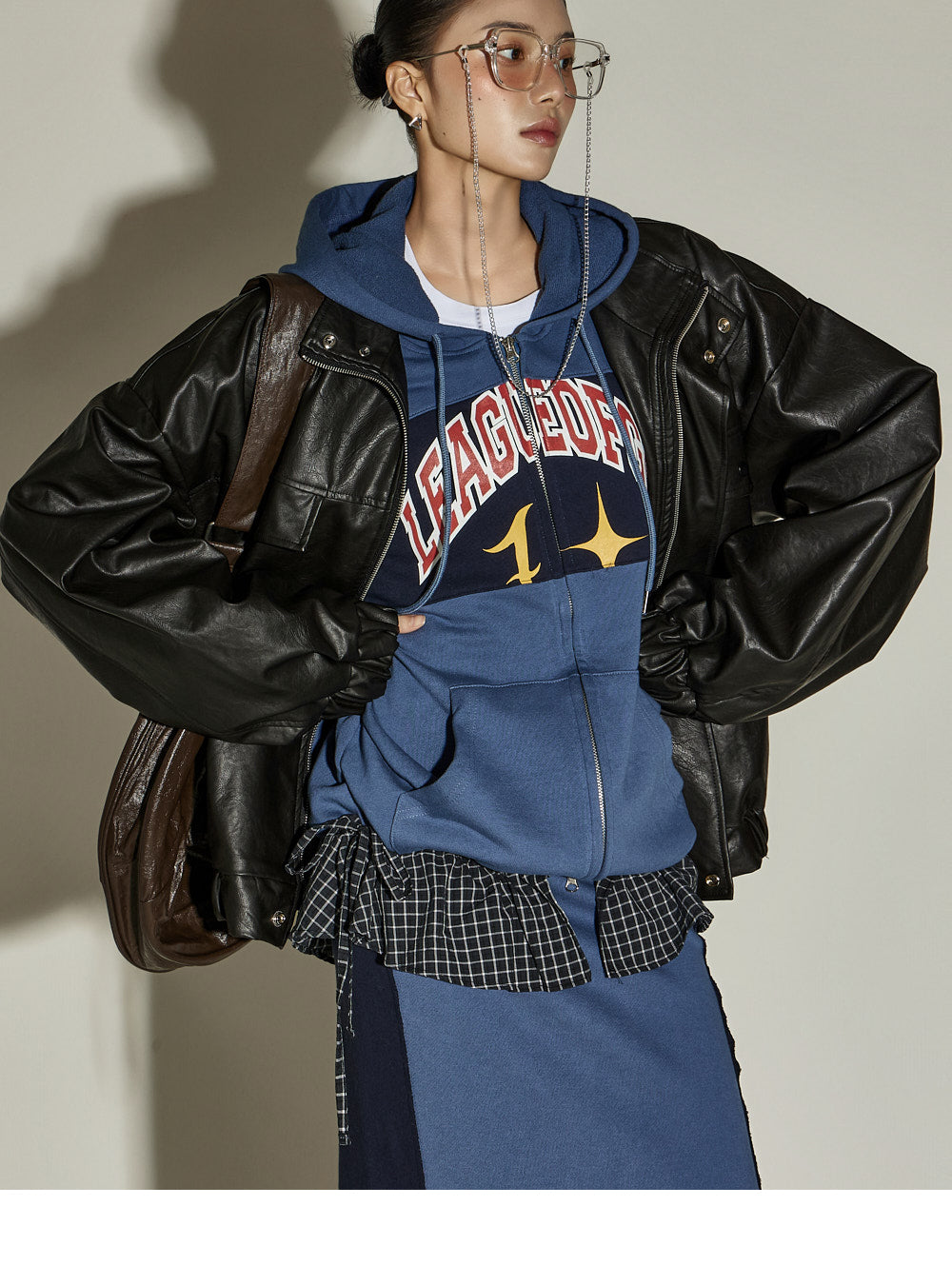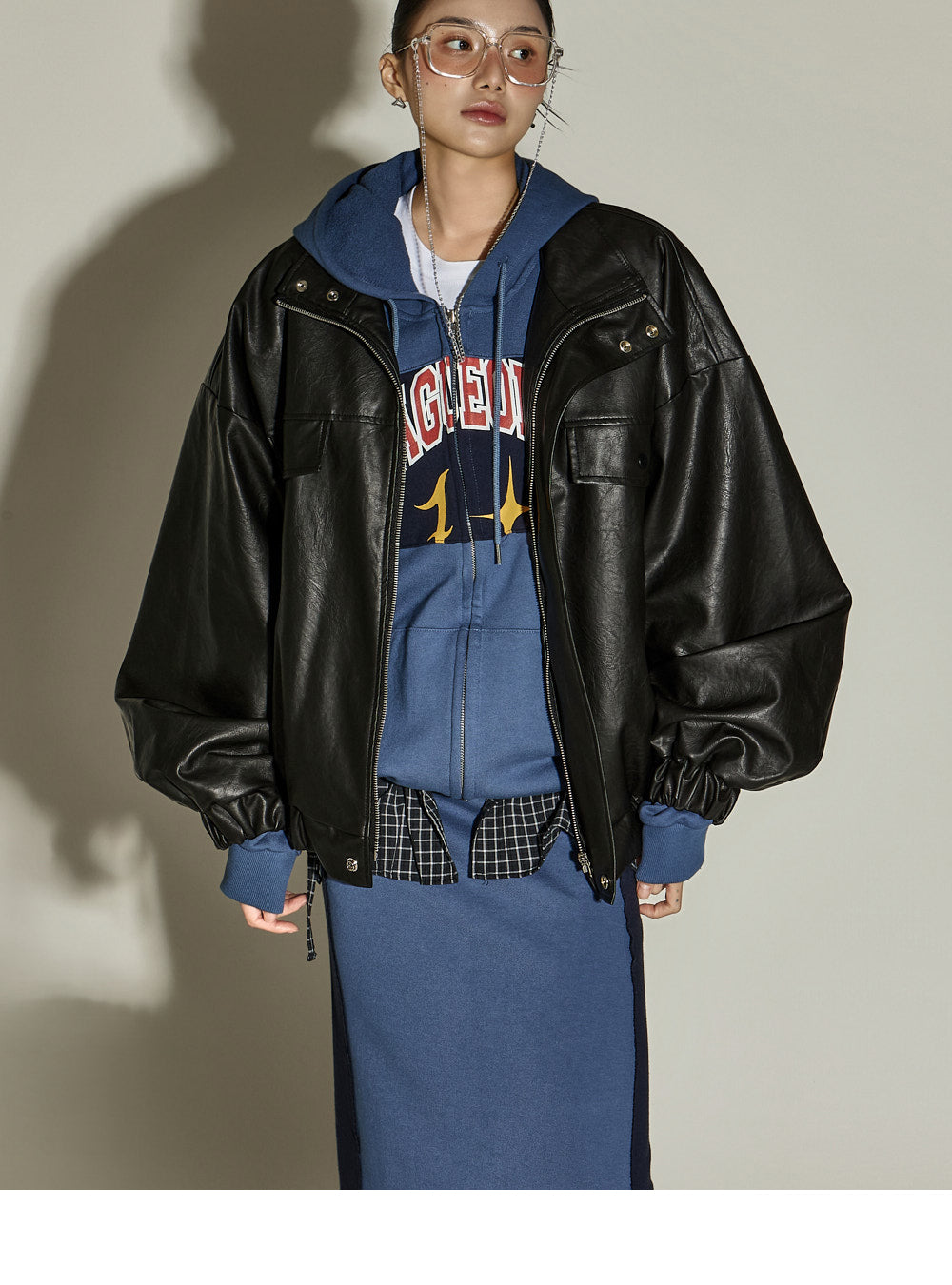 The hooded zip-up has an oversized silhouette,