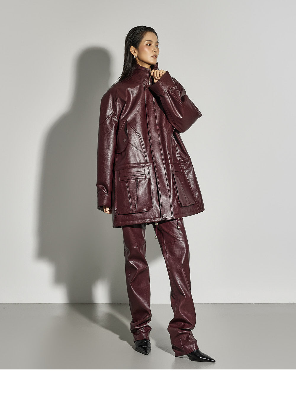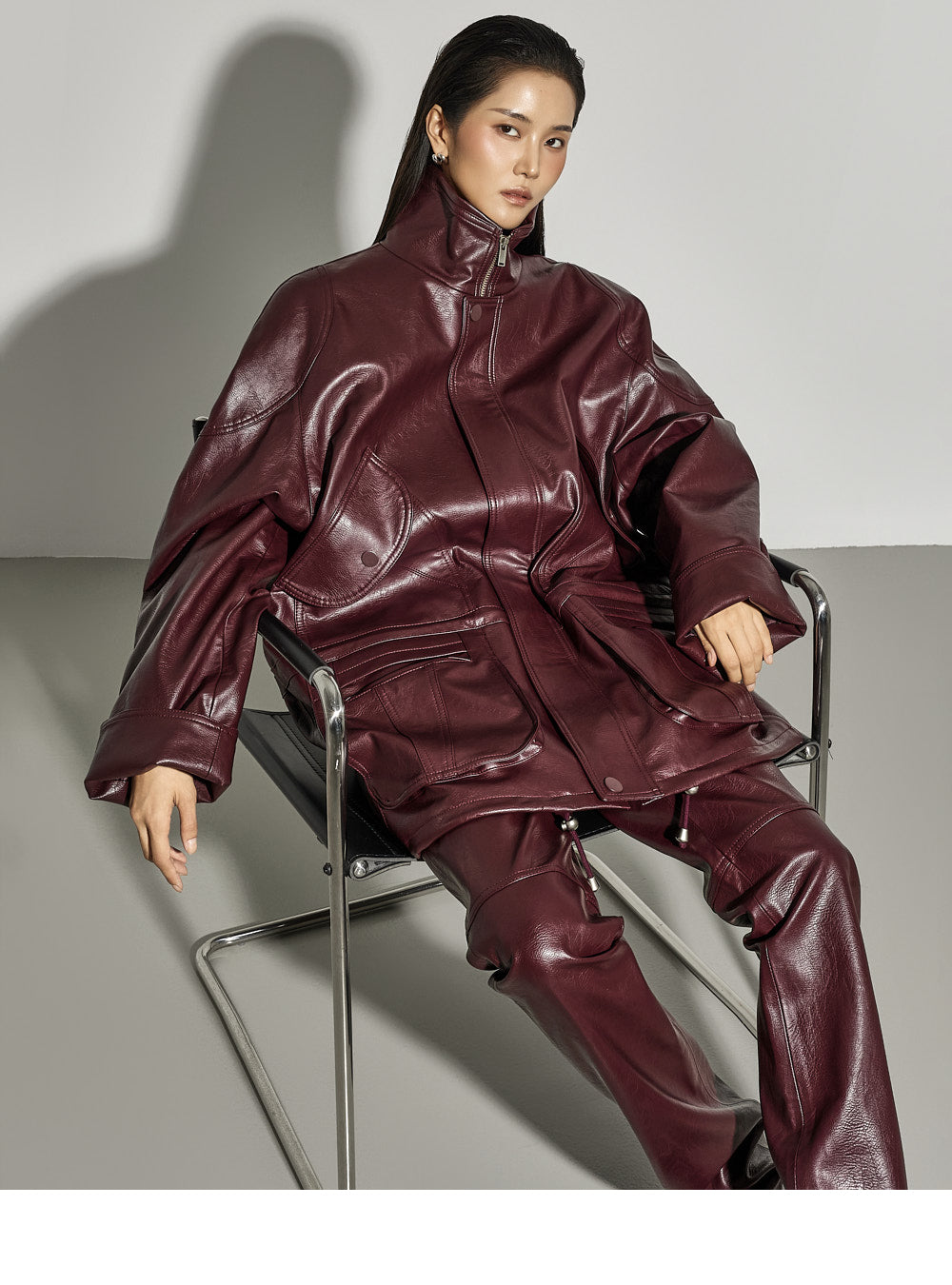 This unique jumper and pants set is crafted from polyurethane and polyester,
