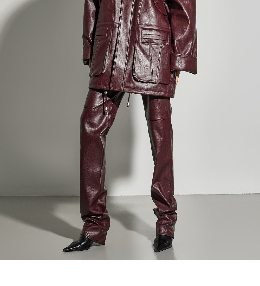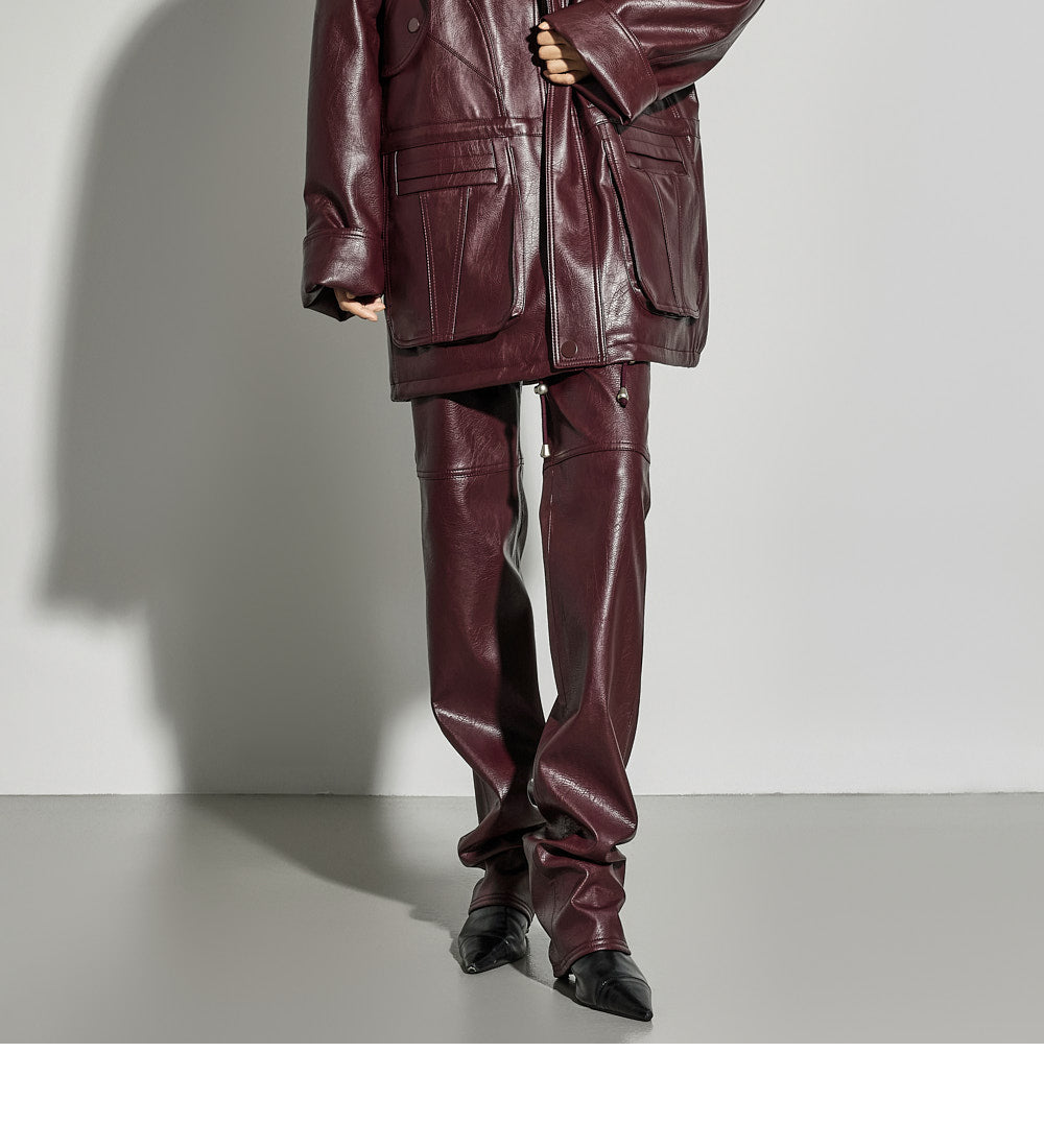 The pants feature a slim-fit silhouette with a low waist, providing a trendy feel,
