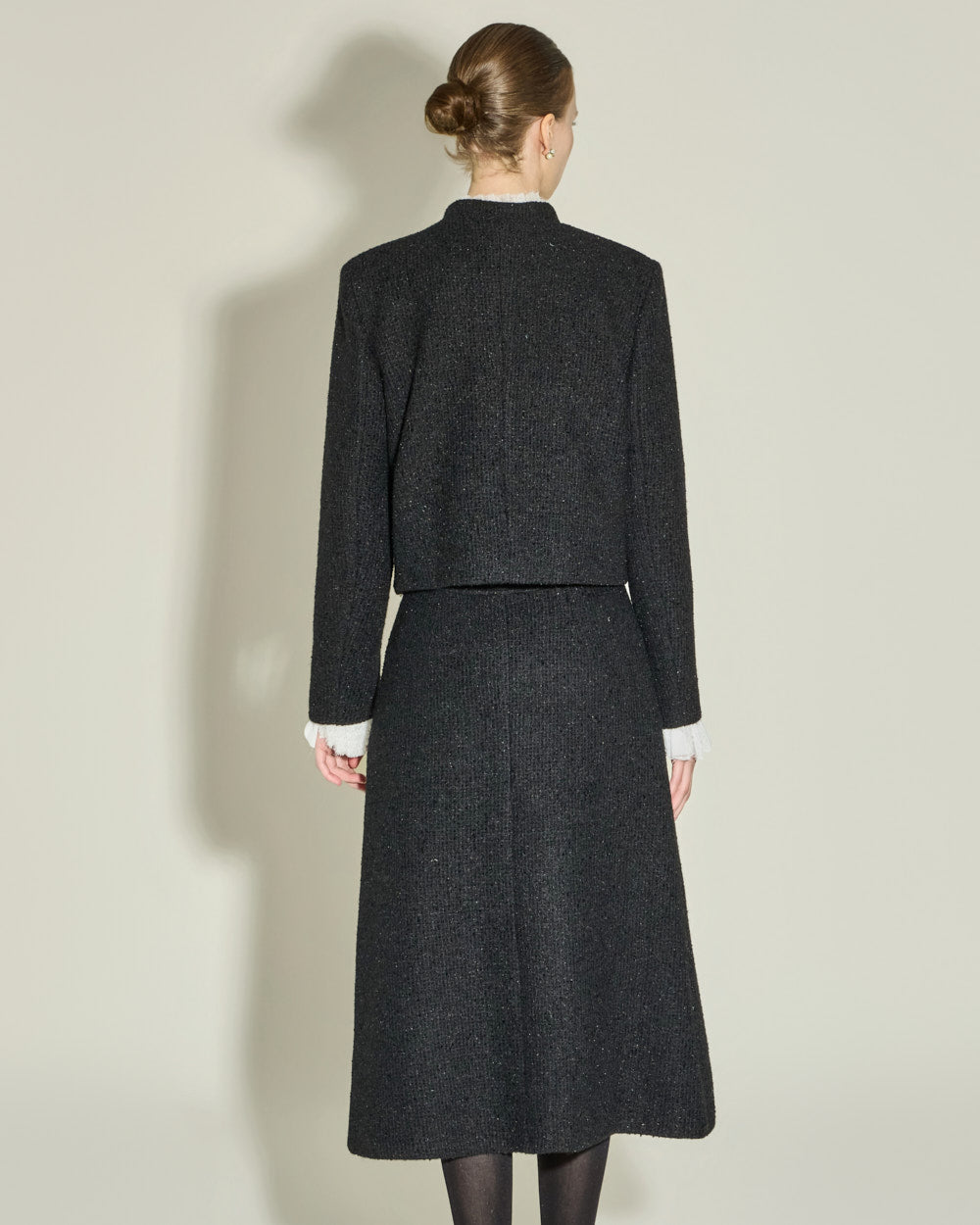 This jacket and skirt set exudes a modern vibe.