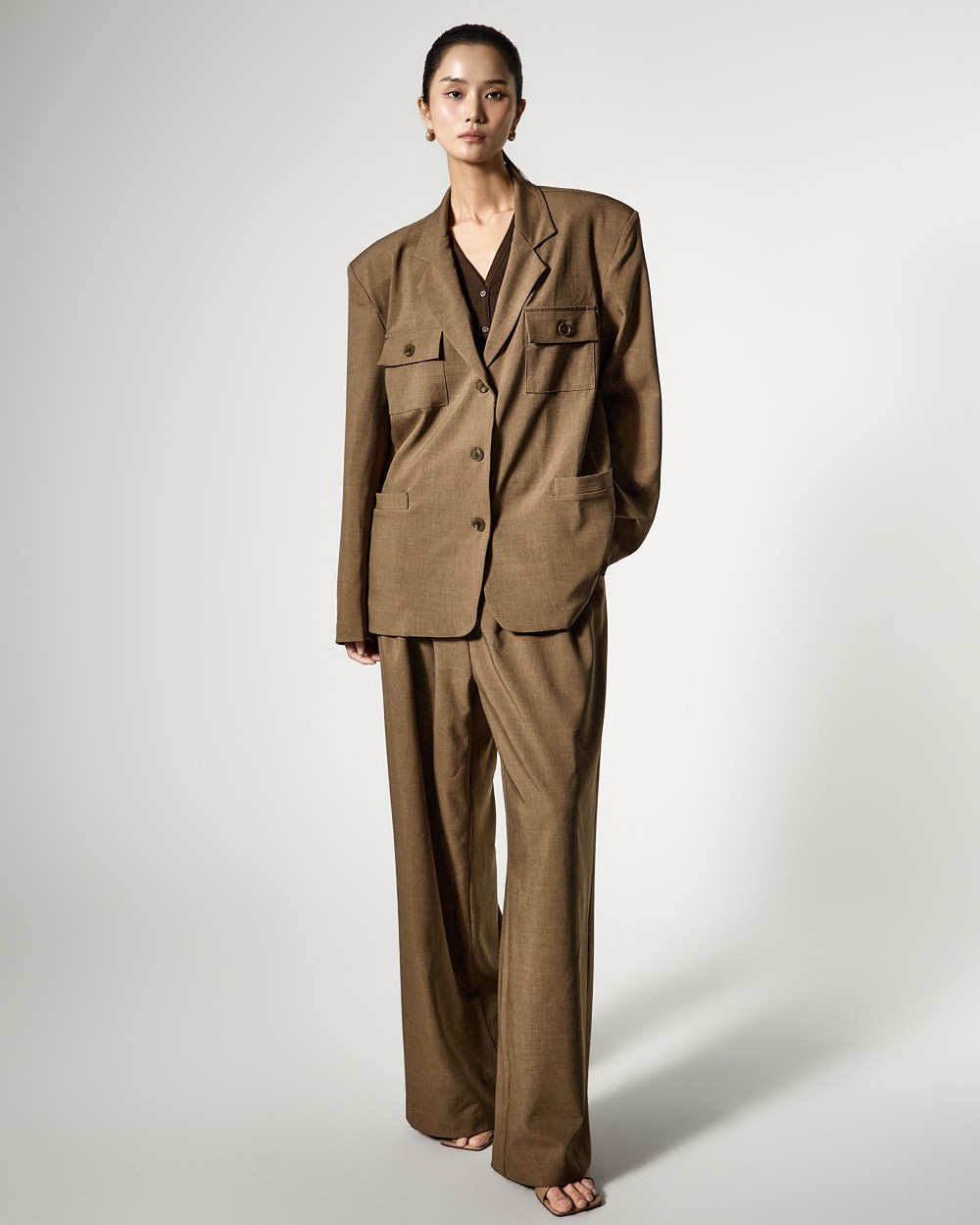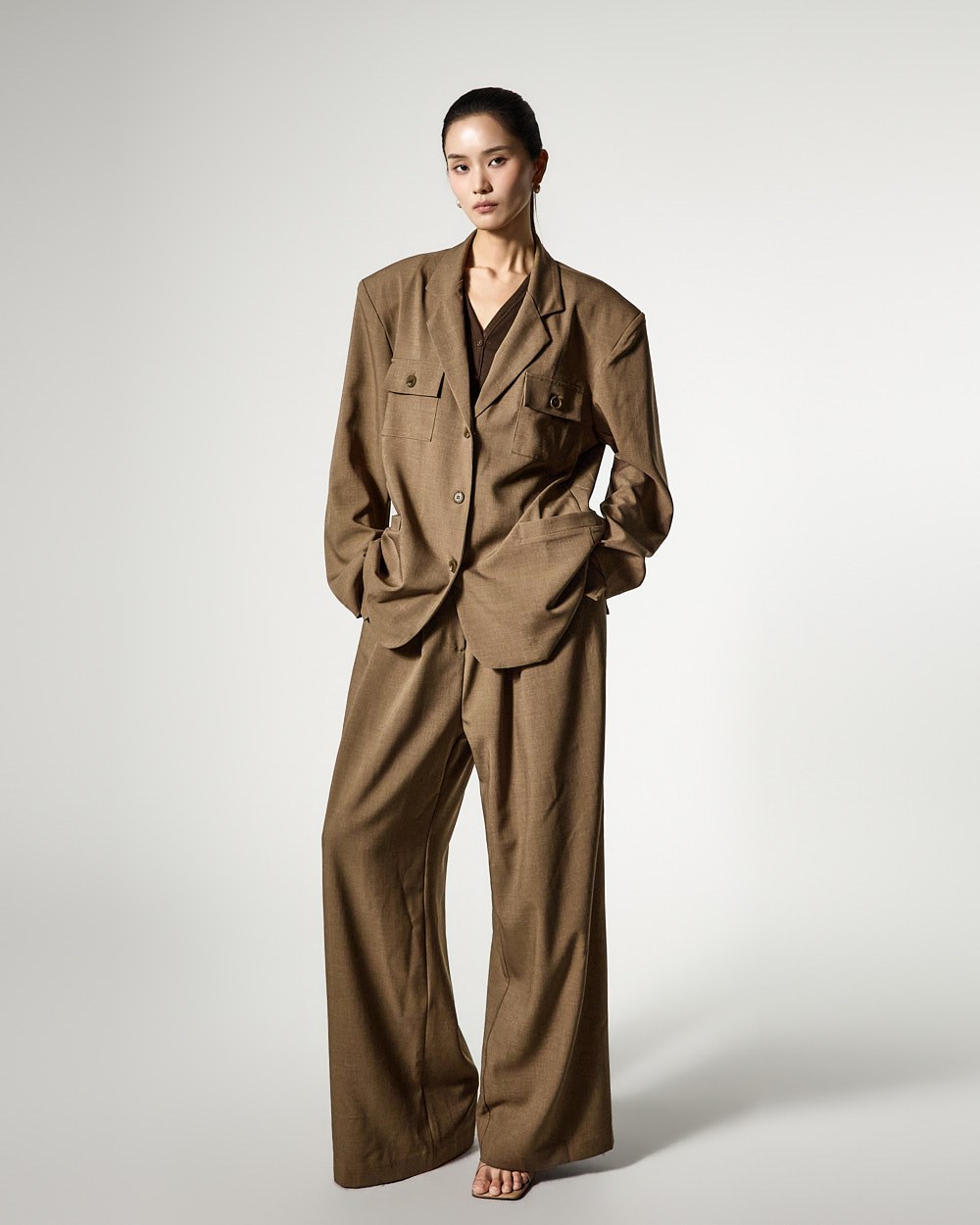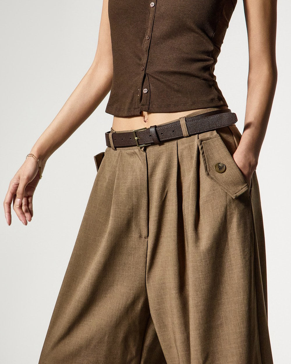 裤子采用自然垂坠的阔腿廓形,