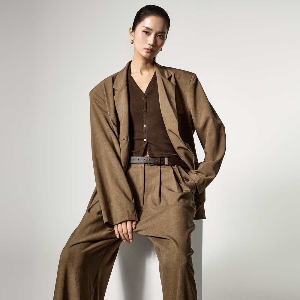模特身高173厘米,穿着夹克ONE/裤子ONE,