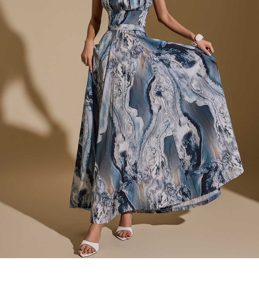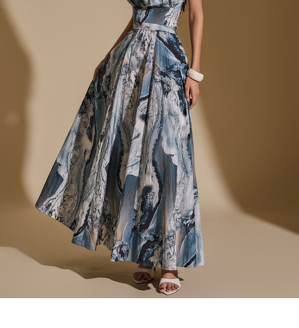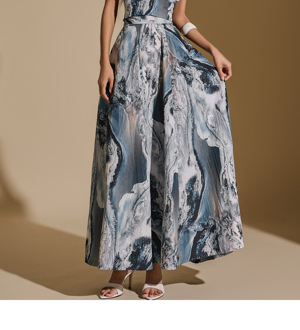 TP9151 抽象印花上衣和裙子套装