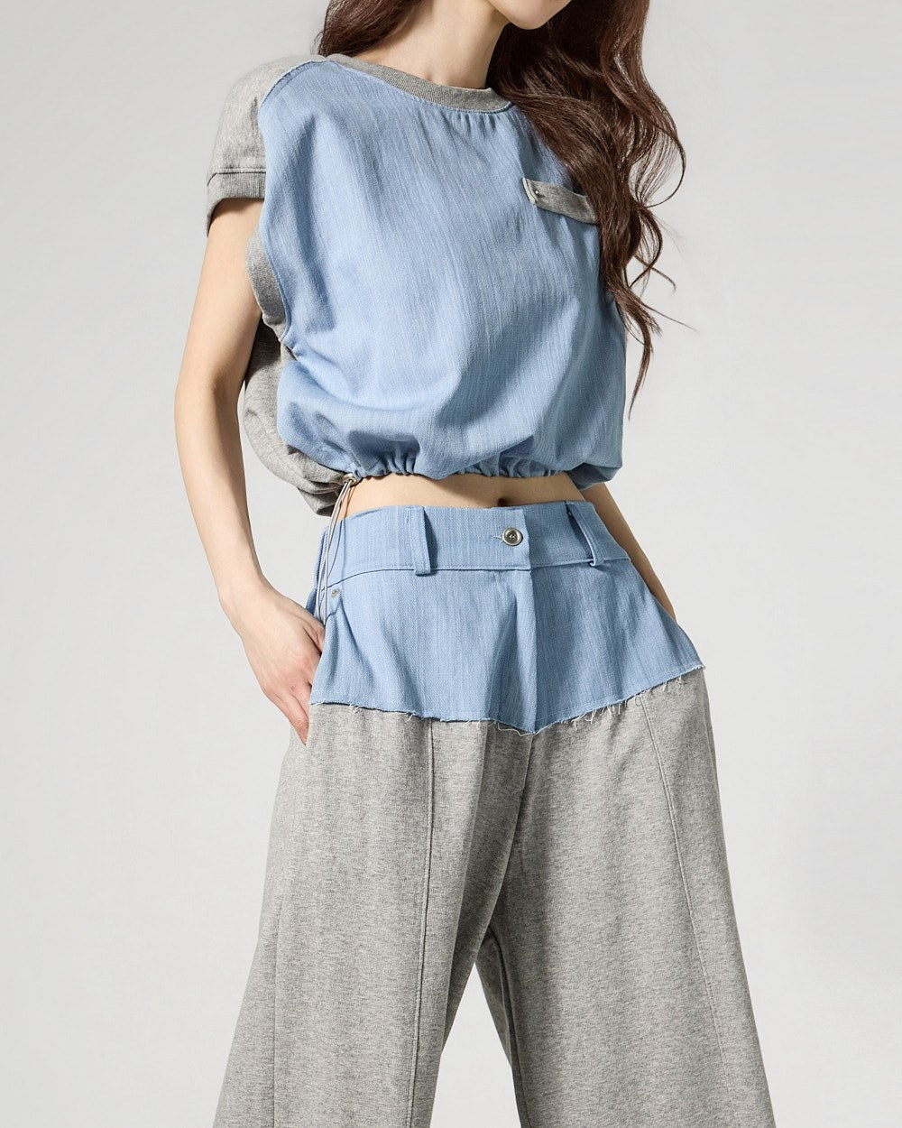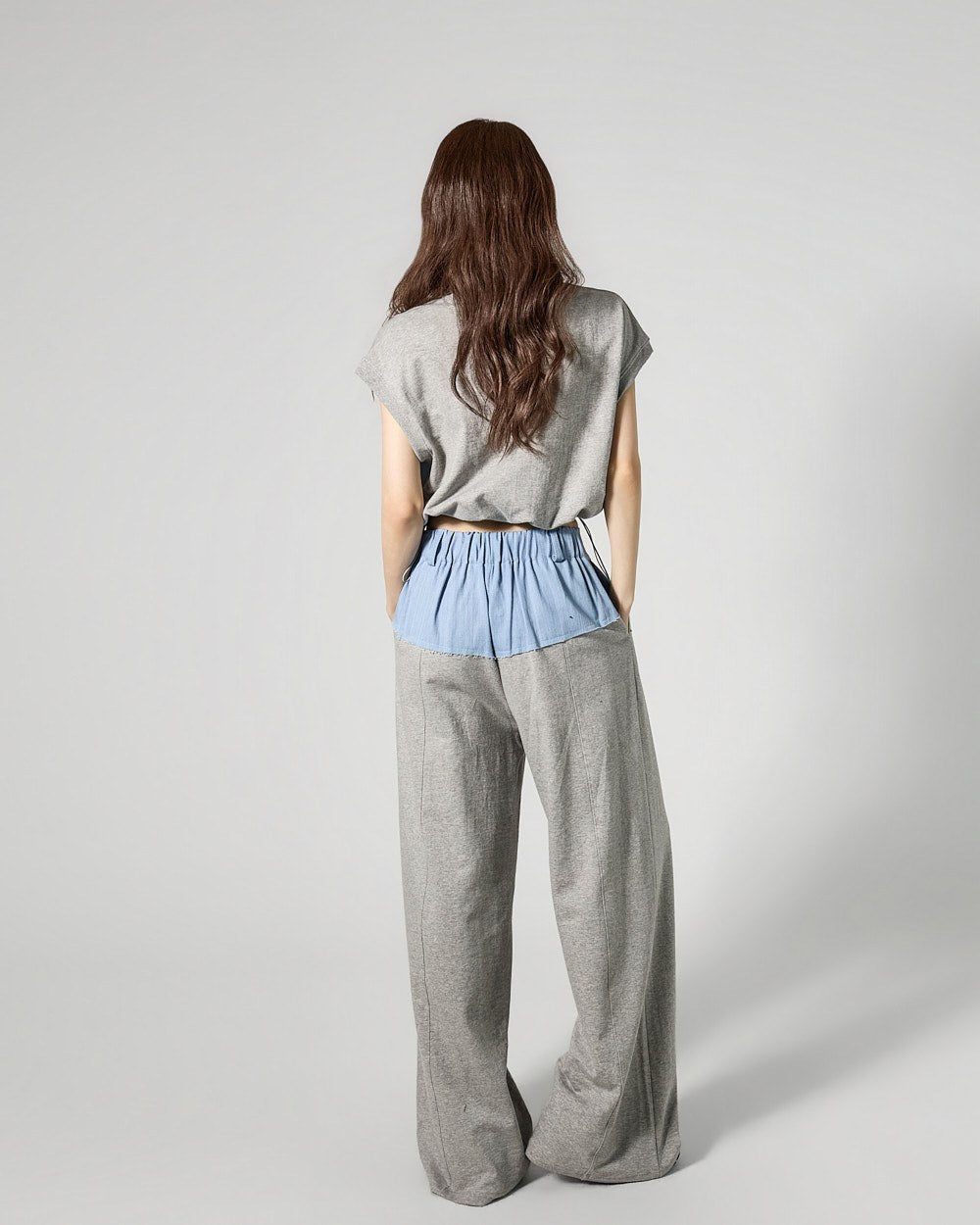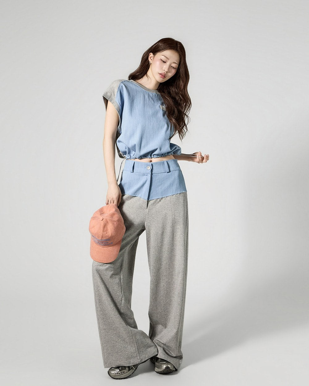 while the bottoms offer added comfort with a front button zipper closure and back elastic waistband.